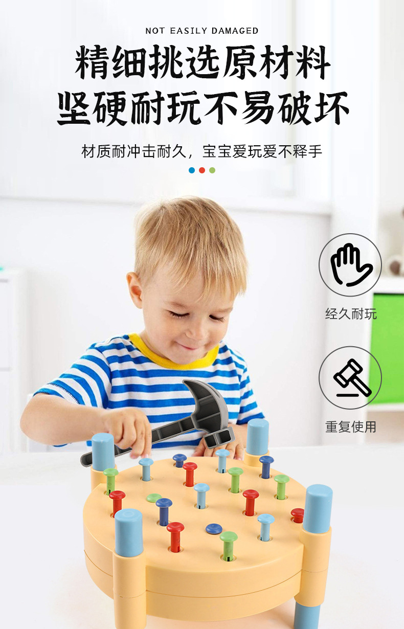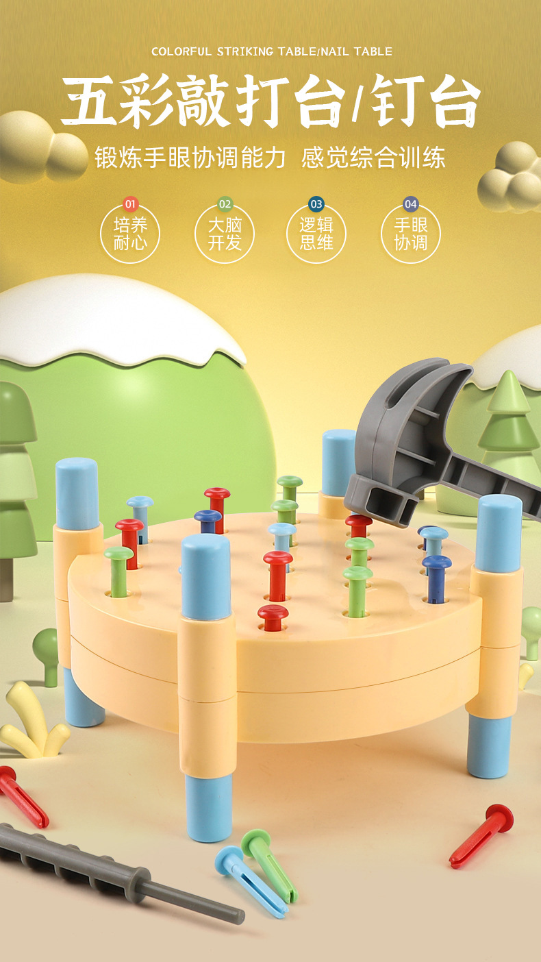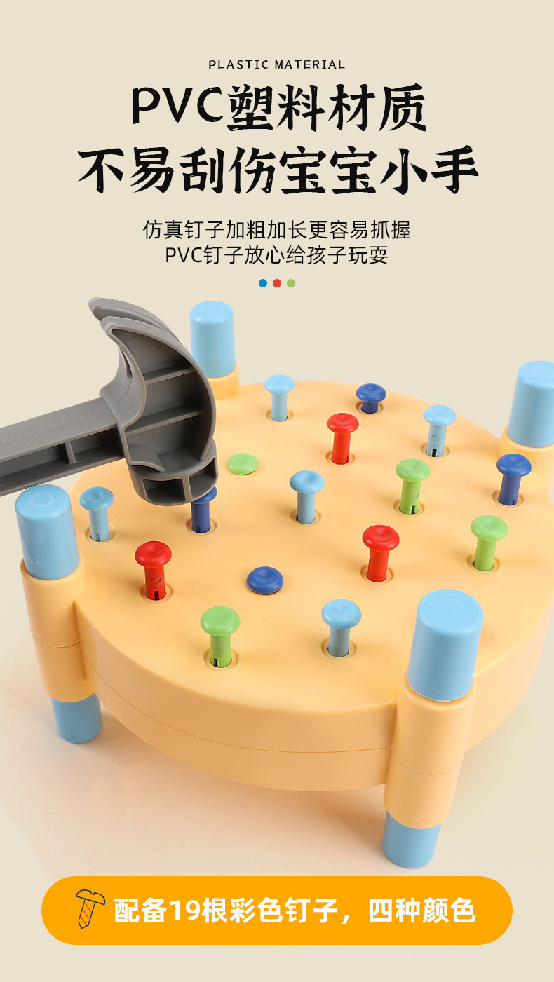 【五彩敲打台/钉台,锻炼手眼协调能力,感觉综合训练】敲钉子玩具 蒙氏儿童敲钉台锤子打桩台 锻炼手臂灵活 益智钉钉子玩具-QQ
