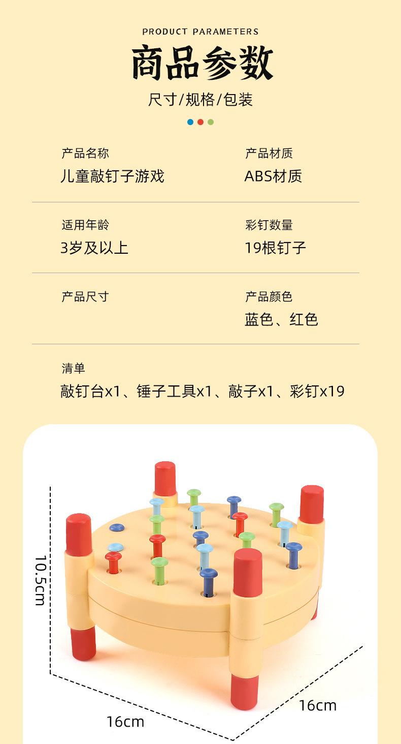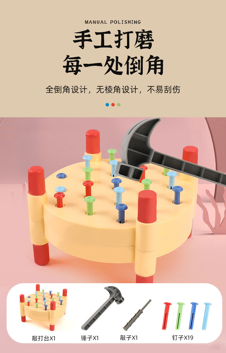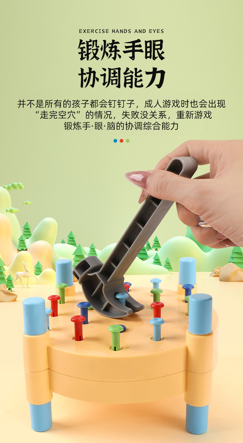 【五彩敲打台/钉台,锻炼手眼协调能力,感觉综合训练】敲钉子玩具 蒙氏儿童敲钉台锤子打桩台 锻炼手臂灵活 益智钉钉子玩具-QQ