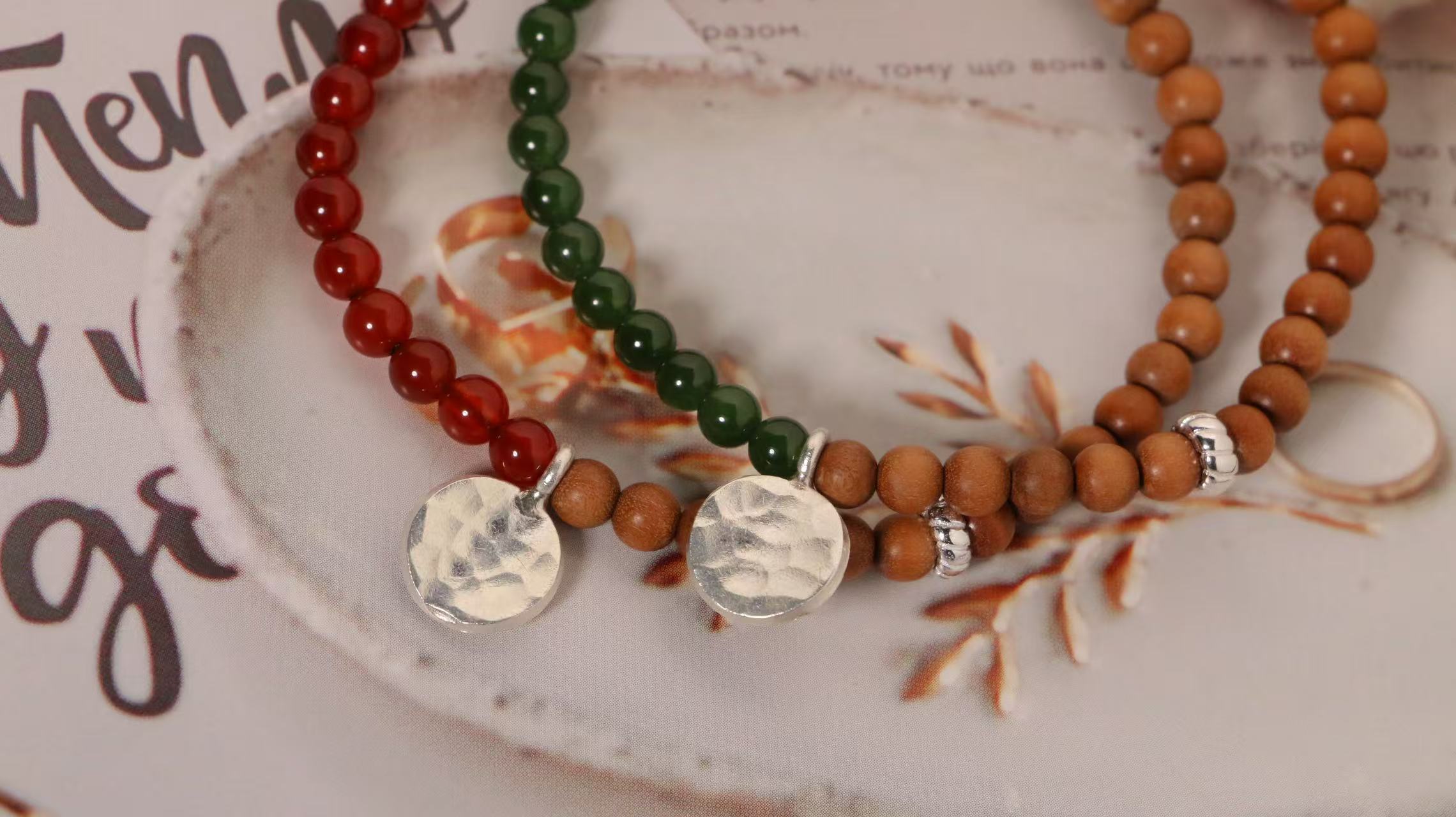 檀香,红玛瑙,碧玉尺寸4-5mm,配件均为925纯银材质
