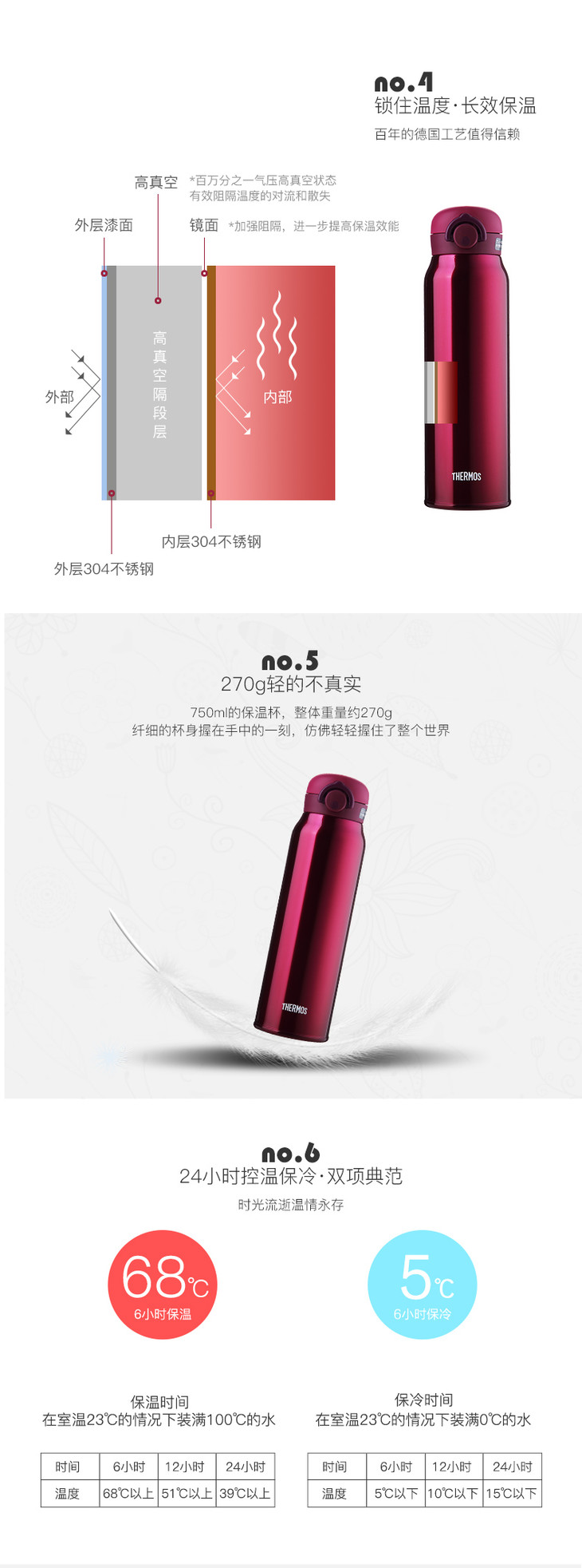 【海外直邮】THERMOS/膳魔师 不锈钢保冷保温杯 750ml