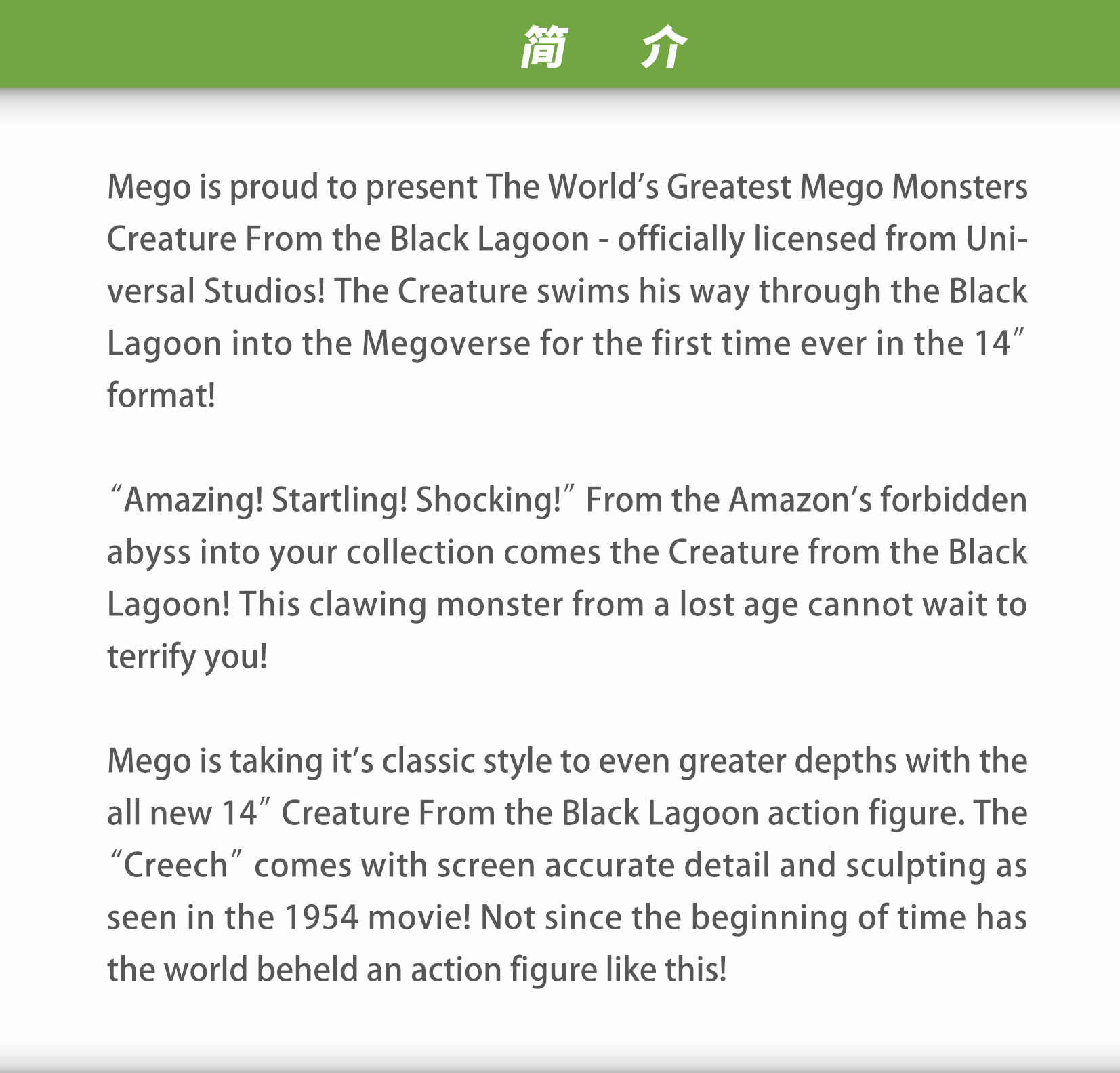 现货 Mego 黑湖妖谭 14英寸 可动人偶