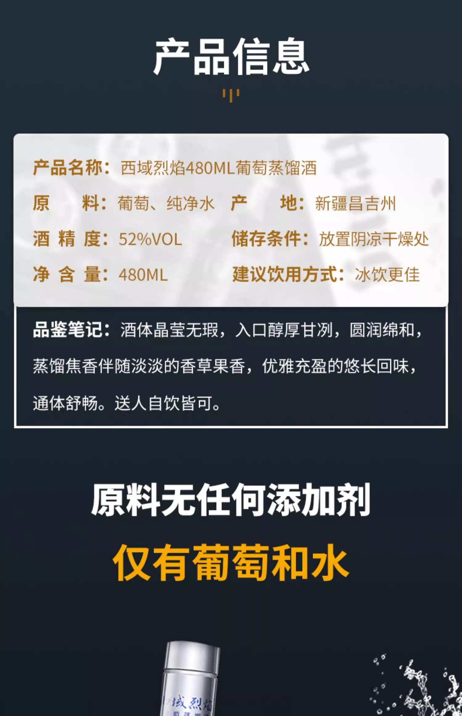 中信尼雅·西域烈焰梦想葡萄蒸馏酒52度 480ml*2 来自西域的白兰地