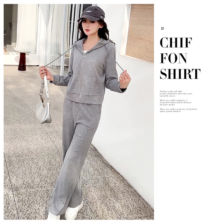 纯色连帽运动休闲短款外套,时尚减龄修身阔腿裤两件套QYM- XYKL-4846-L