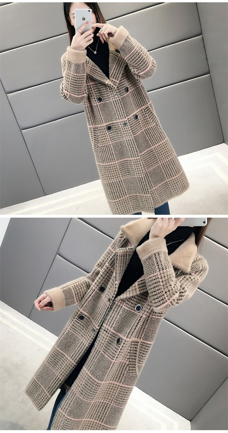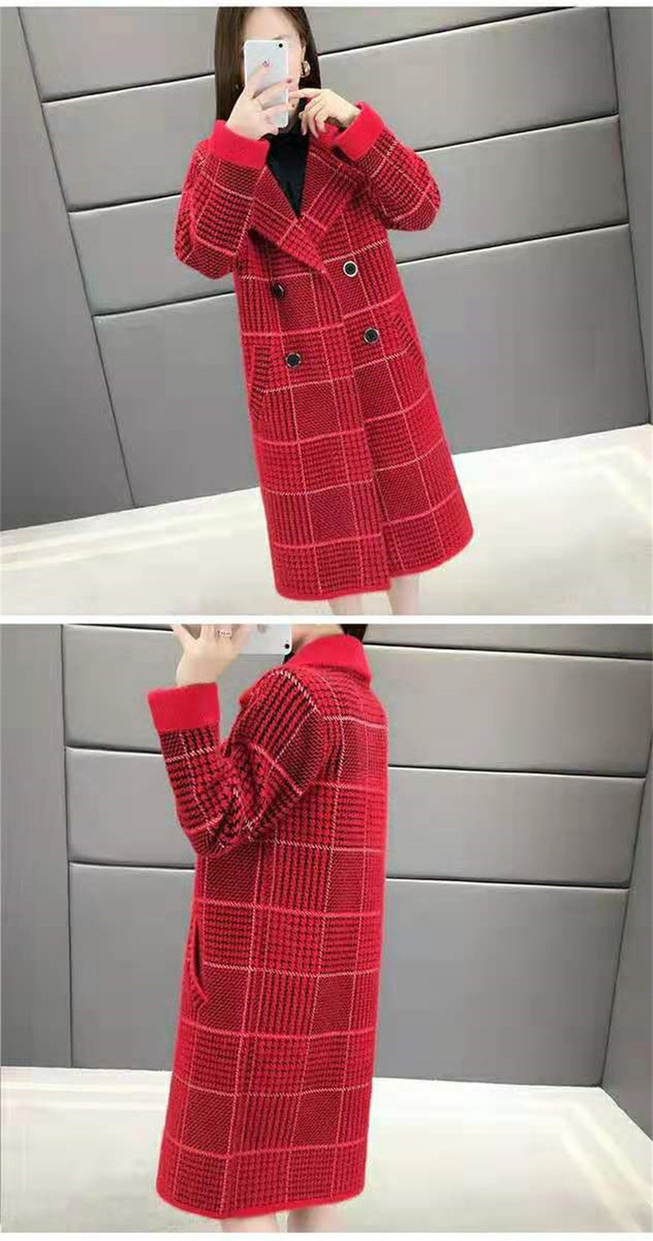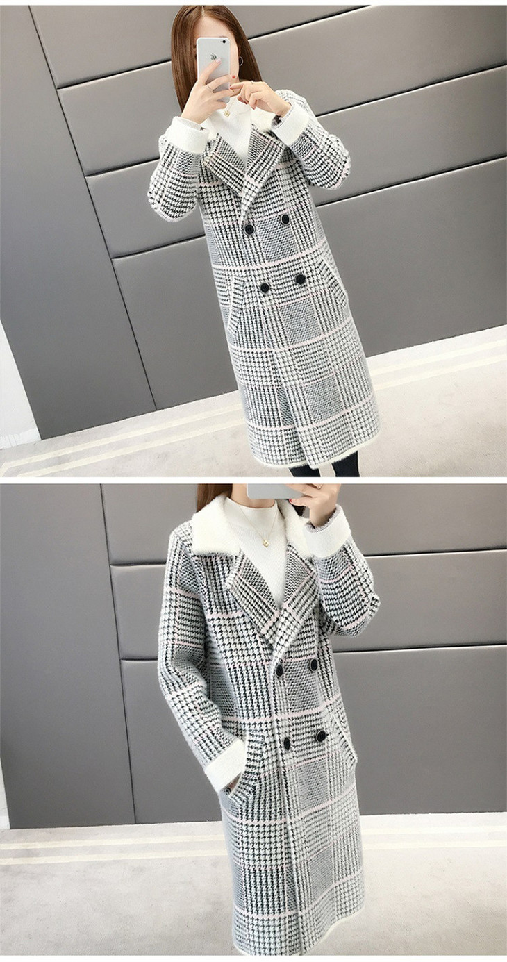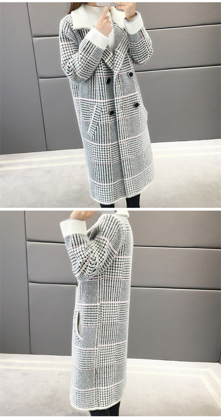 中长款千鸟格2023年秋冬新款宽松慵懒风v领格子长袖双排扣外套SCY-977
