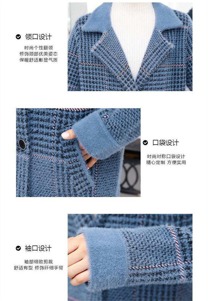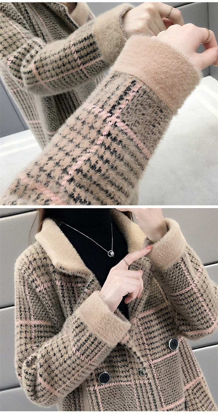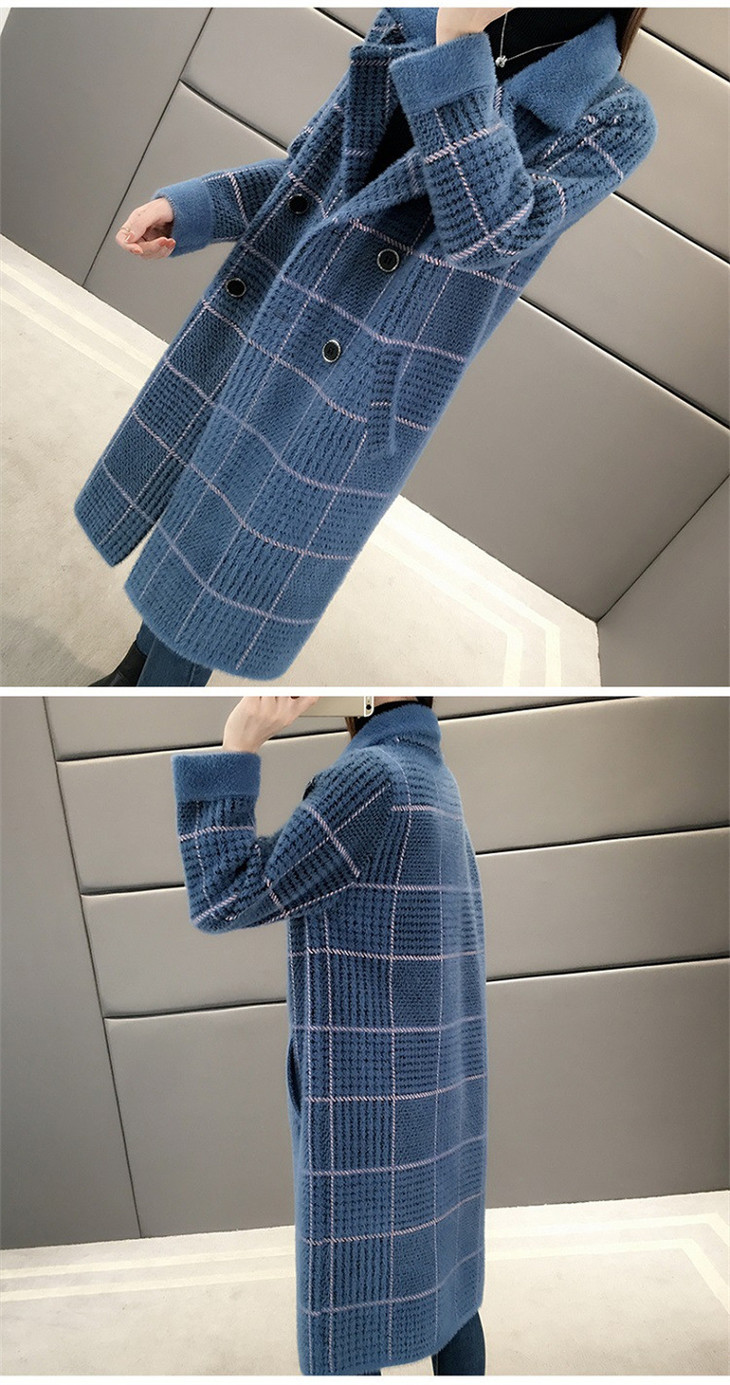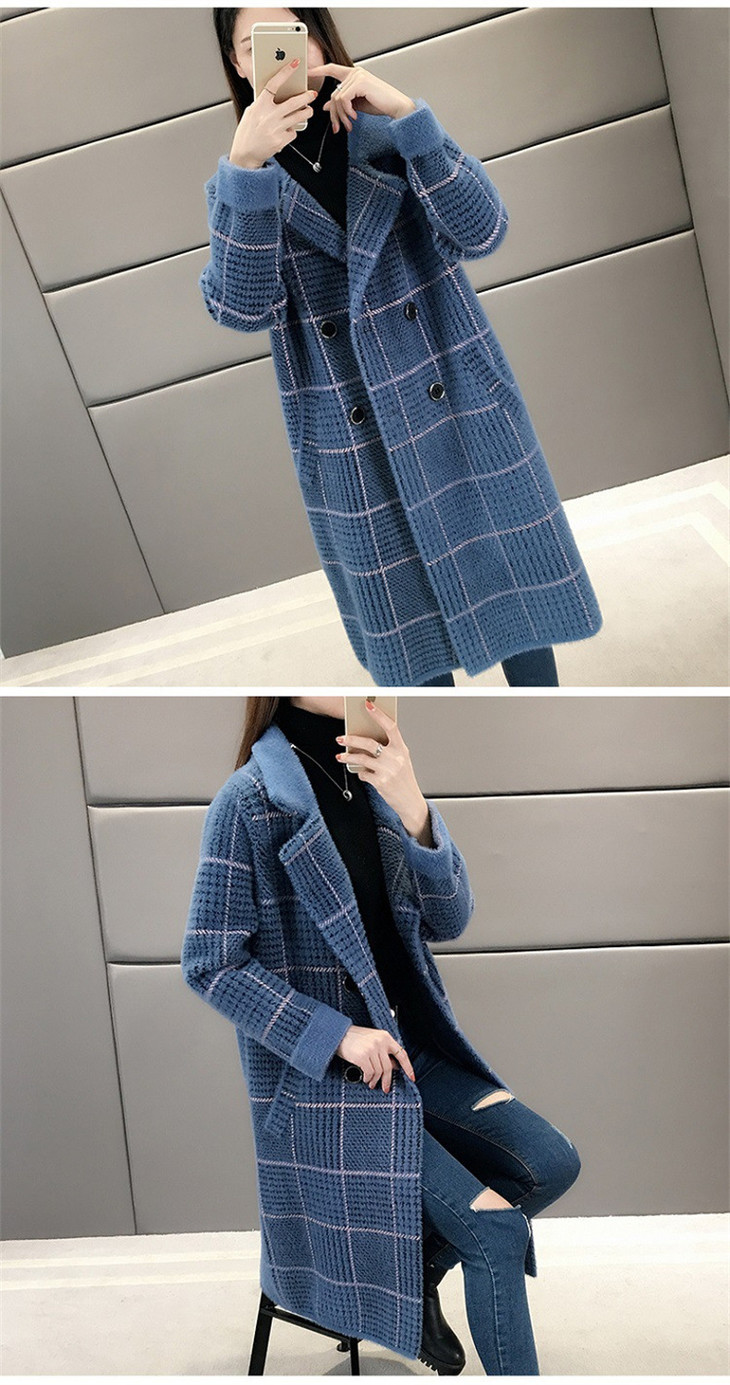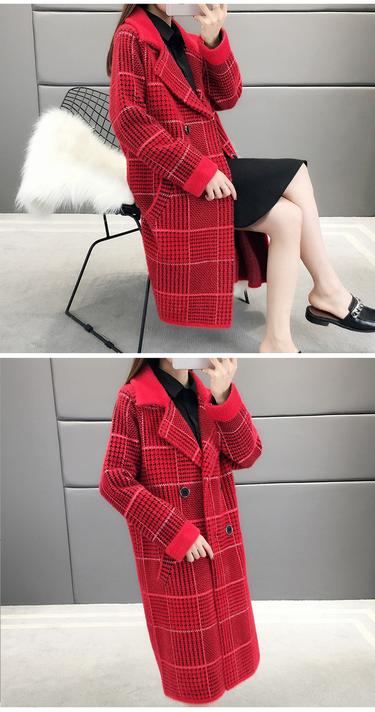 中长款千鸟格2023年秋冬新款宽松慵懒风v领格子长袖双排扣外套SCY-977