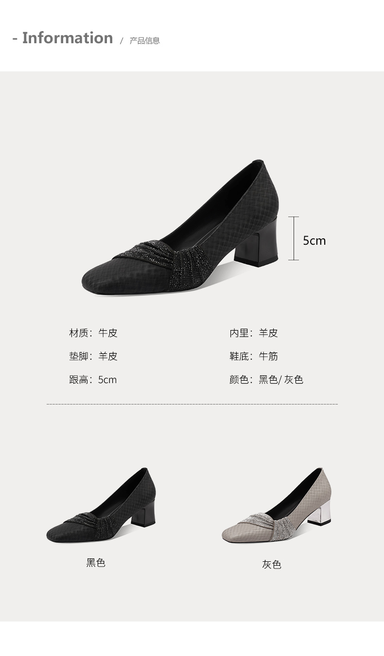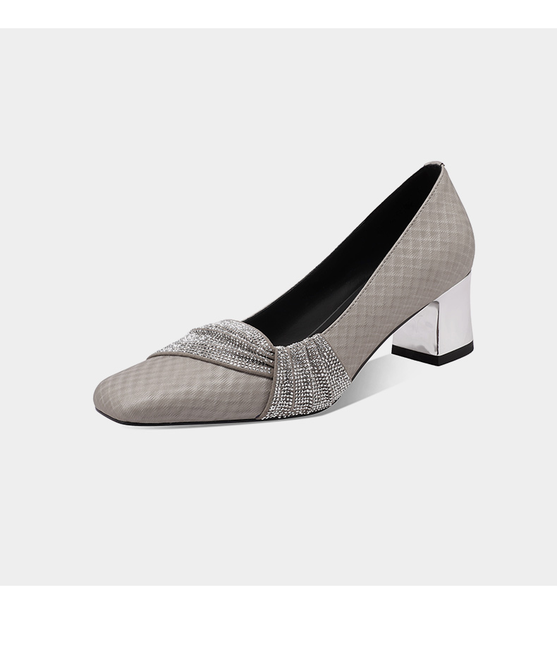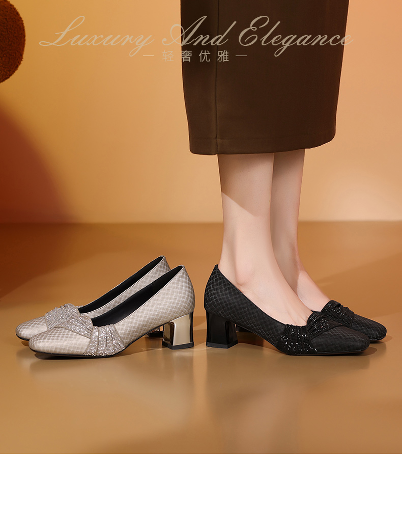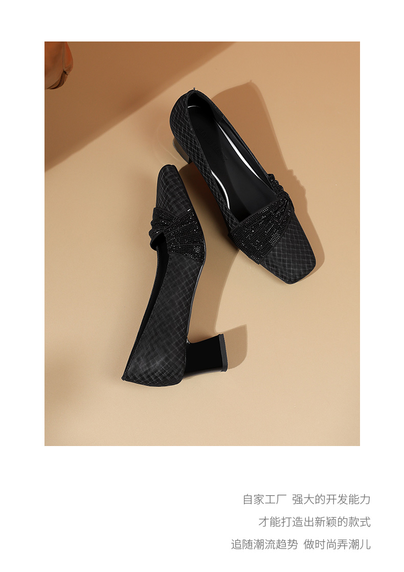 【预售7天】法式设计感浅口水钻方头优雅气质通勤百搭粗跟单鞋MLS&A7007