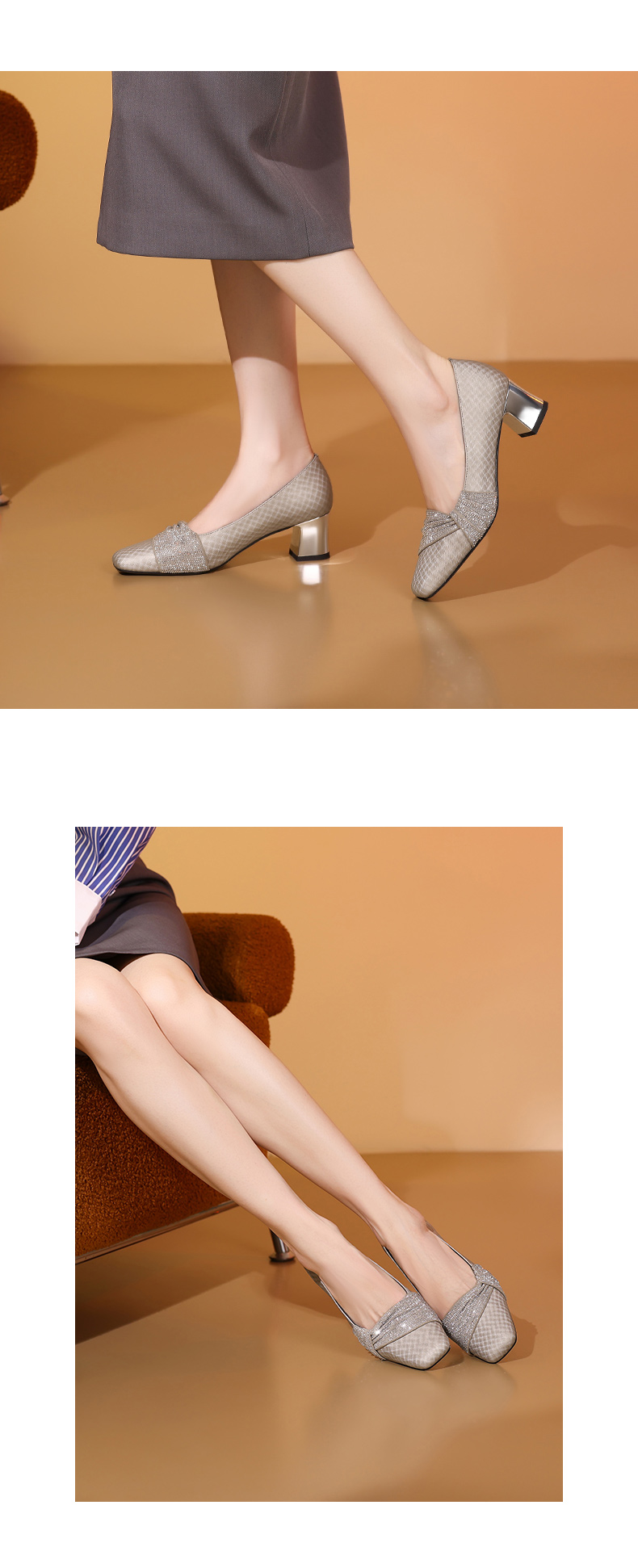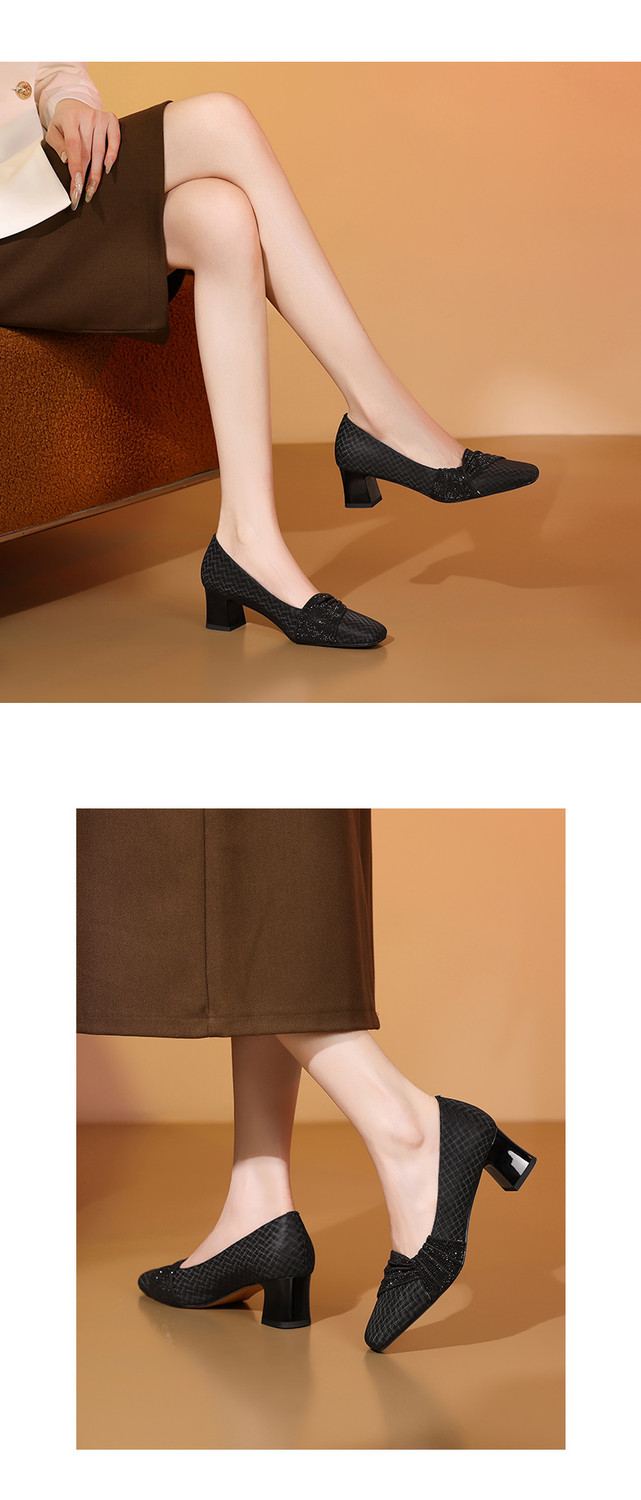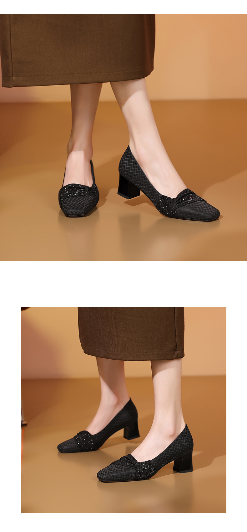 【预售7天】法式设计感浅口水钻方头优雅气质通勤百搭粗跟单鞋MLS&A7007