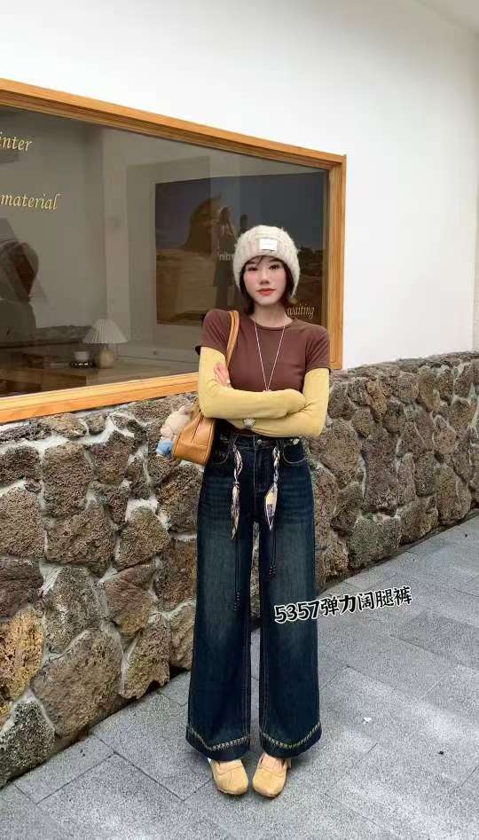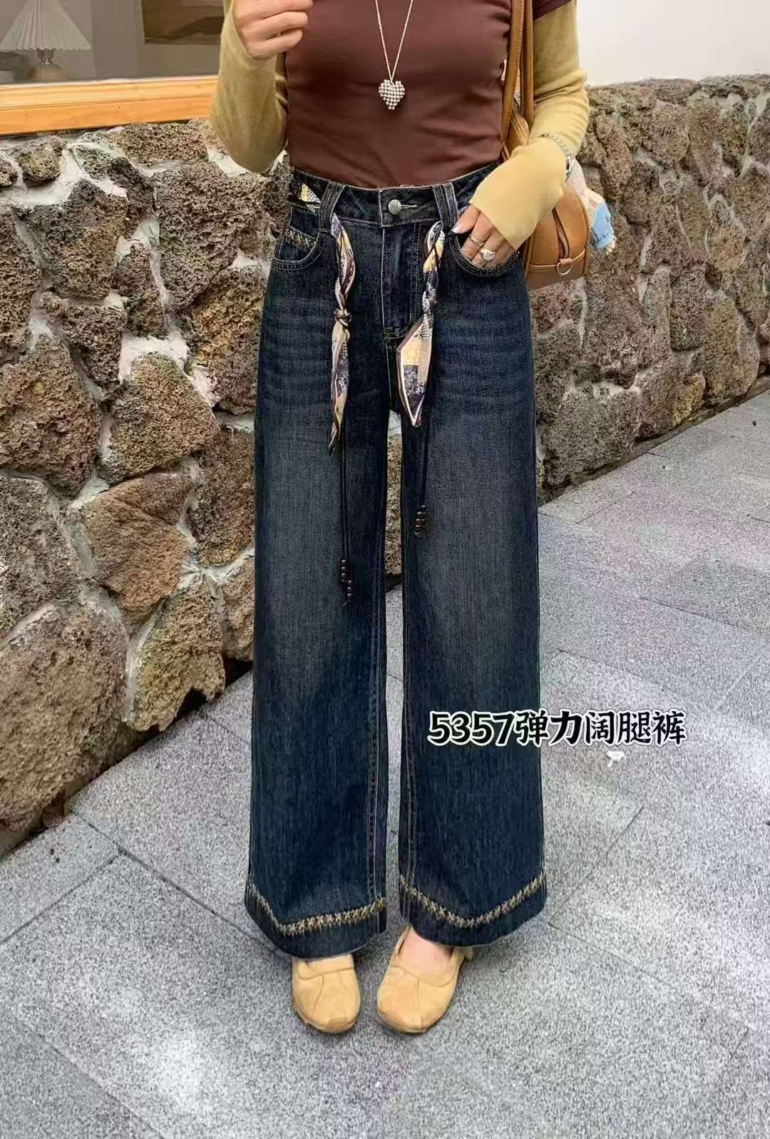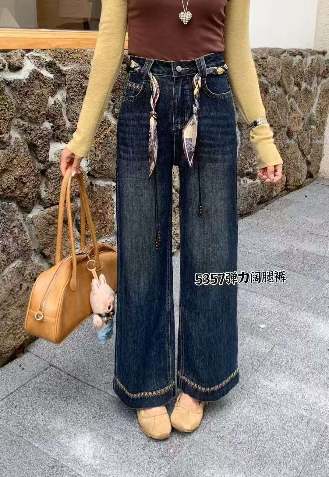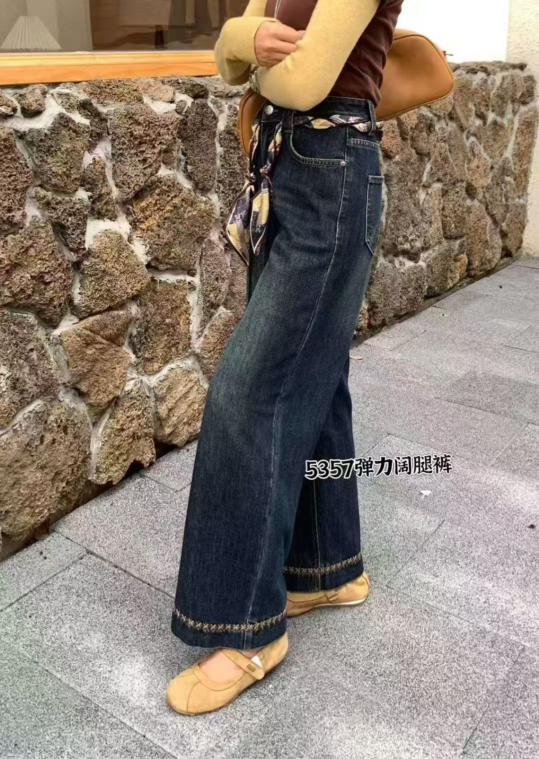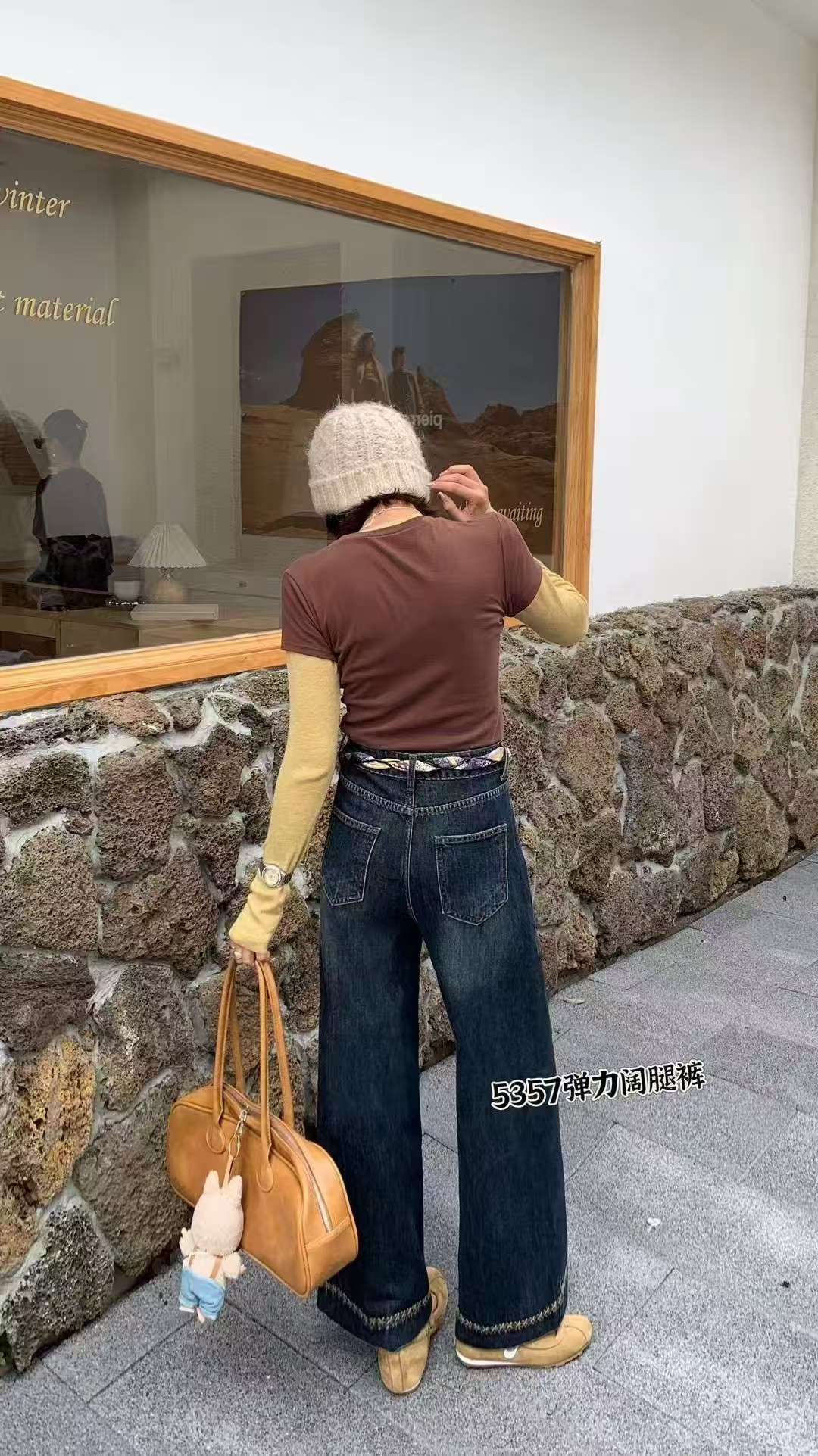 【爆款牛仔】2025秋季新品~5357爆款丝带四叶草裤脚版型超好牛仔直筒裤-喜出