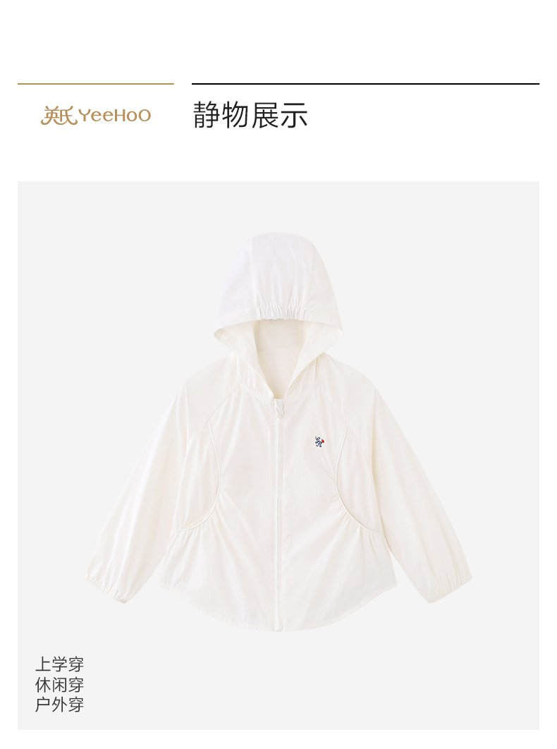 【商场同款】英氏儿童外套女童夏季防晒衣新款白色连帽休闲户外服