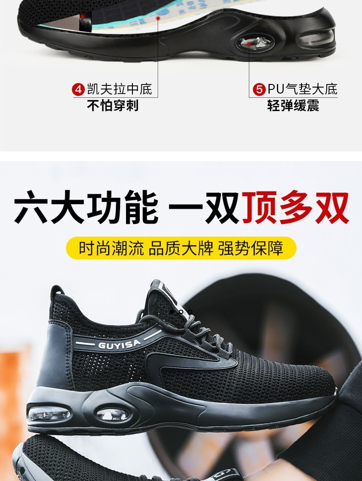 劳保鞋男安全工作鞋钢包头防砸防刺穿 【气垫缓震】【大孔透气】