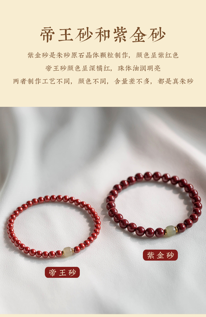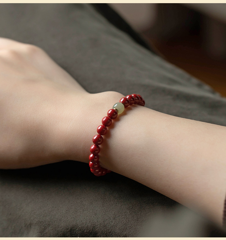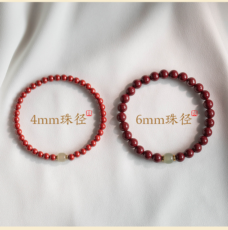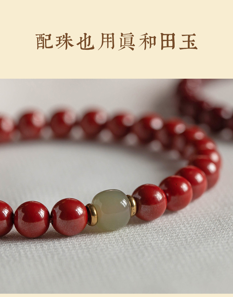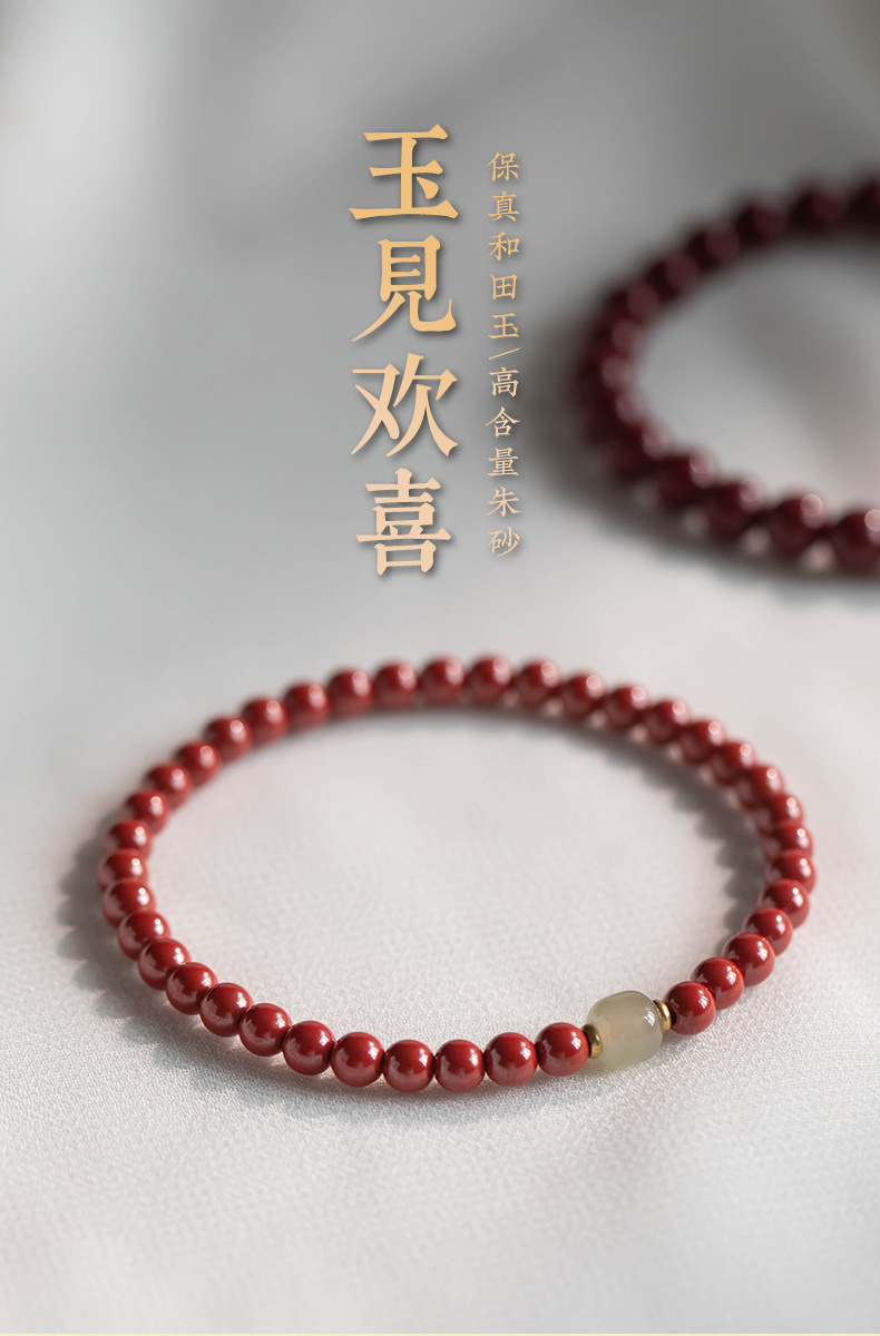 丁摩 原矿高含量朱砂透光和田玉手链情侣古风本命年礼物男女5ZF-1