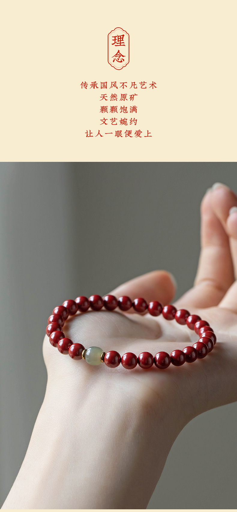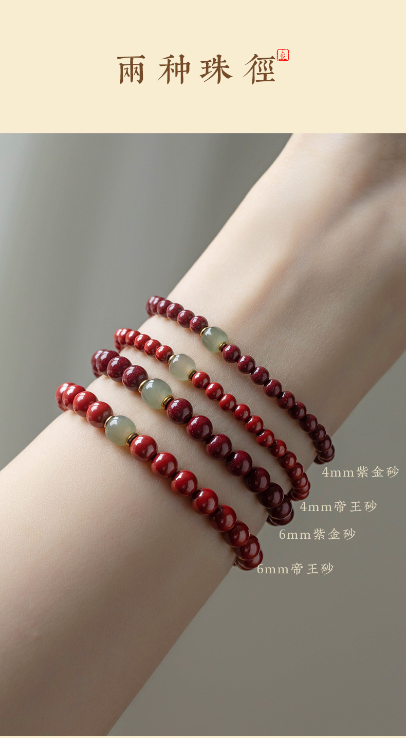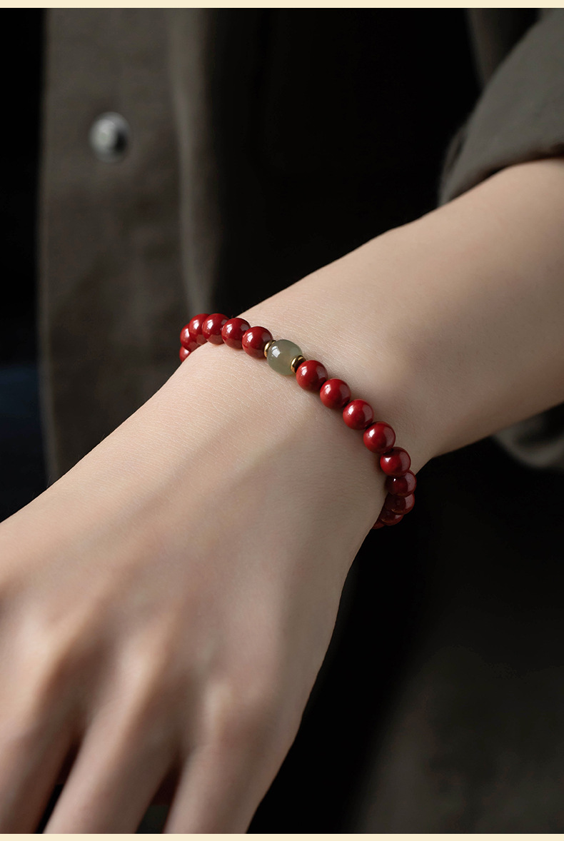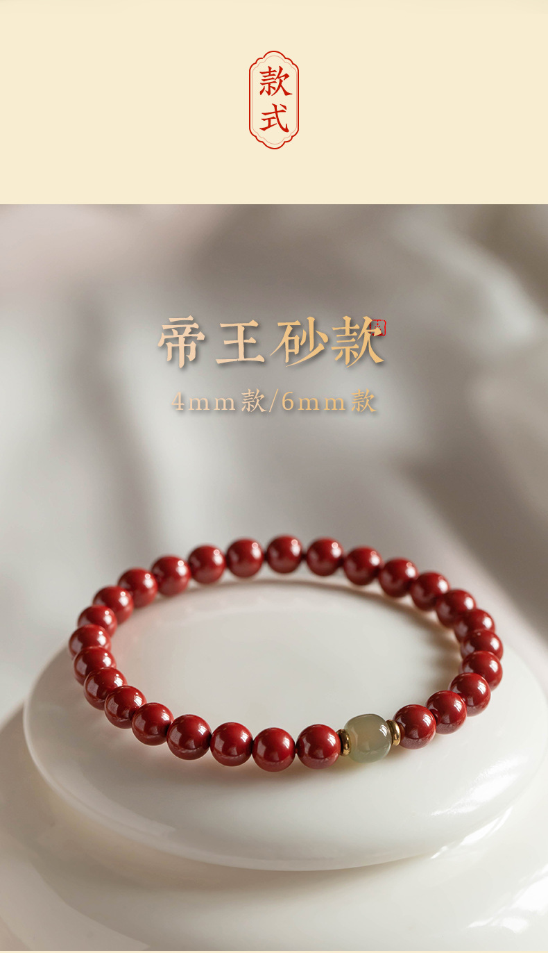 丁摩 原矿高含量朱砂透光和田玉手链情侣古风本命年礼物男女5ZF-1