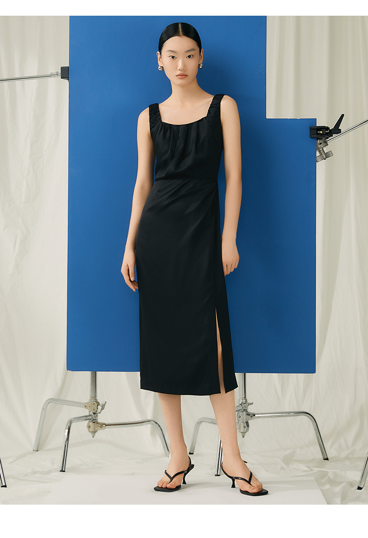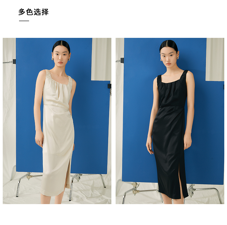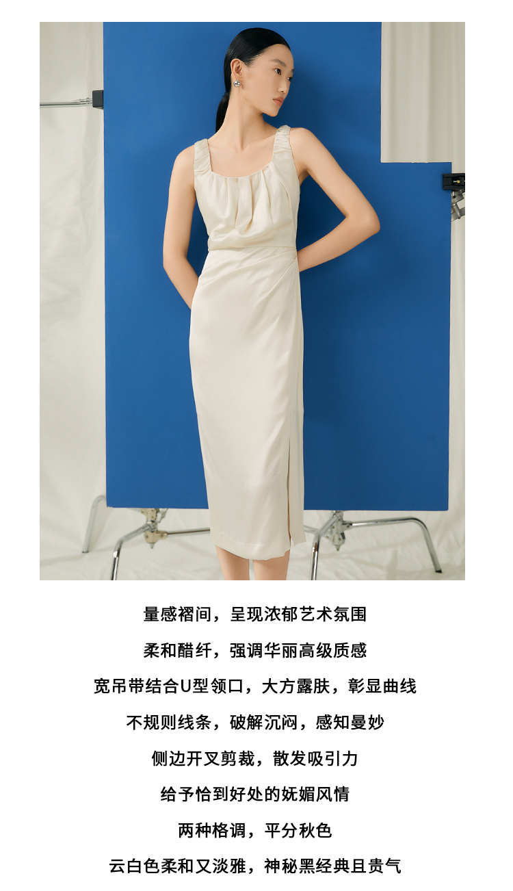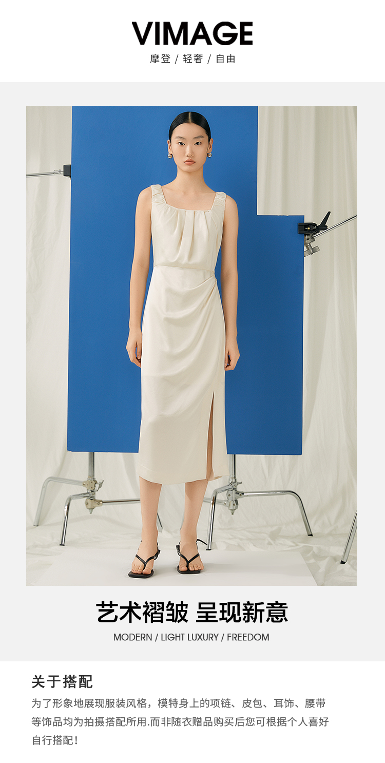 VIMAGE纬漫纪夏季新款气质收腰显瘦无袖开叉连衣裙V1907524