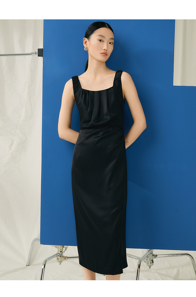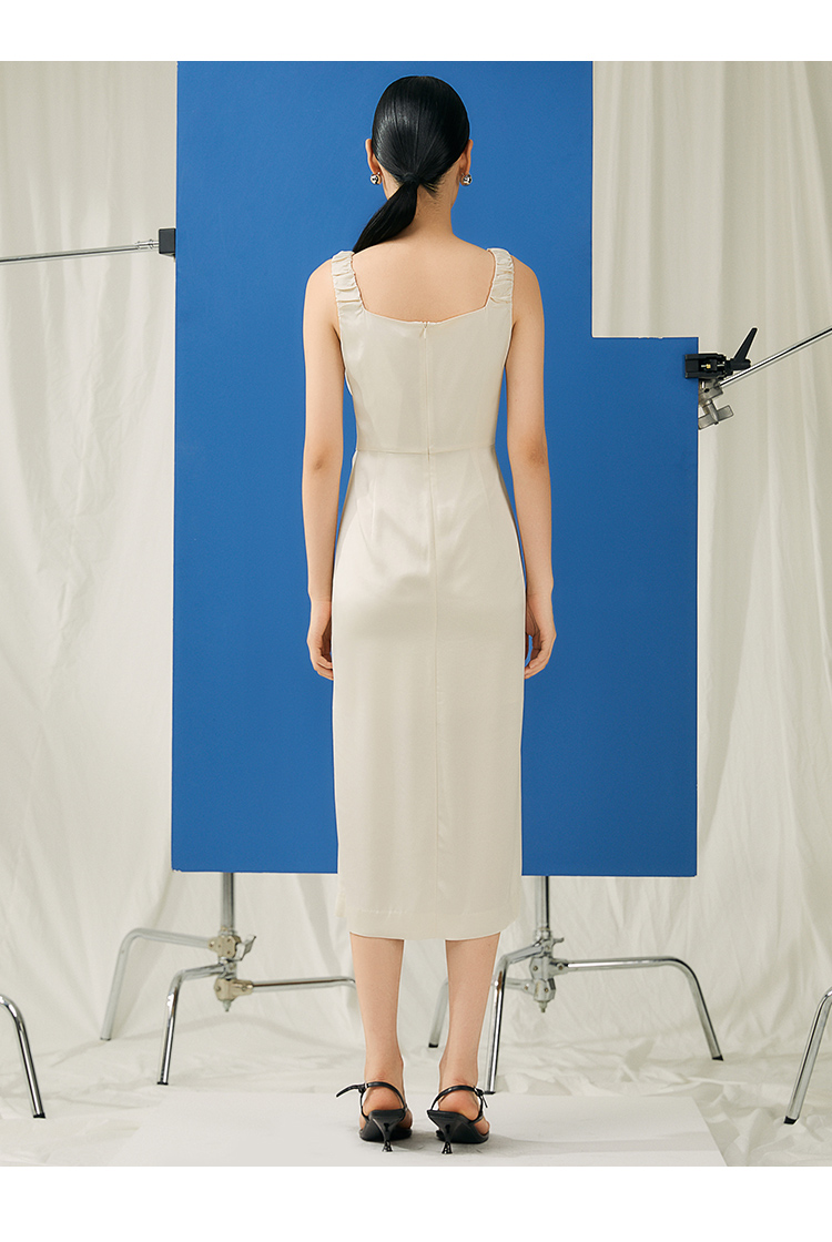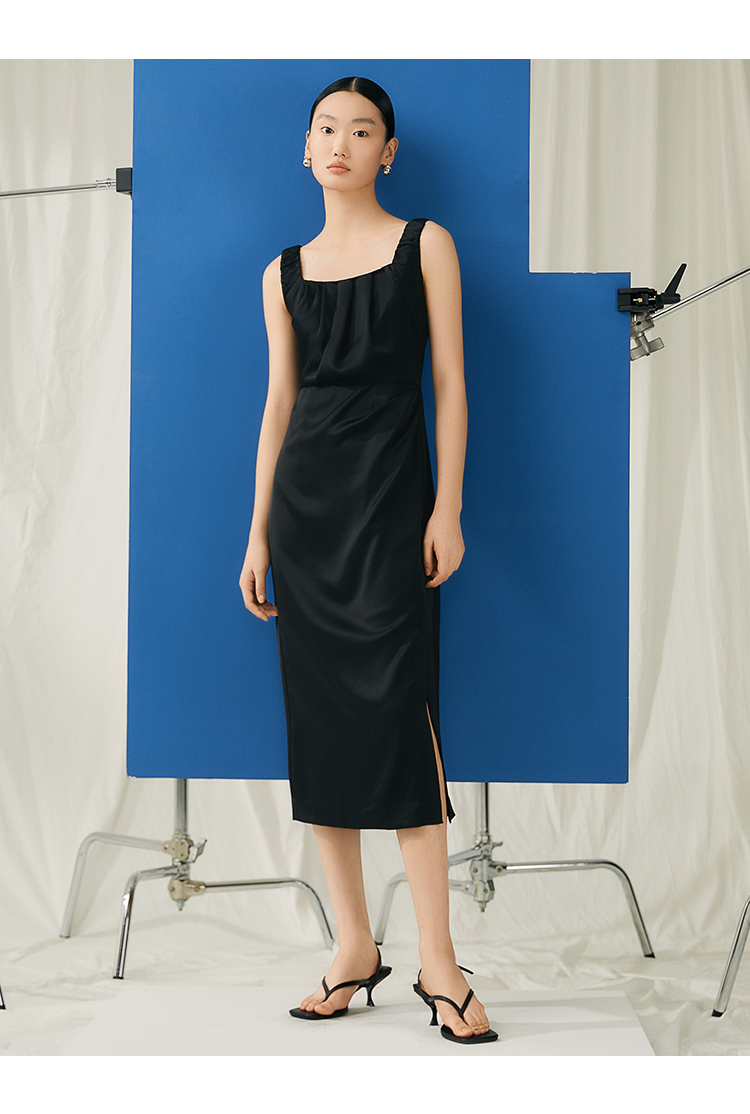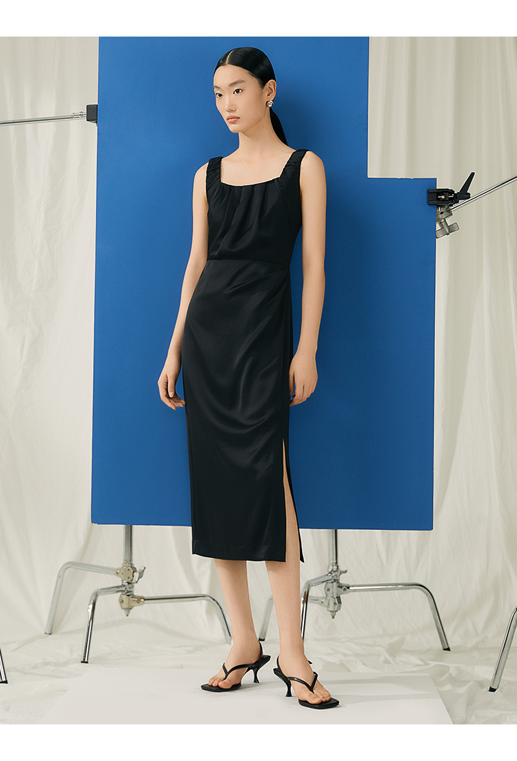 VIMAGE纬漫纪夏季新款气质收腰显瘦无袖开叉连衣裙V1907524