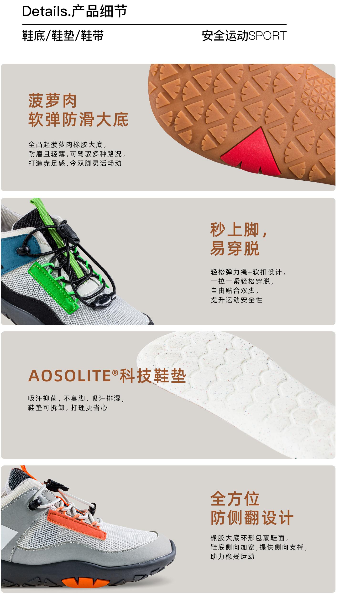 XY pineapple先锋赤足鞋-菠萝24春季新款男女童超轻防滑透气网布抽绳赤足鞋