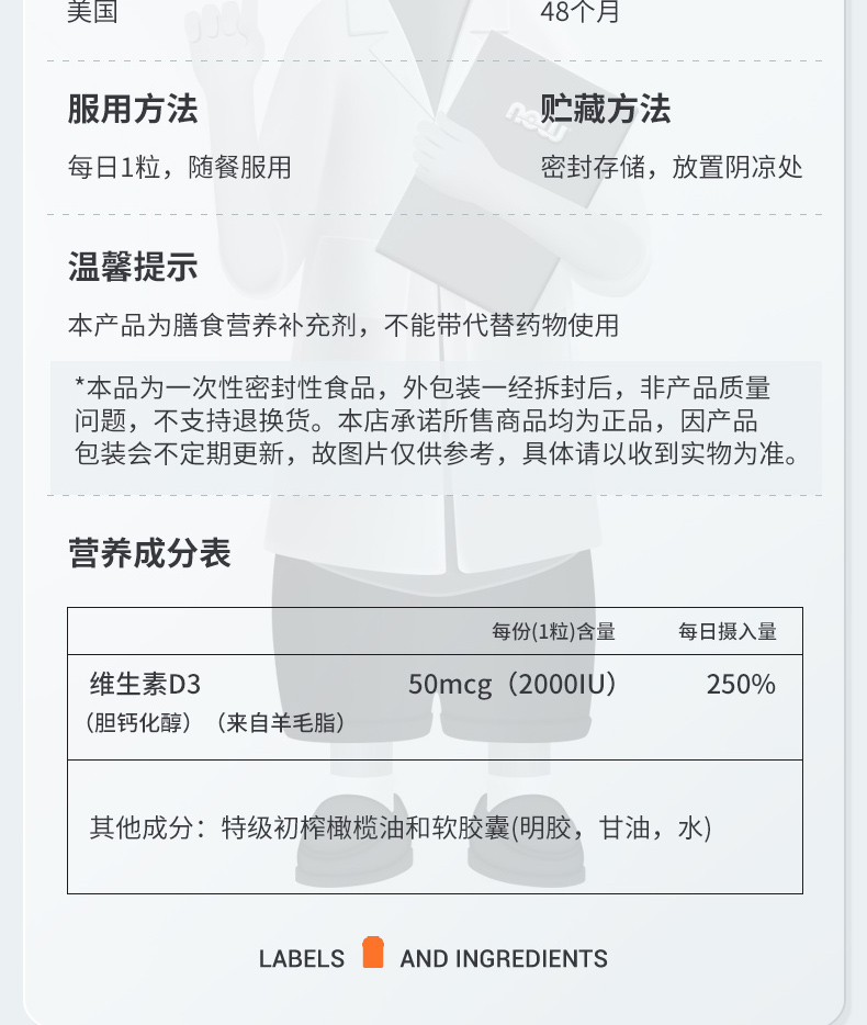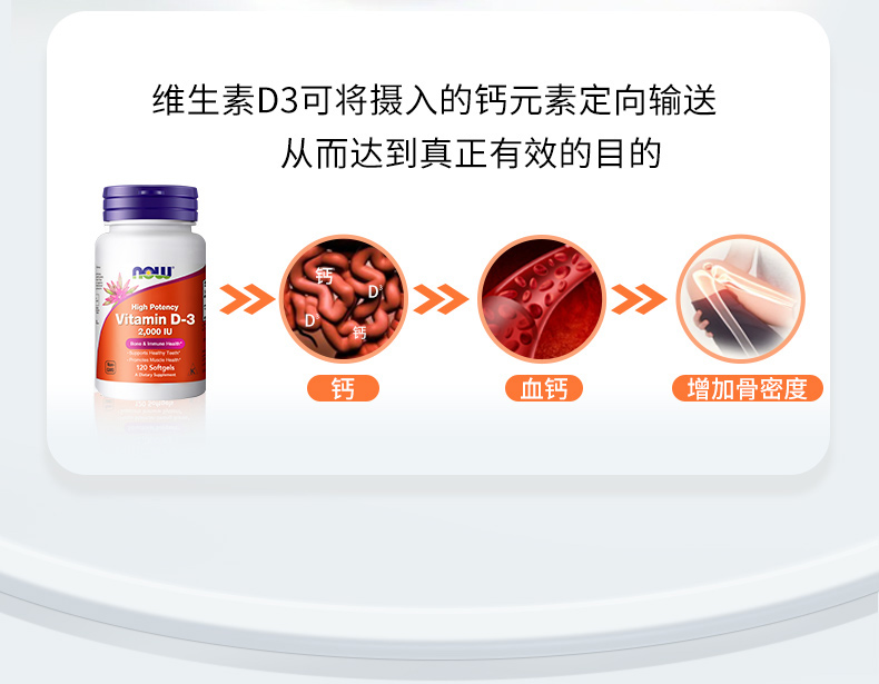 NOW维生素D3软胶囊2000IU 120粒