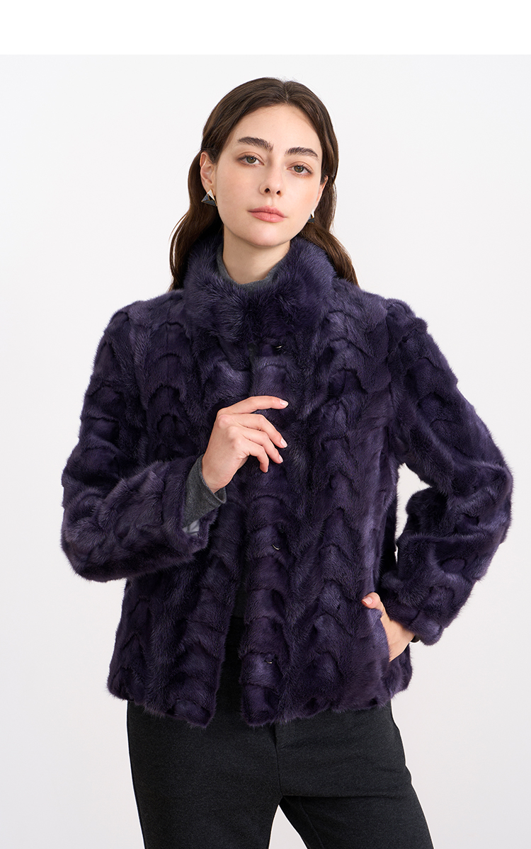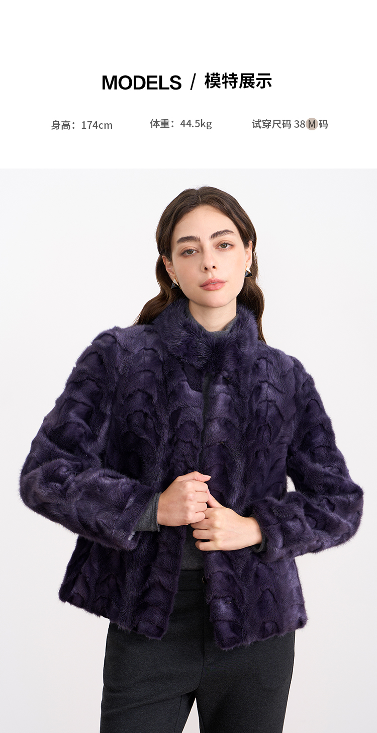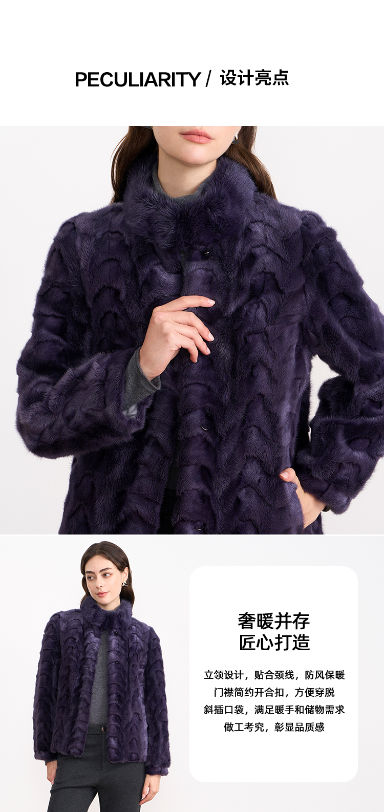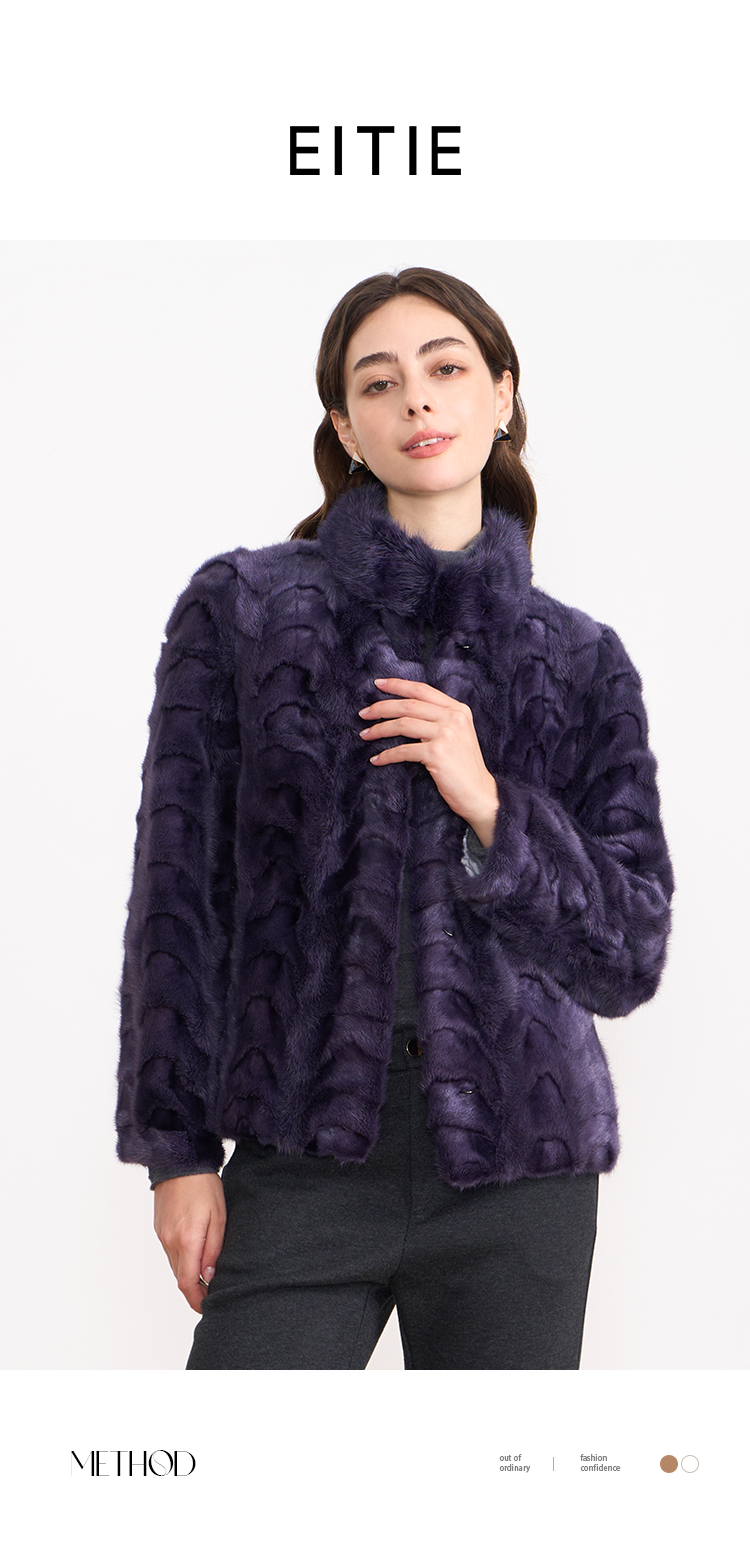 EITIE爱特爱柔紫色短款高贵优雅保暖皮草大衣8093719