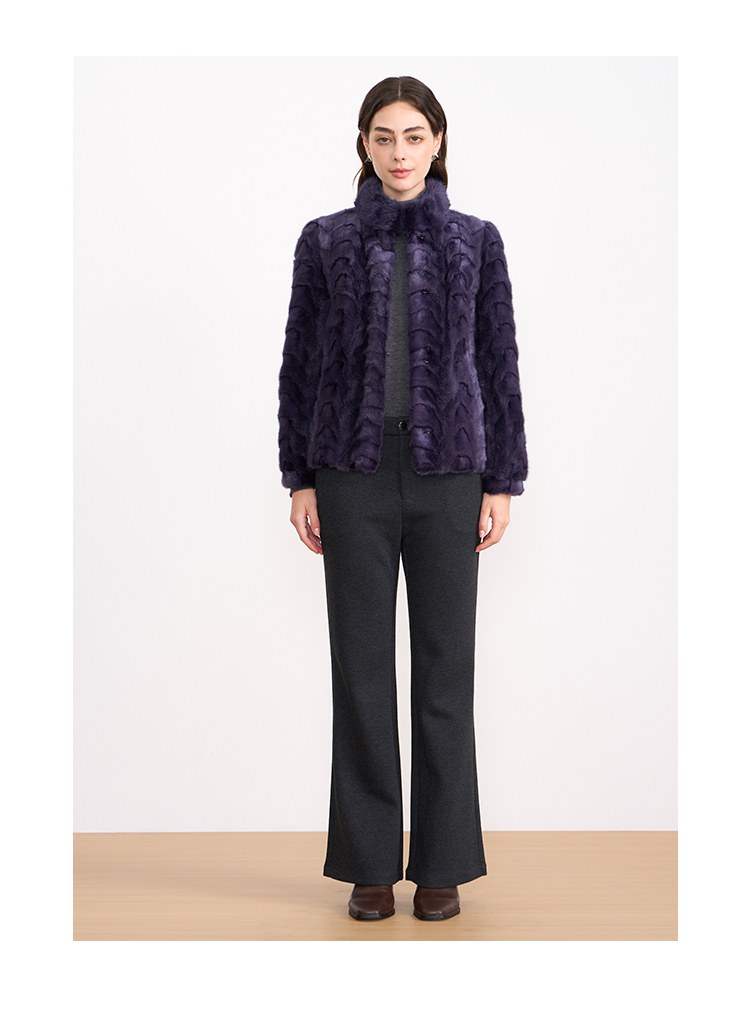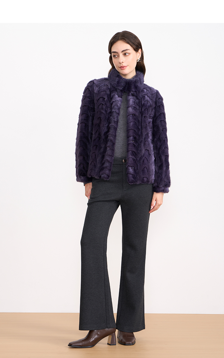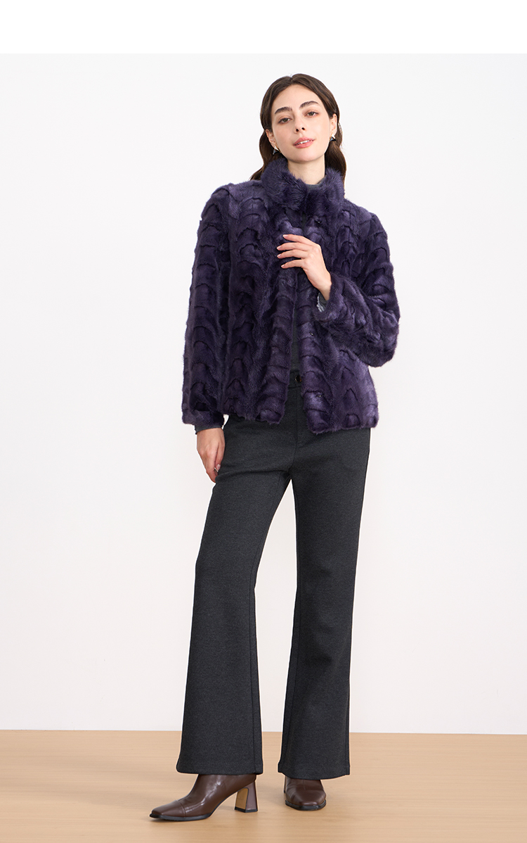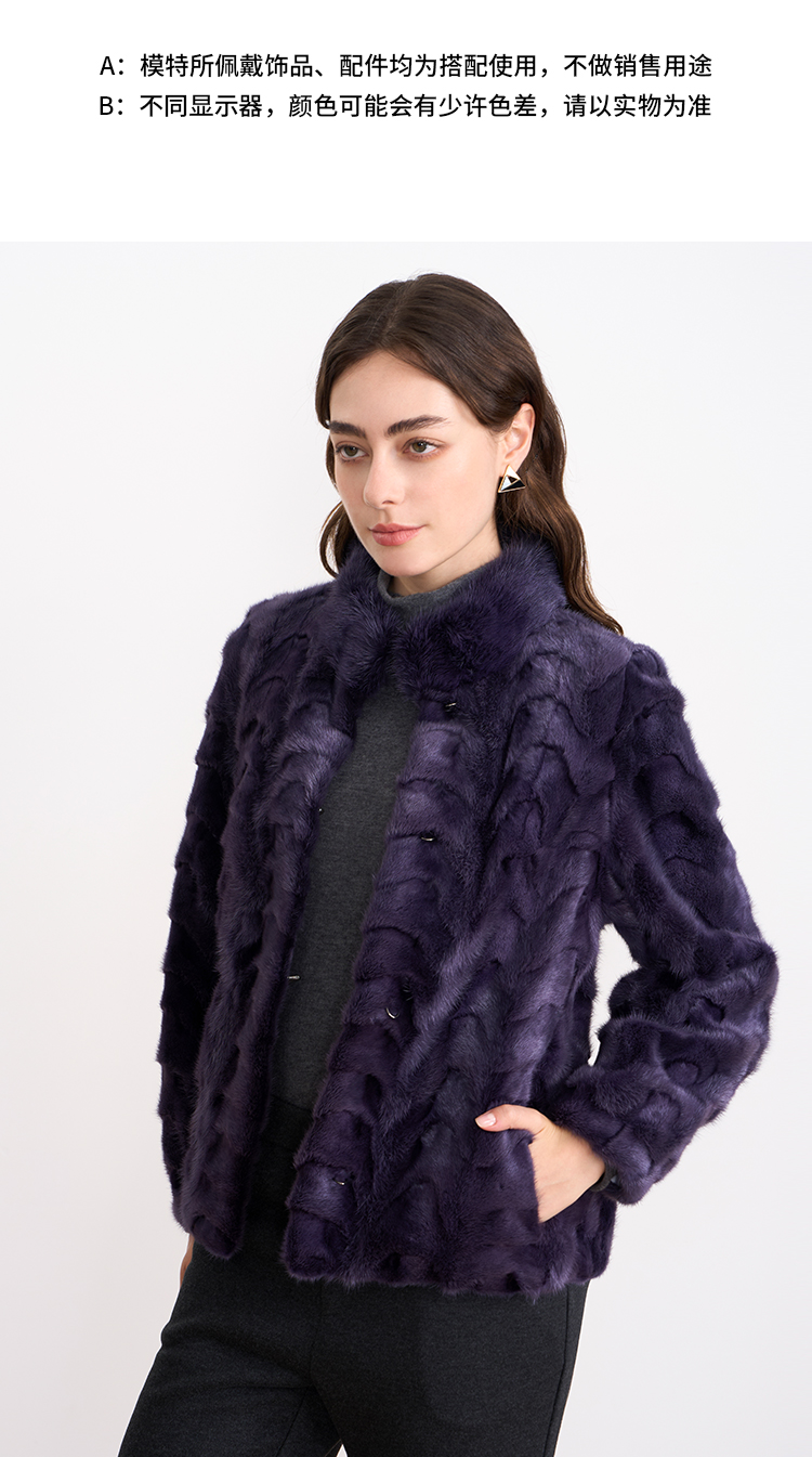 EITIE爱特爱柔紫色短款高贵优雅保暖皮草大衣8093719