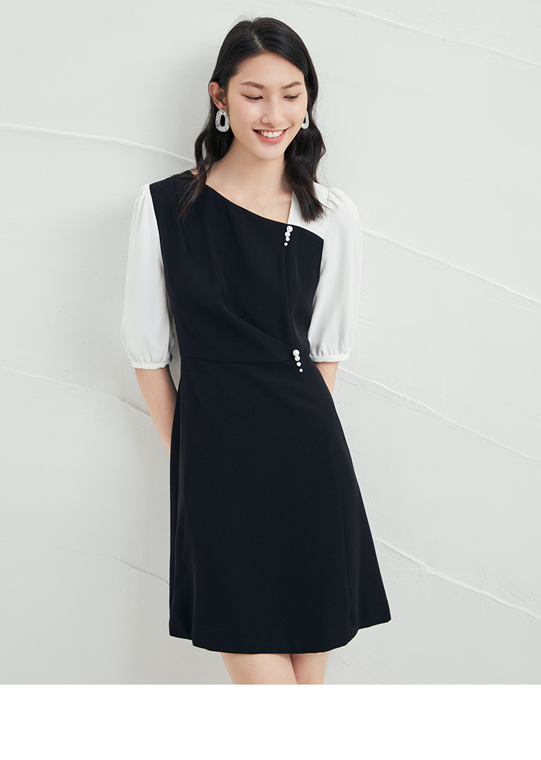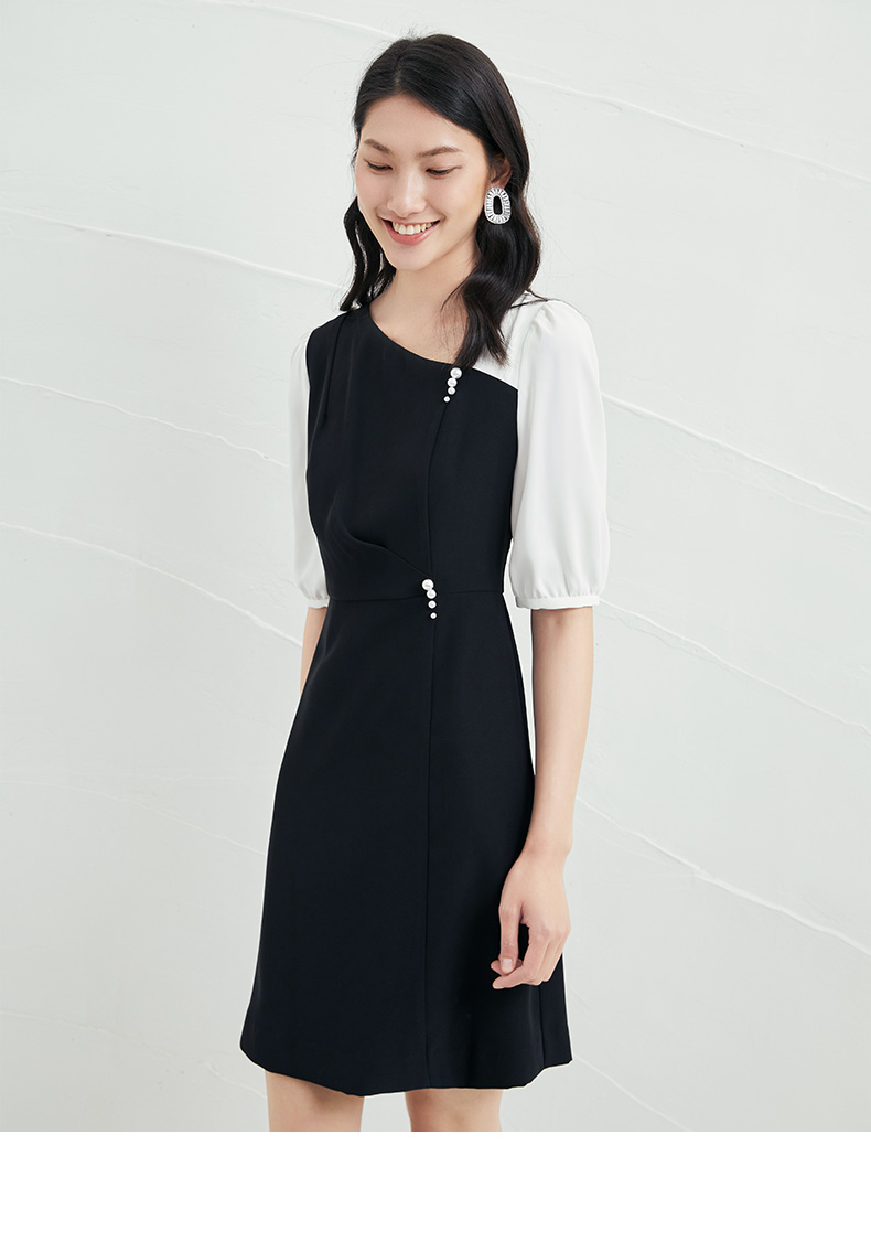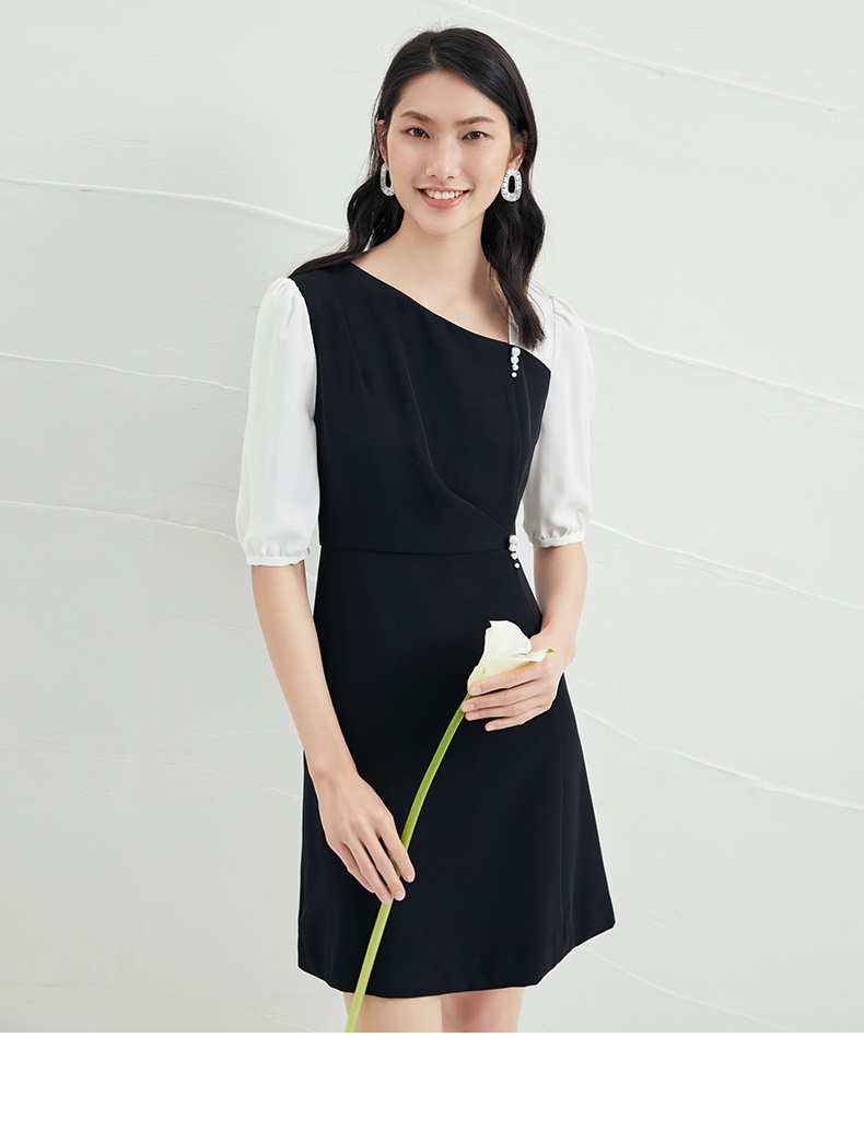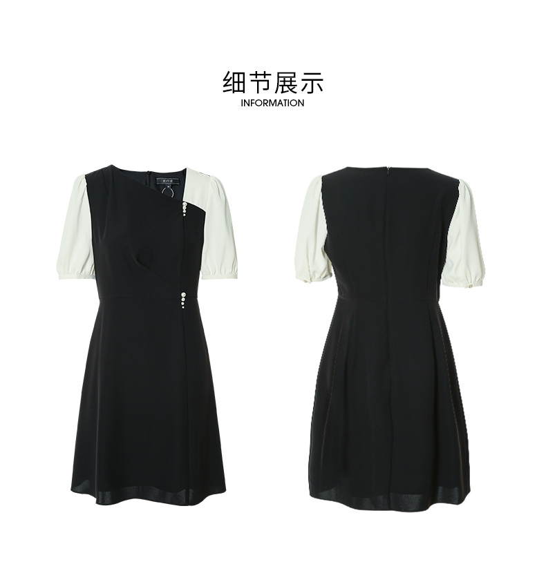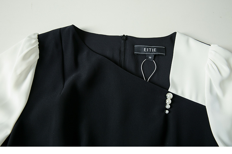 EITIE爱特爱夏季新款气质通勤百搭显瘦泡泡袖收腰a字连衣裙B2207922