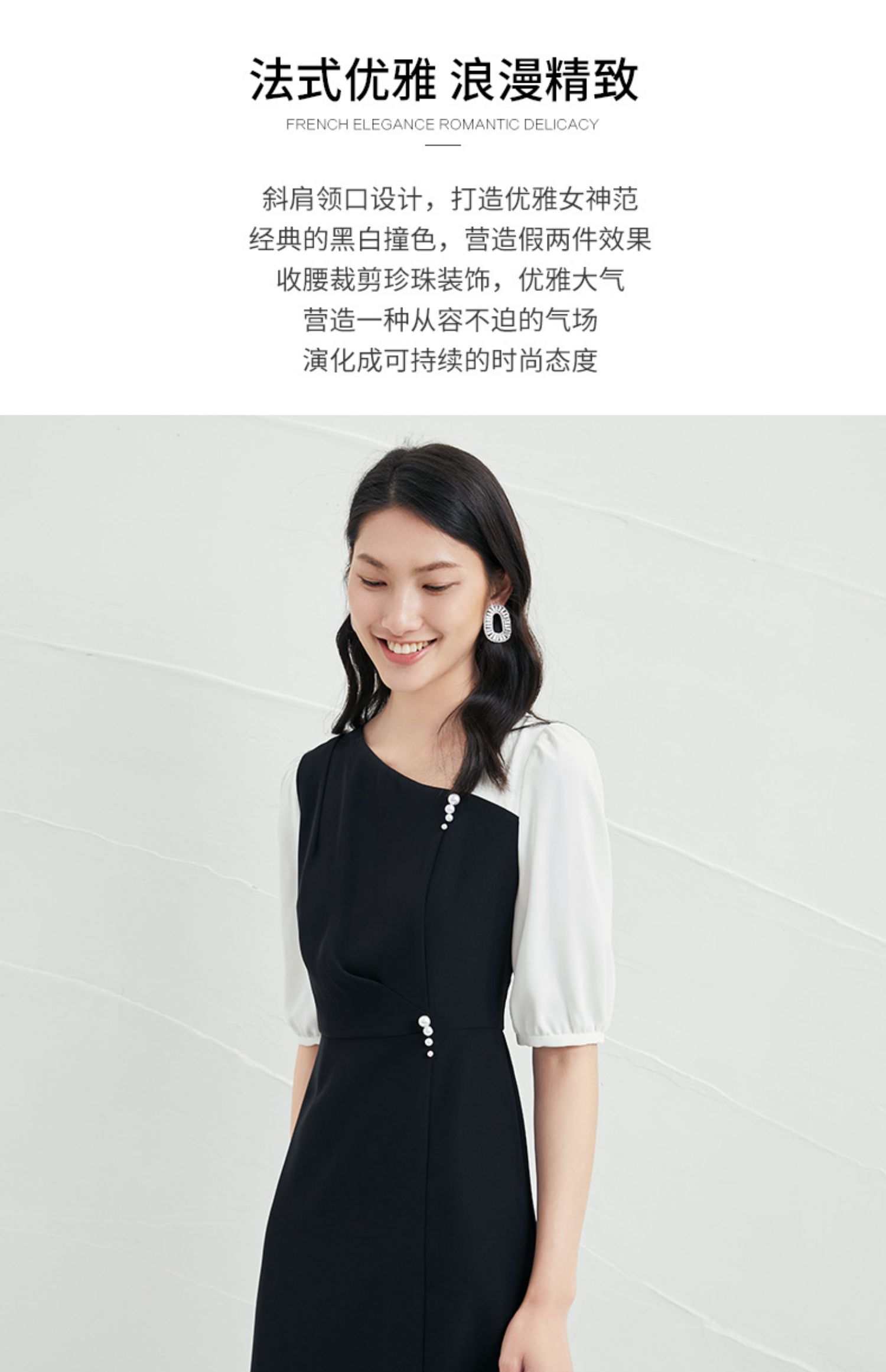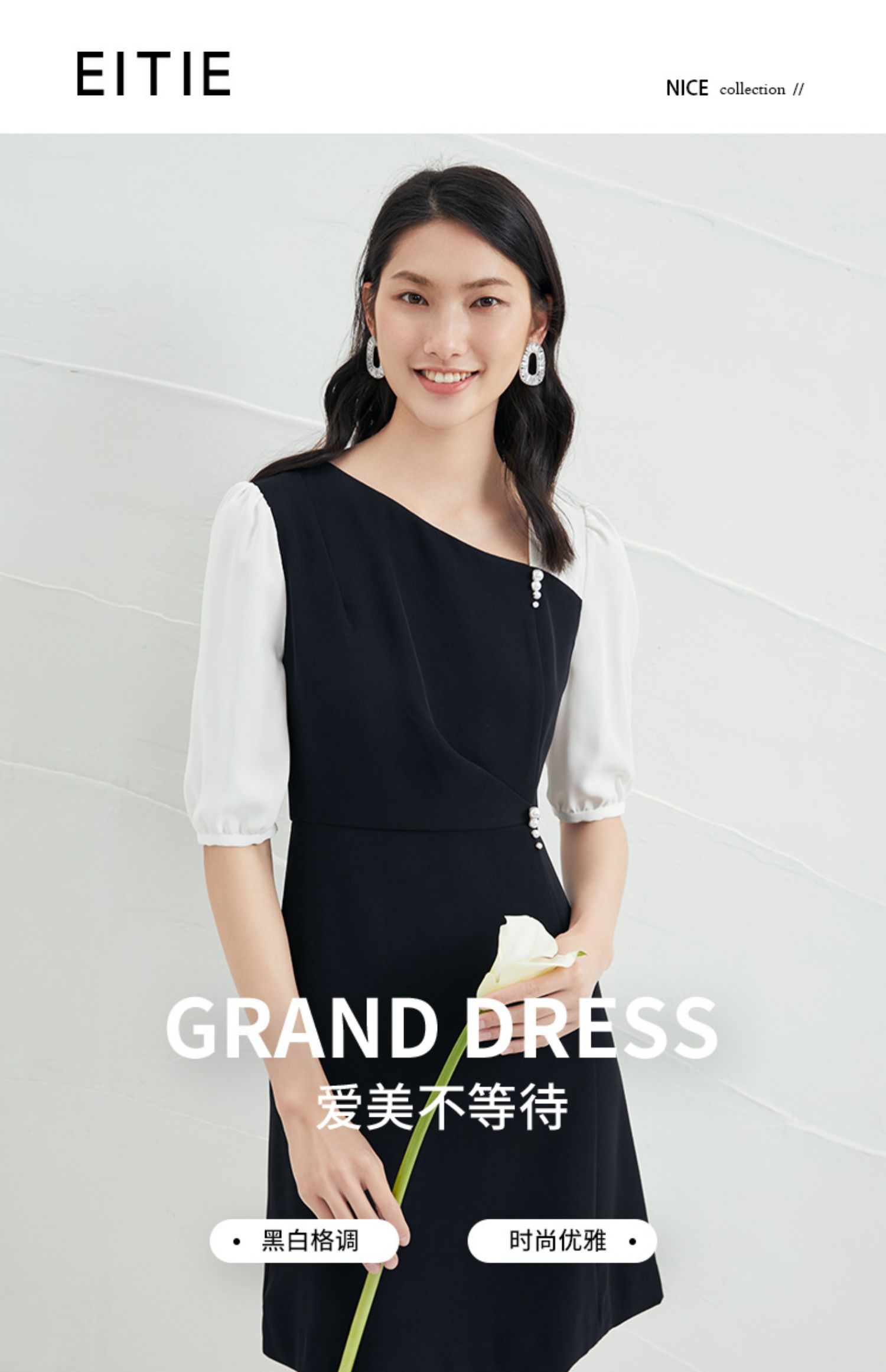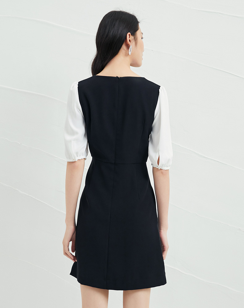 EITIE爱特爱夏季新款气质通勤百搭显瘦泡泡袖收腰a字连衣裙B2207922