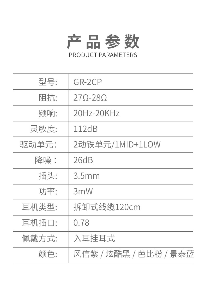 RAPTGO 楼氏动铁监听耳机入耳式有线耳机专业级降噪式耳机 HIFI发烧入两单元动铁 GR 2CP(赠天籁之音永久会员)