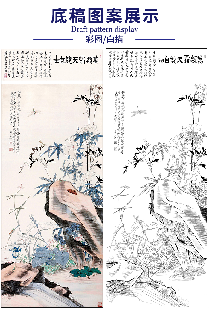 于非闇工笔画白描底稿《秋虫杂卉》临摹勾线高清打印稿HS02