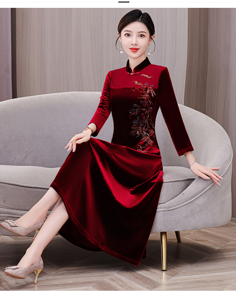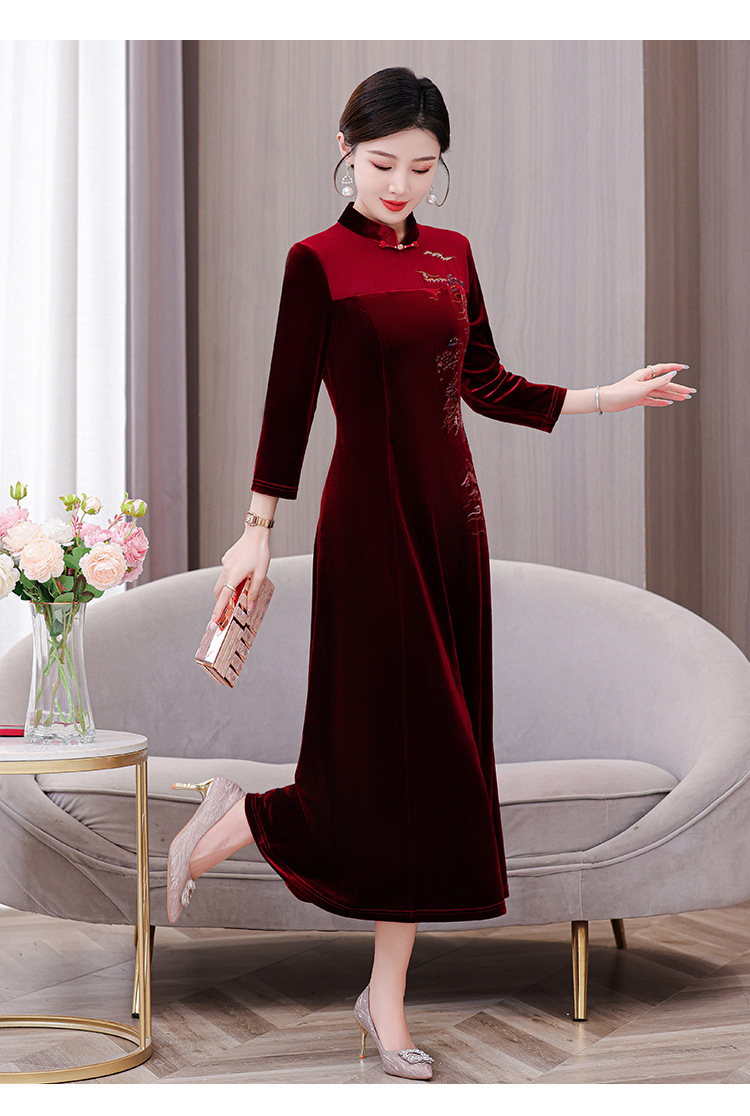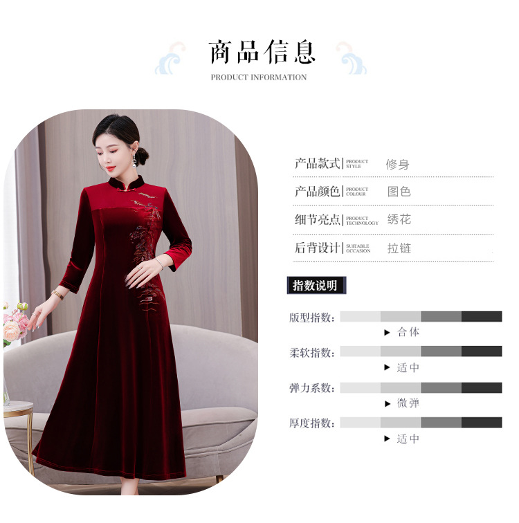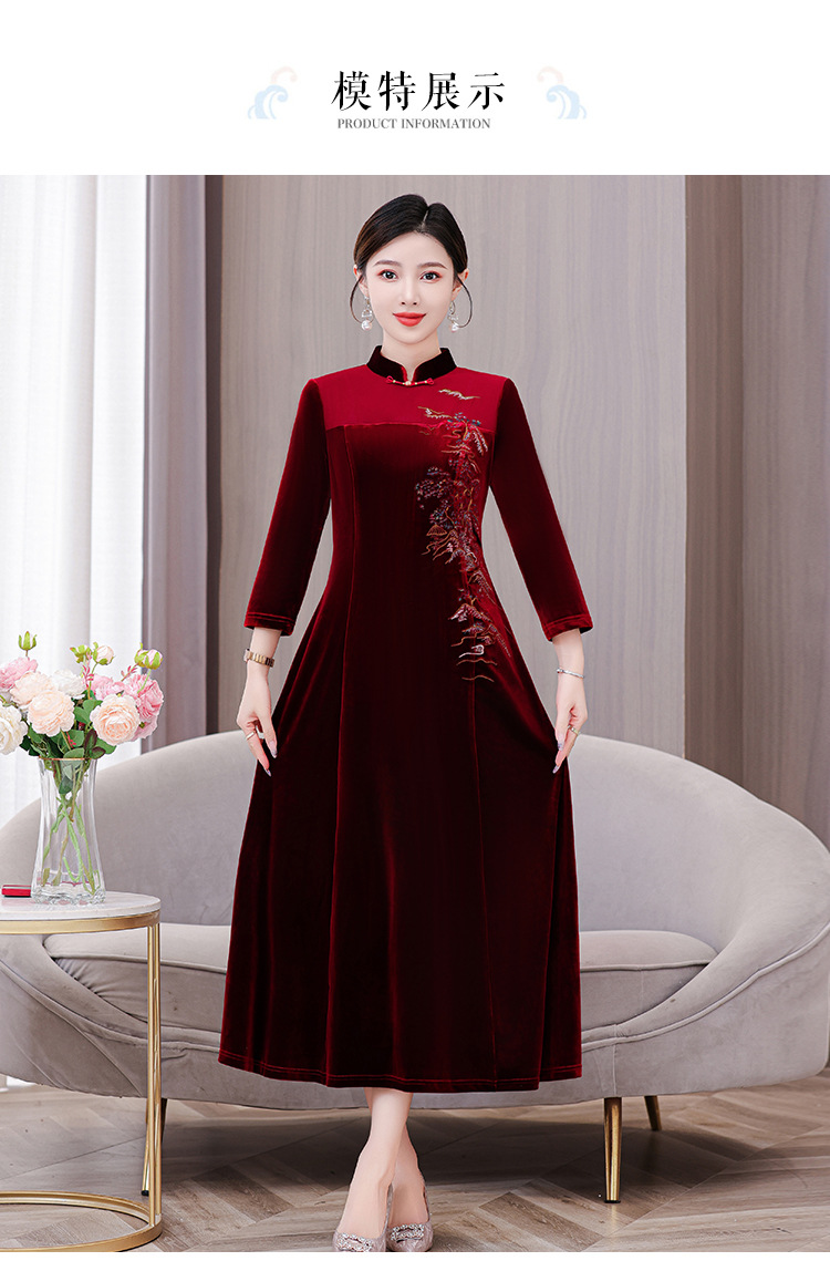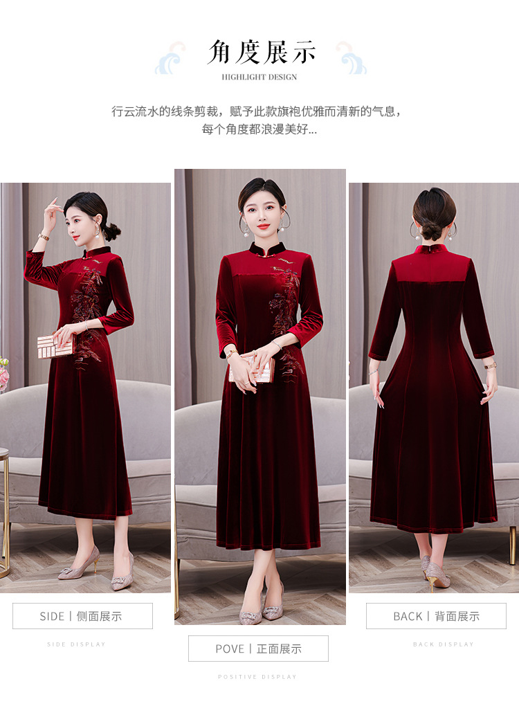 AHM thfs9668金丝绒旗袍改良复古妈妈装裙 商品图0