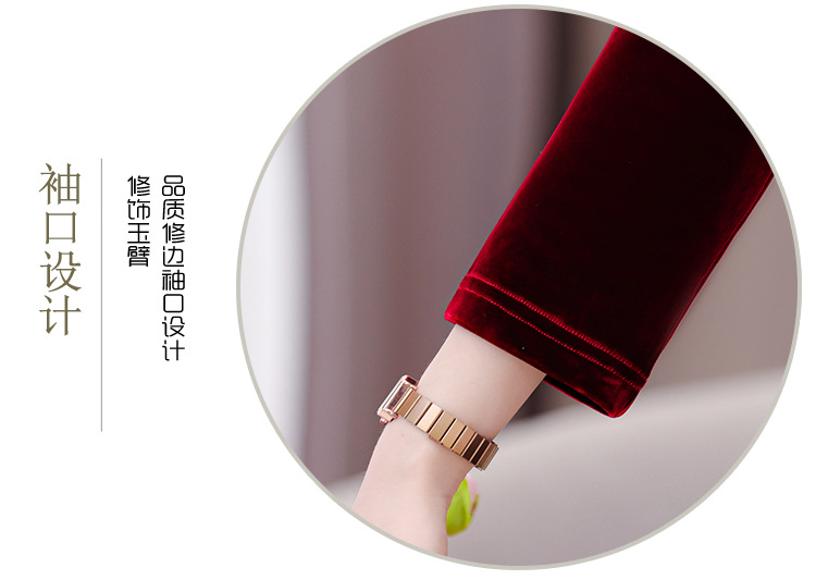 AHM thfs9668金丝绒旗袍改良复古妈妈装裙 商品图3