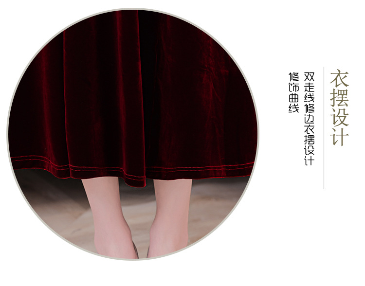 AHM thfs9668金丝绒旗袍改良复古妈妈装裙 商品图4