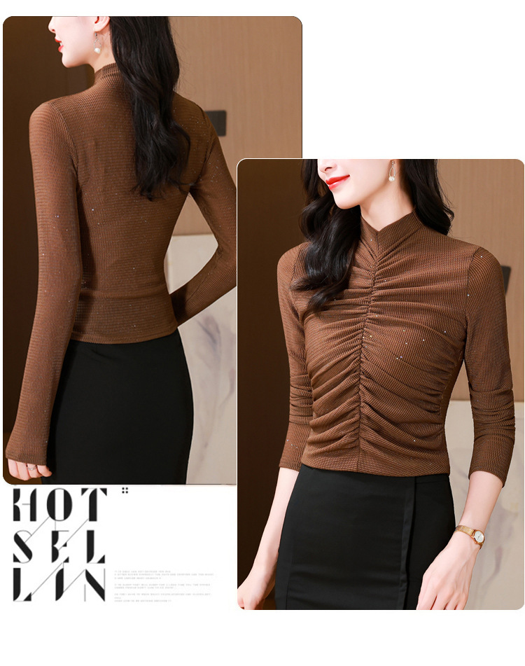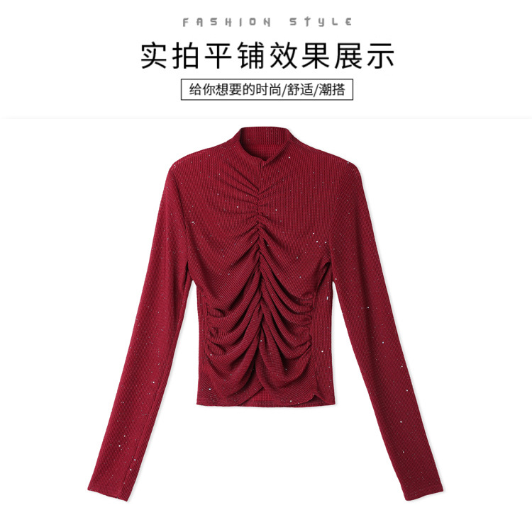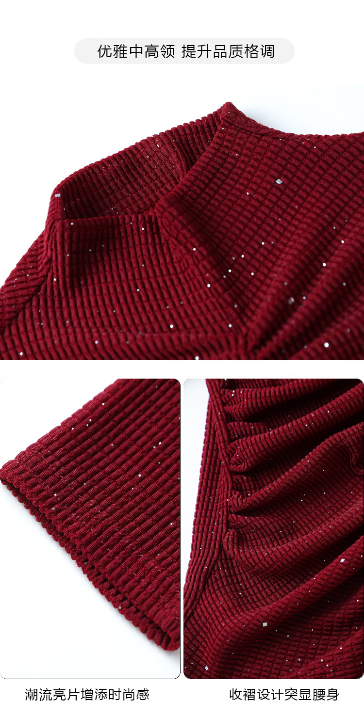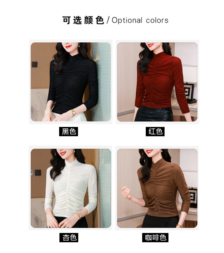 KQL E46M2034亮丝网纱T恤半高领收腰显瘦大码打底衫