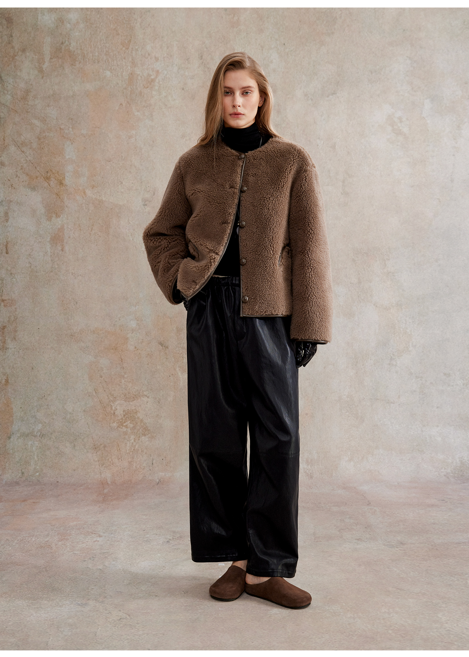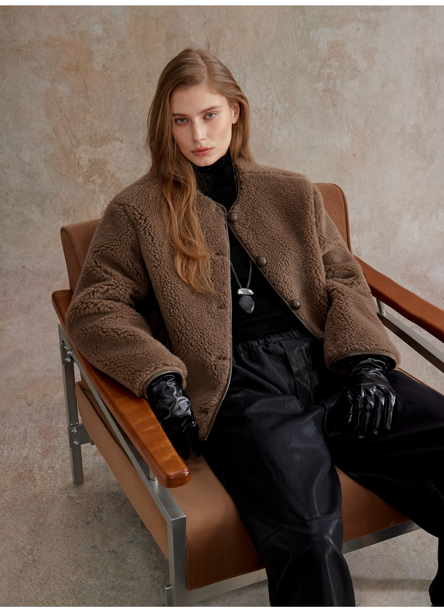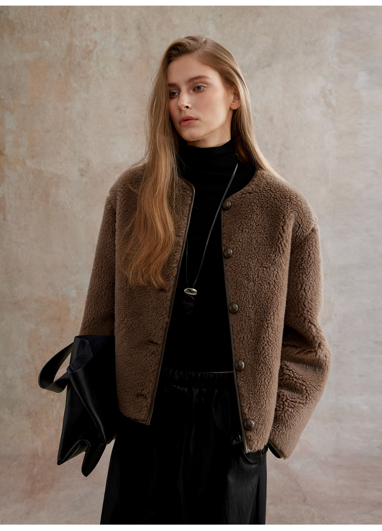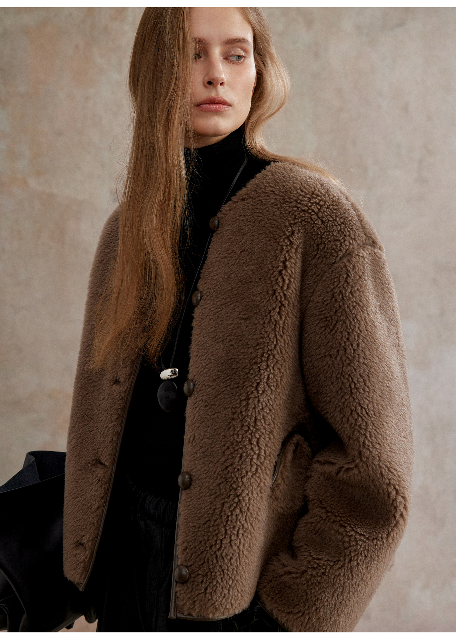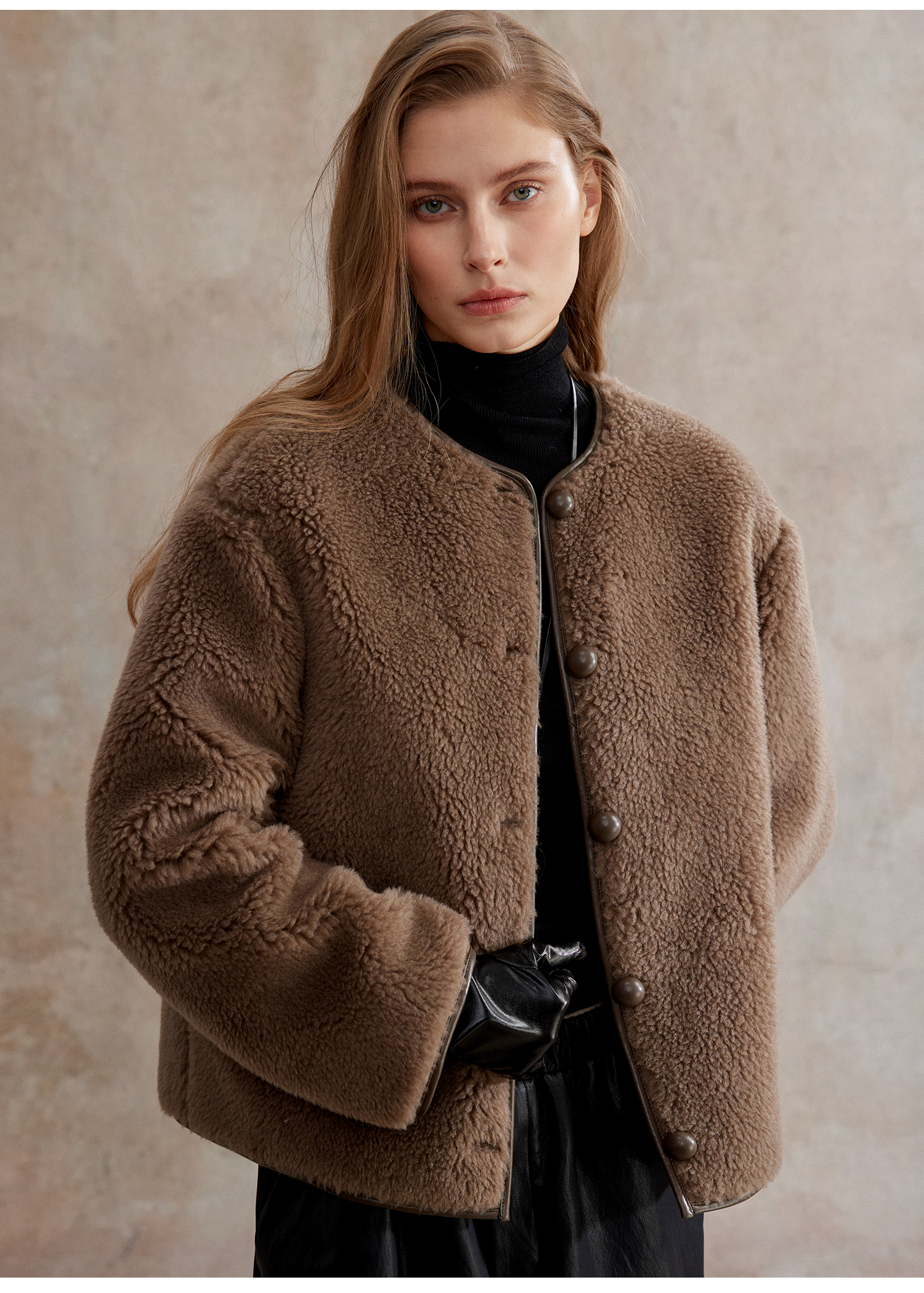 C+IMPRESS西嘉 美丽诺绵羊毛 摩登老钱风短绒环保皮草外套女保暖WT2504075