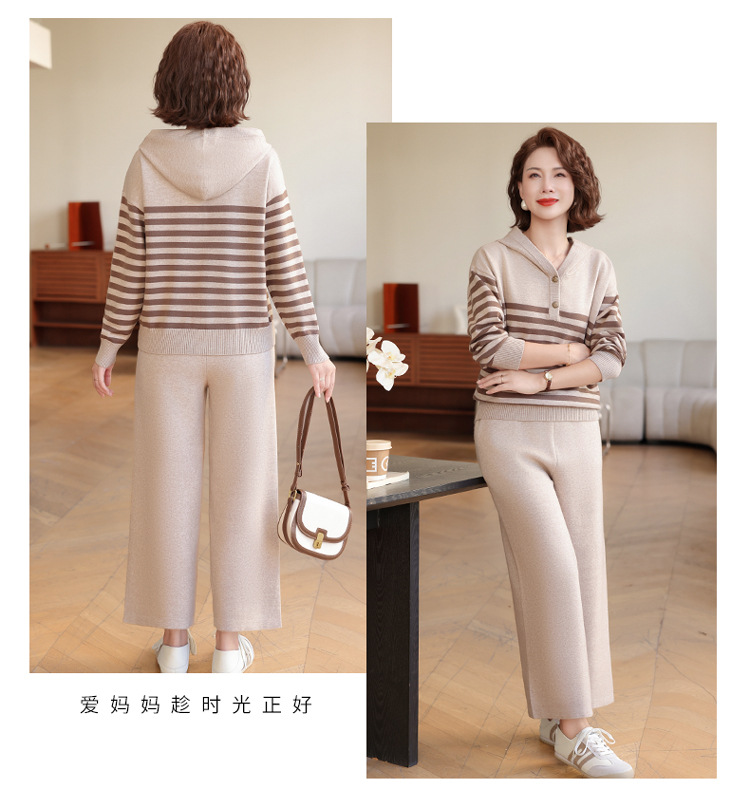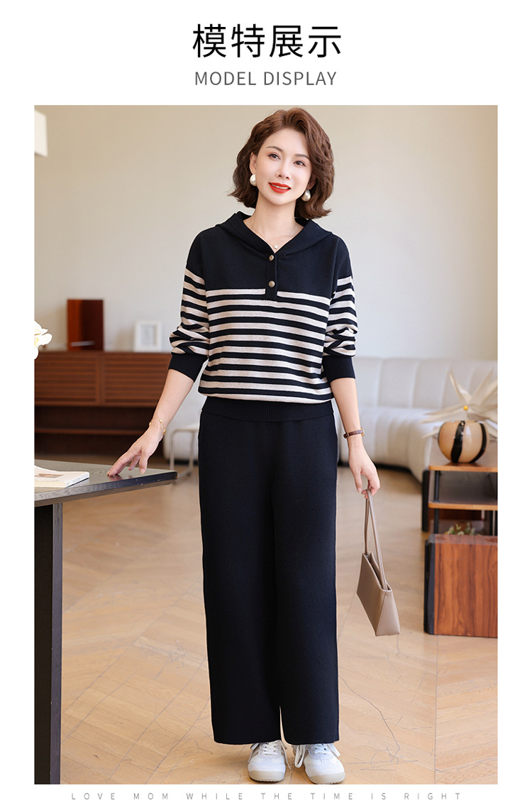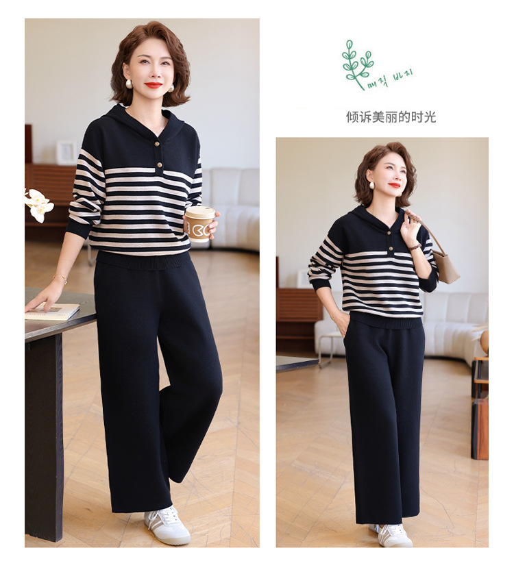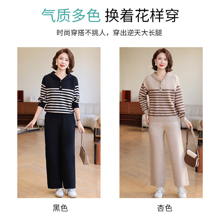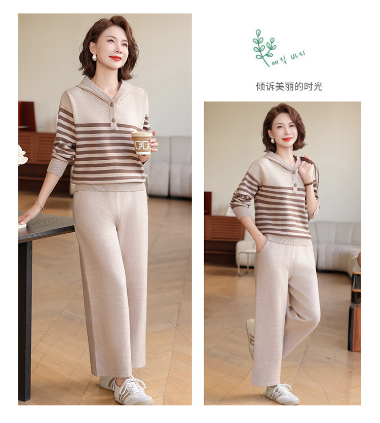 W351-1791套装-165-228妈妈秋装休闲运动服套装2025新款中老年女春秋条纹卫衣洋气针织衫