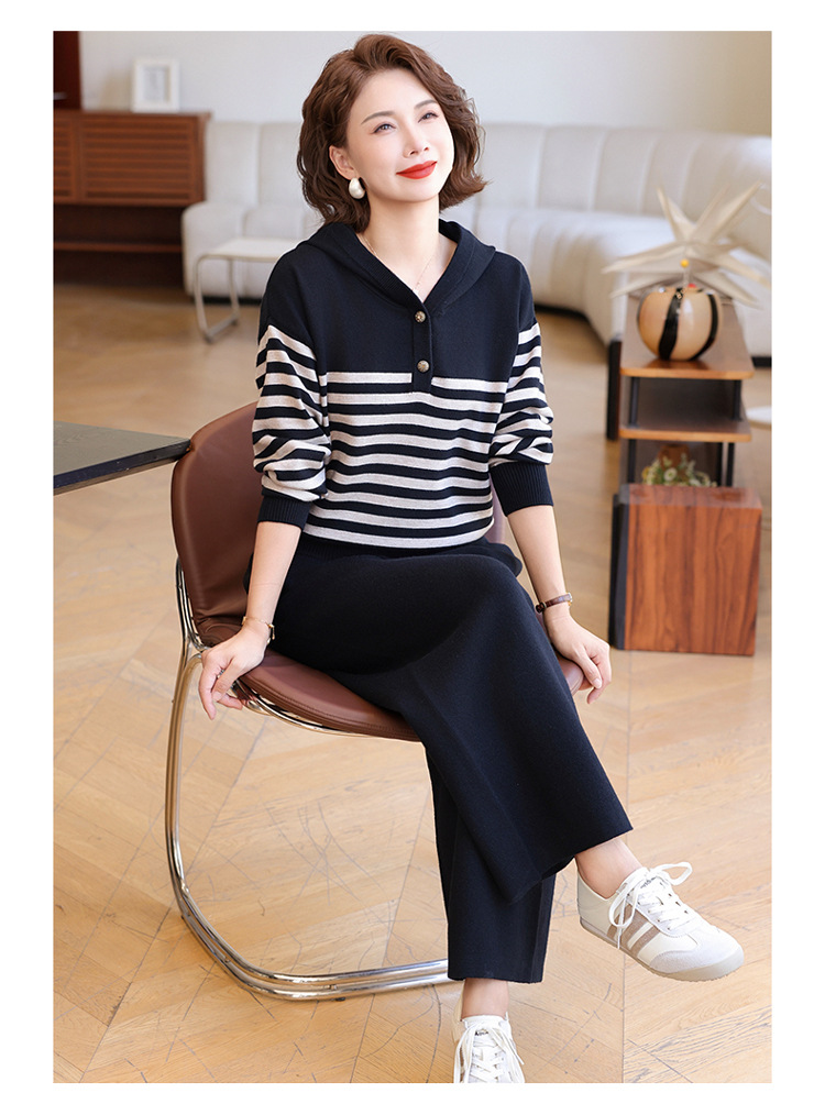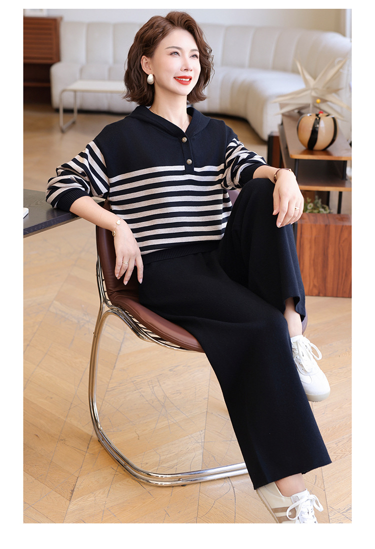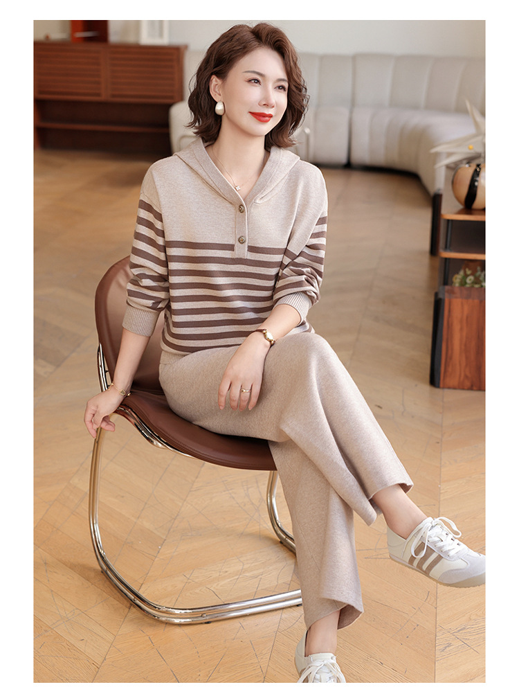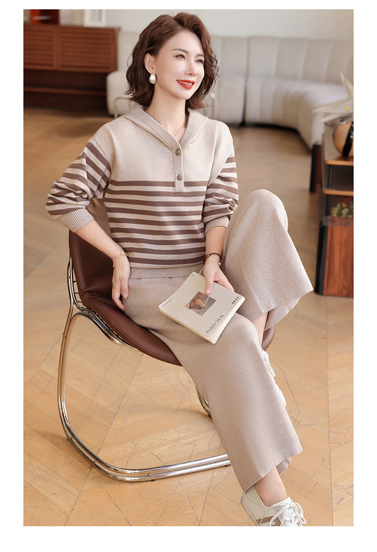 W351-1791套装-165-228妈妈秋装休闲运动服套装2025新款中老年女春秋条纹卫衣洋气针织衫