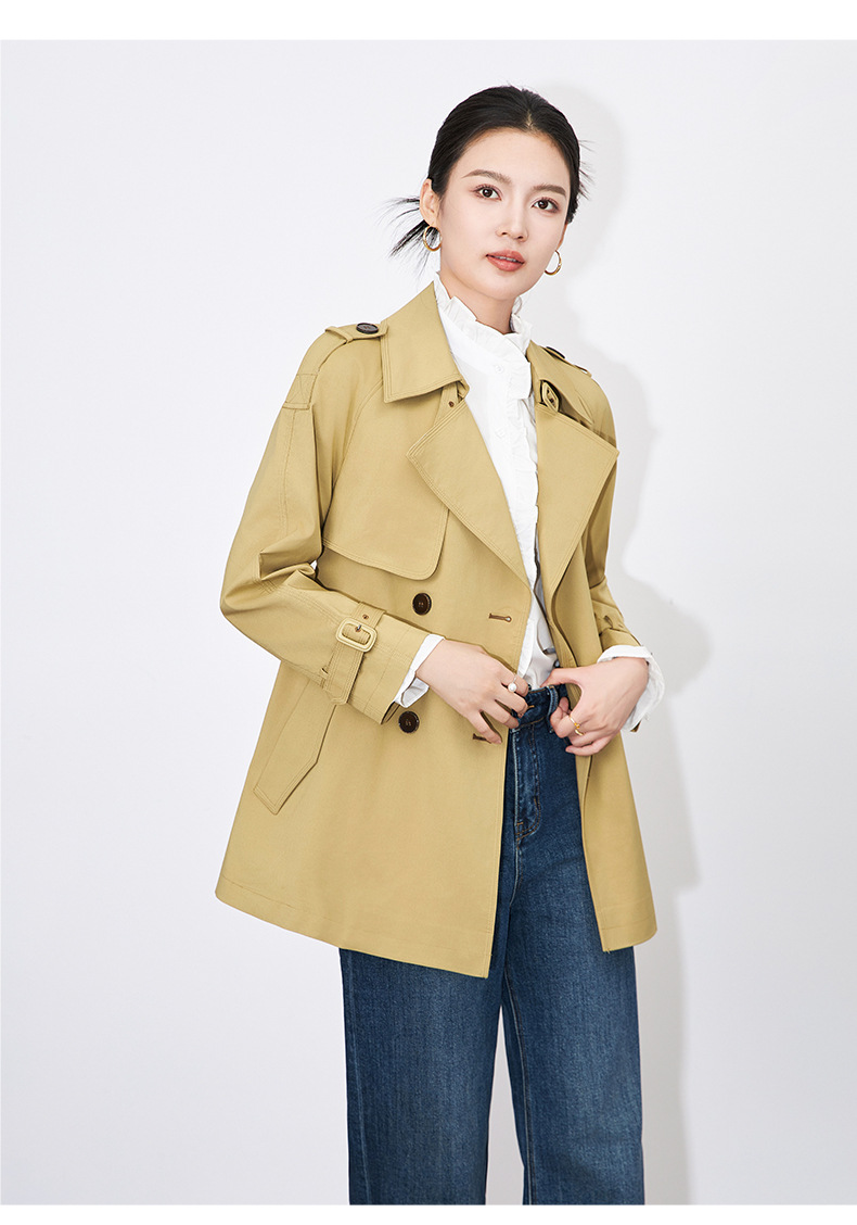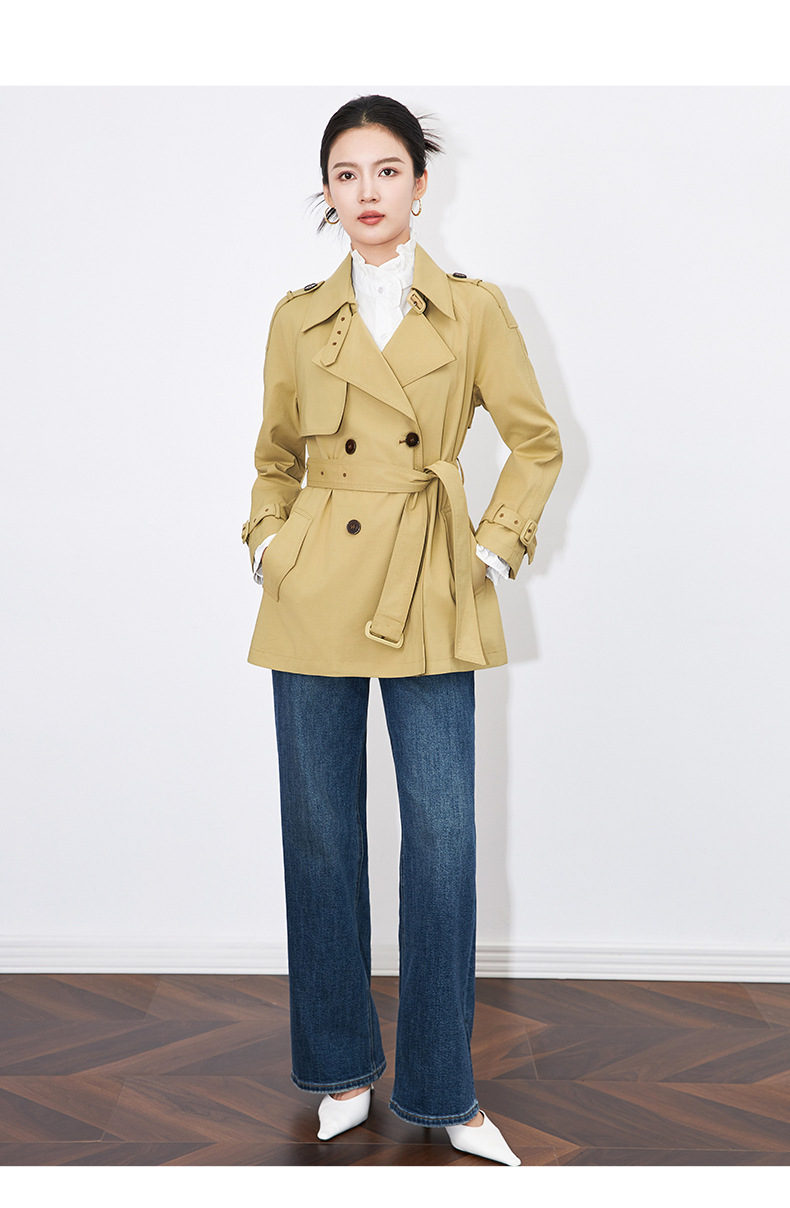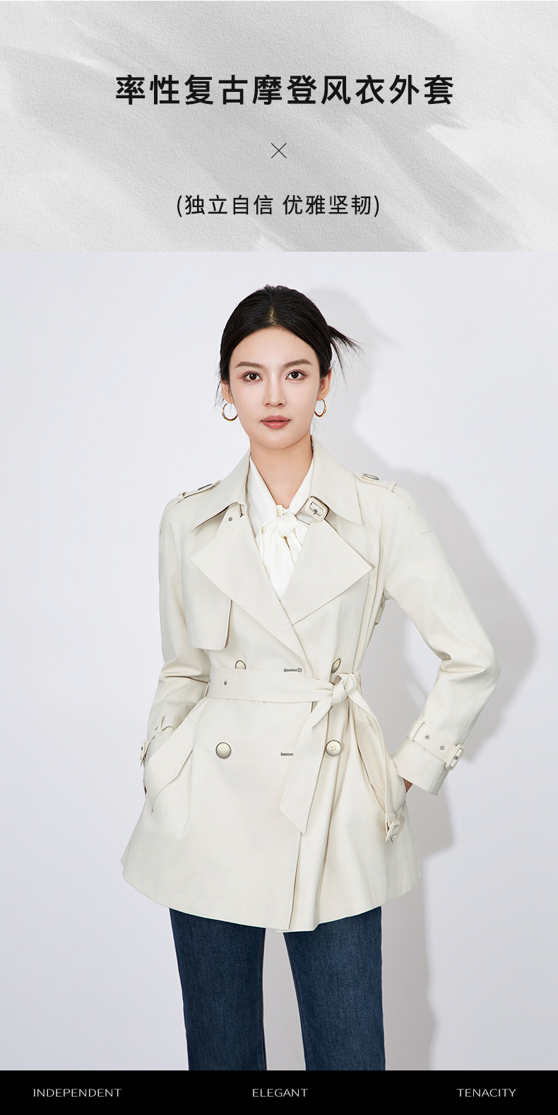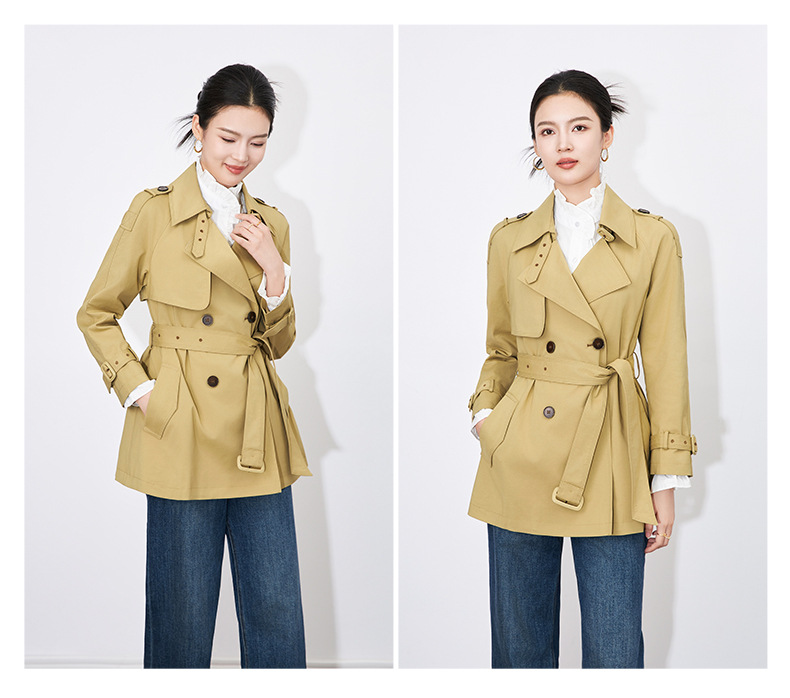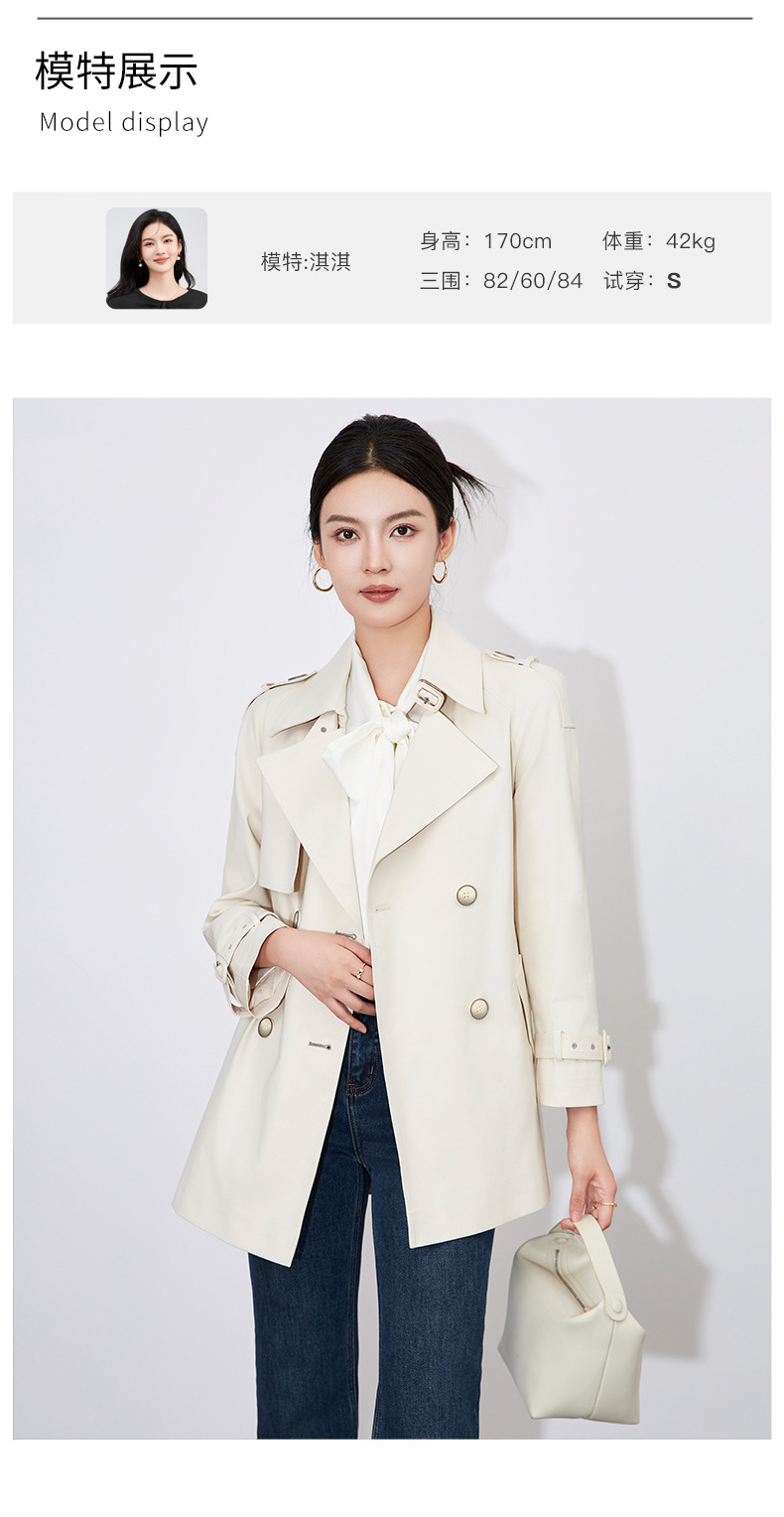 【高货wl】全新升级【铂金会员468/天猫629/差价161】(04829) 洛诗琳时尚通勤翻领系带收腰显瘦长袖短款减龄风衣外套女