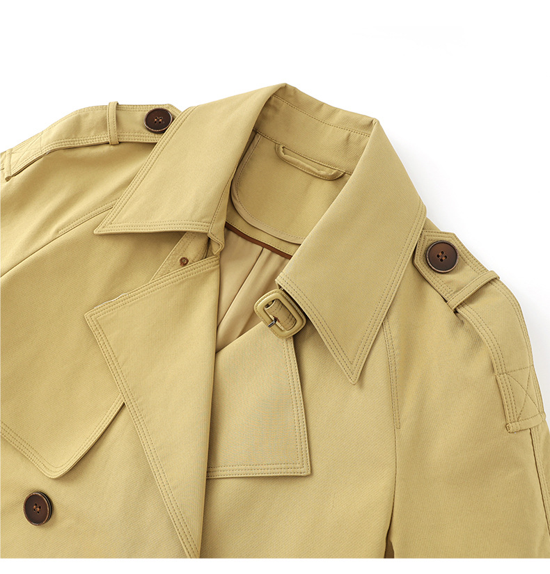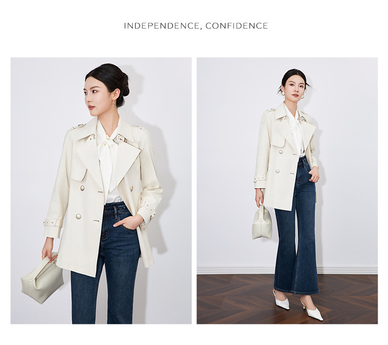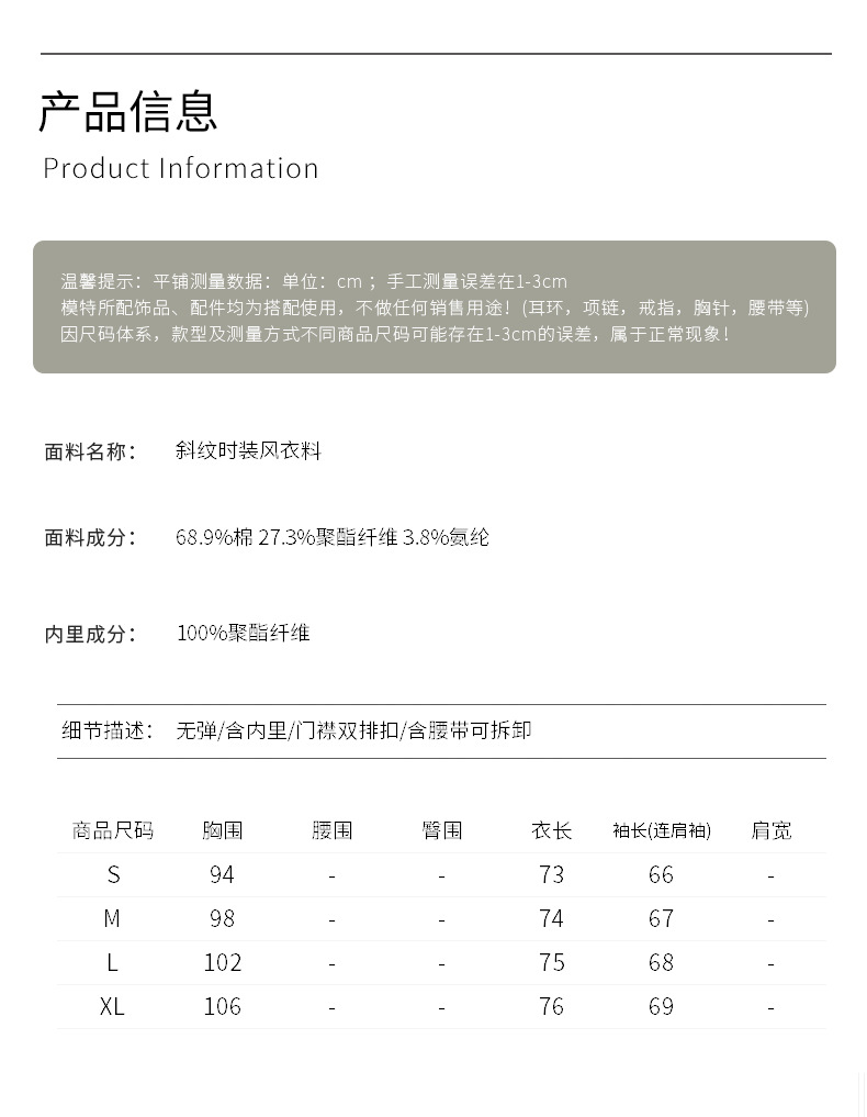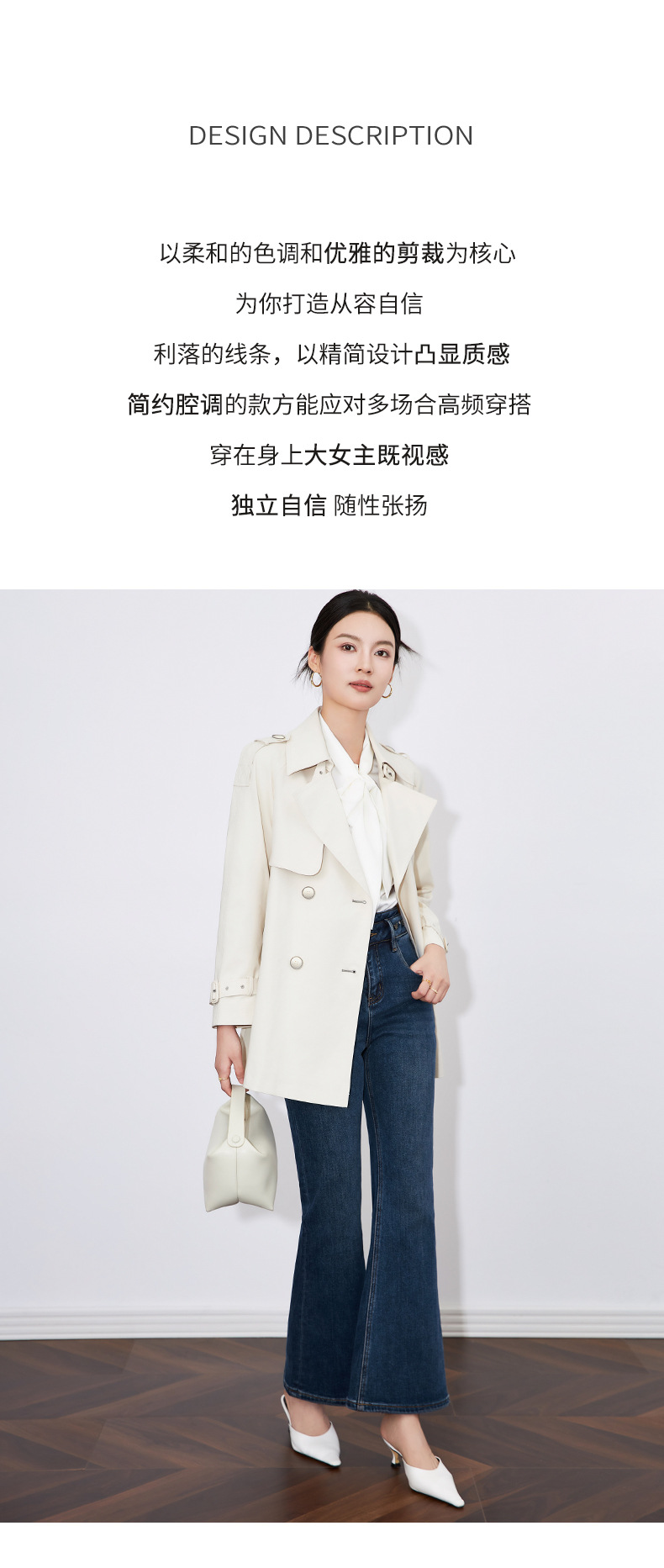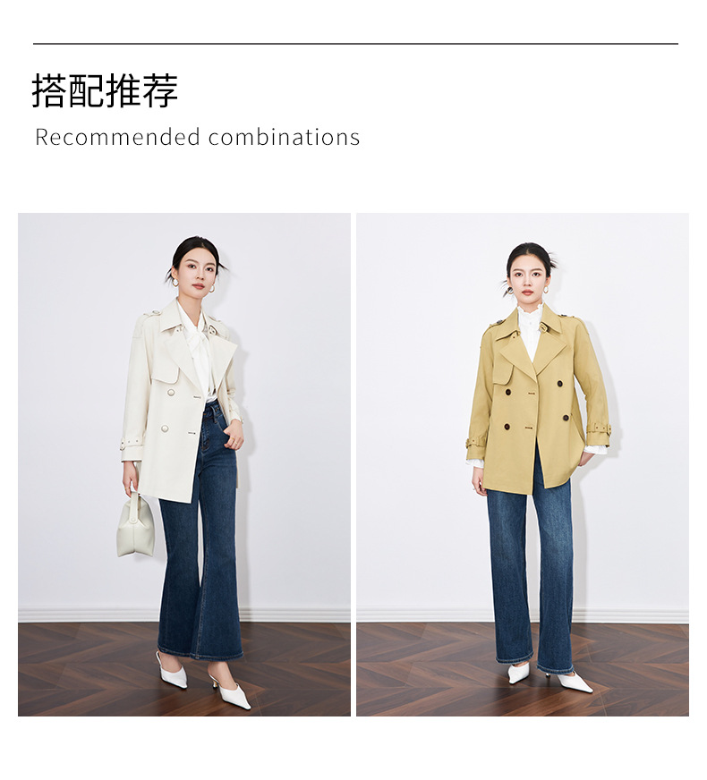 【高货wl】全新升级【铂金会员468/天猫629/差价161】(04829) 洛诗琳时尚通勤翻领系带收腰显瘦长袖短款减龄风衣外套女