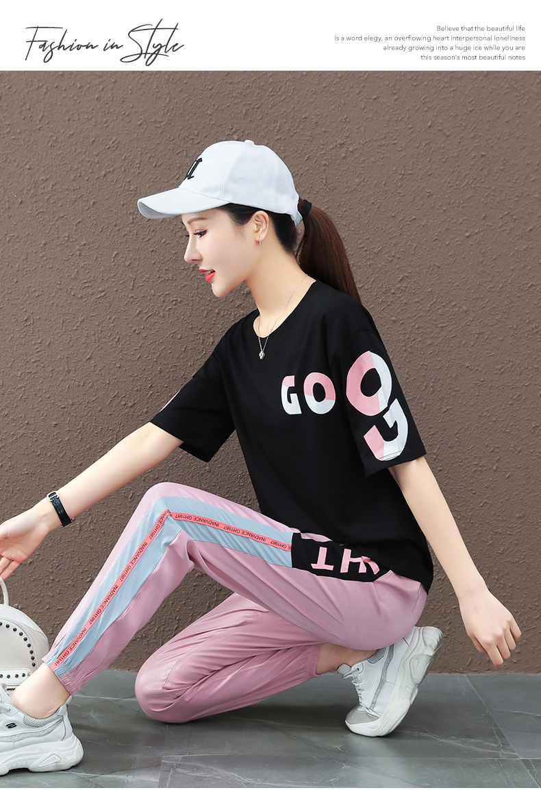 【图荣】运动服套装女2022新款春夏季薄款短袖炸街曳舞跑步时尚休闲两件套