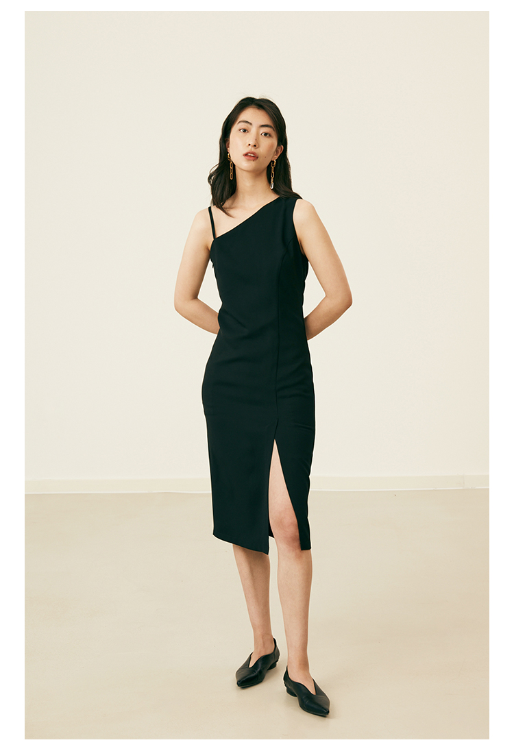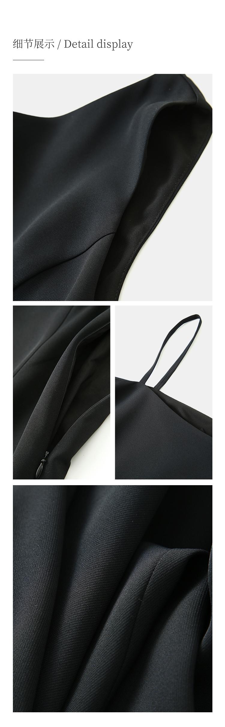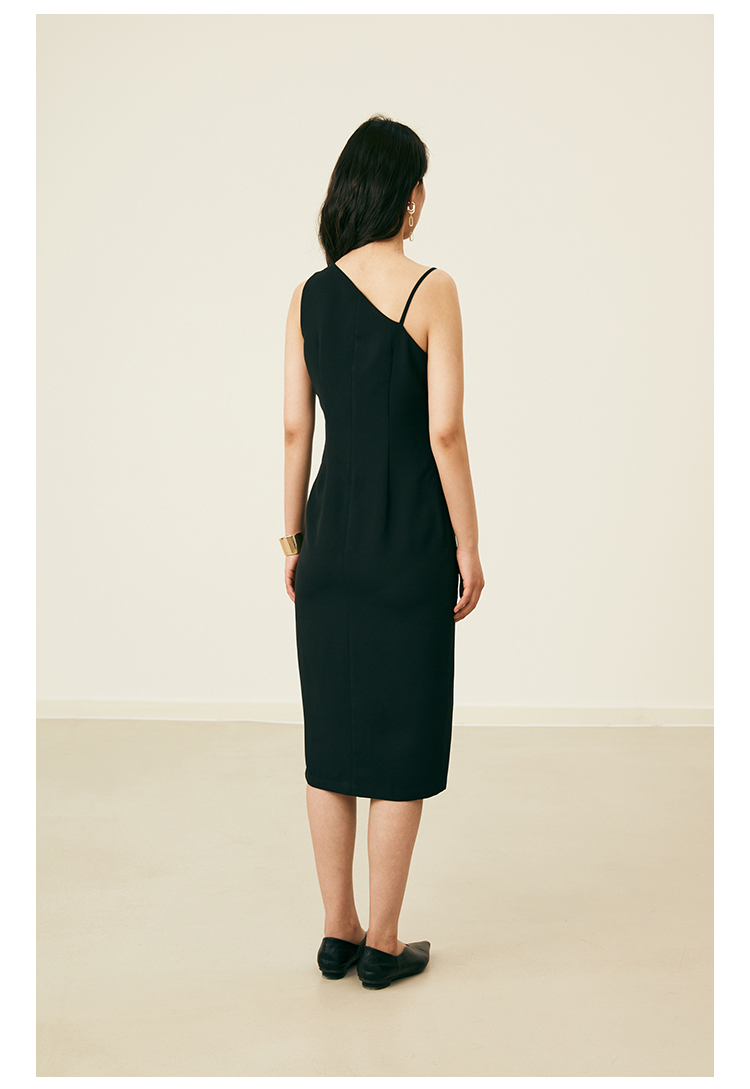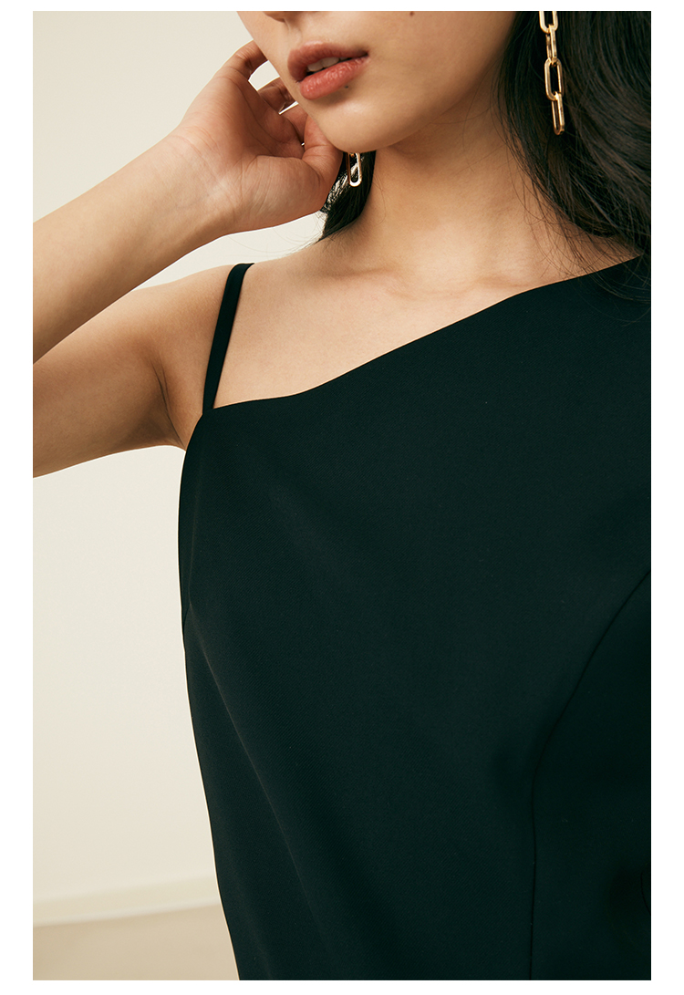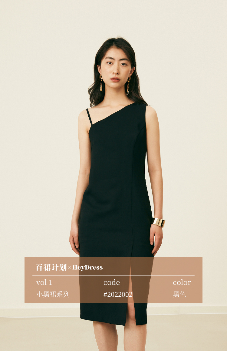 HeyDress黑色吊带连衣裙女夏季垂感斜领设计感小黑裙气质小众裙子