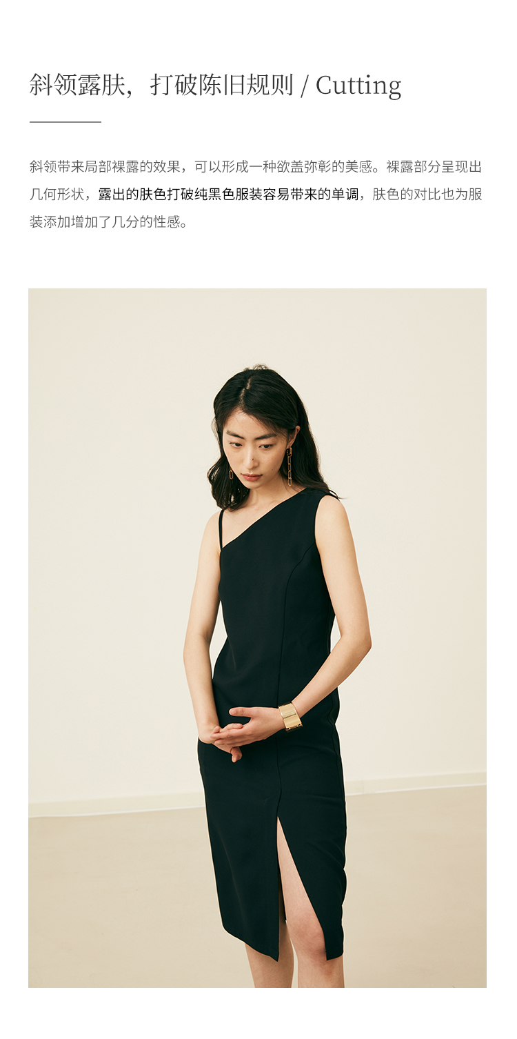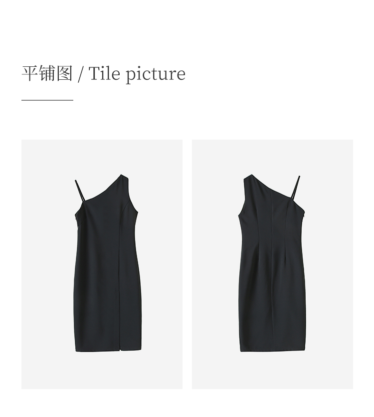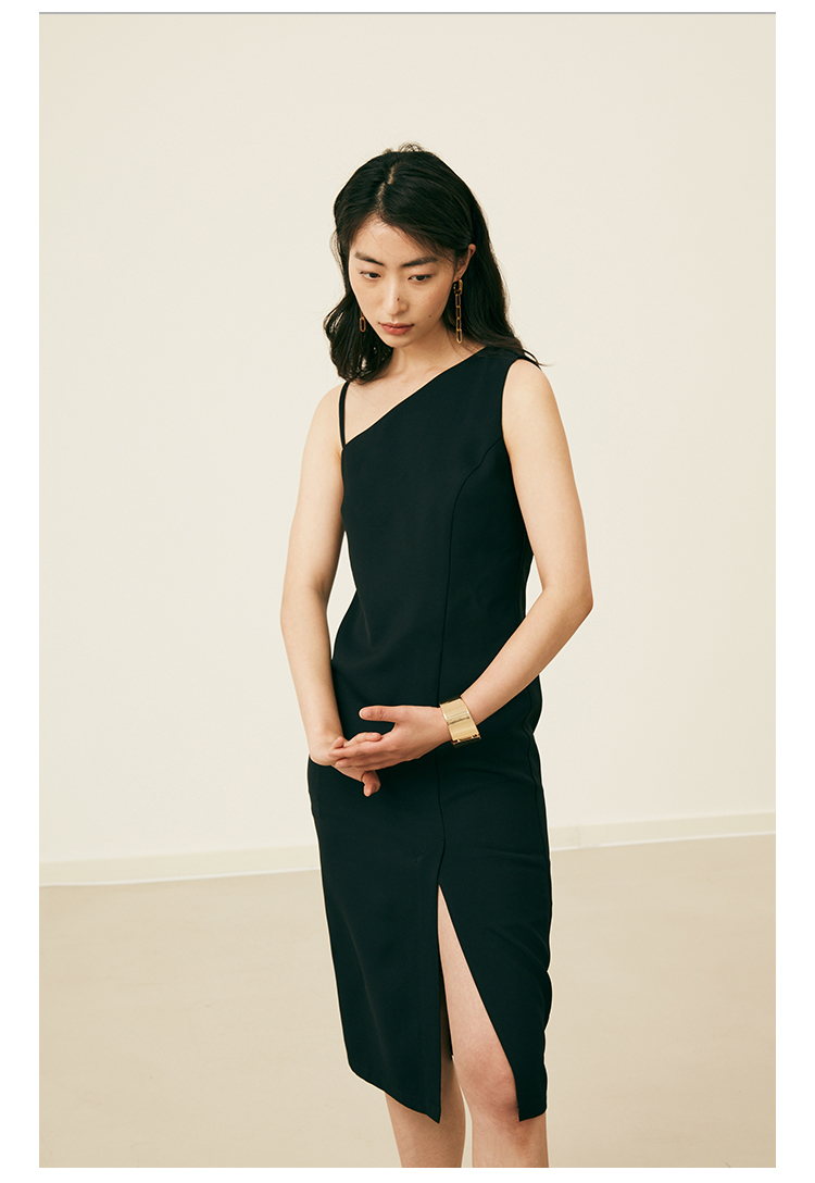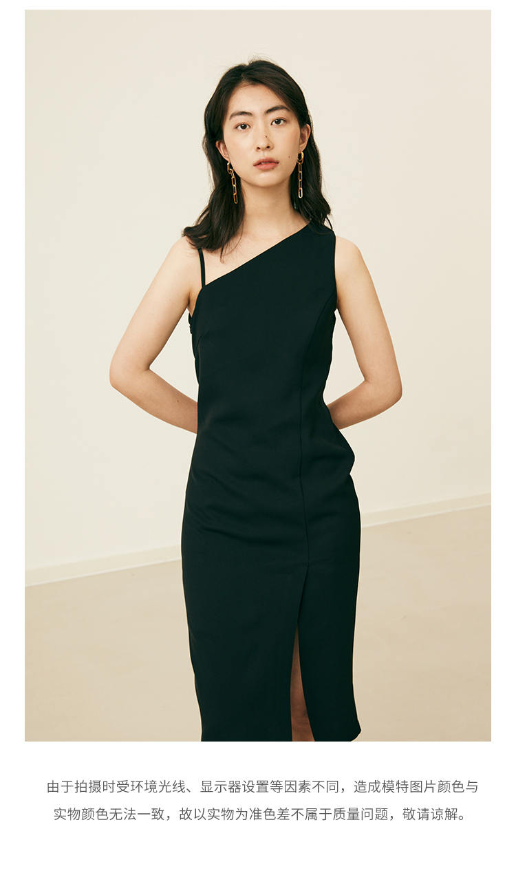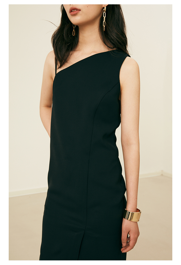 HeyDress黑色吊带连衣裙女夏季垂感斜领设计感小黑裙气质小众裙子