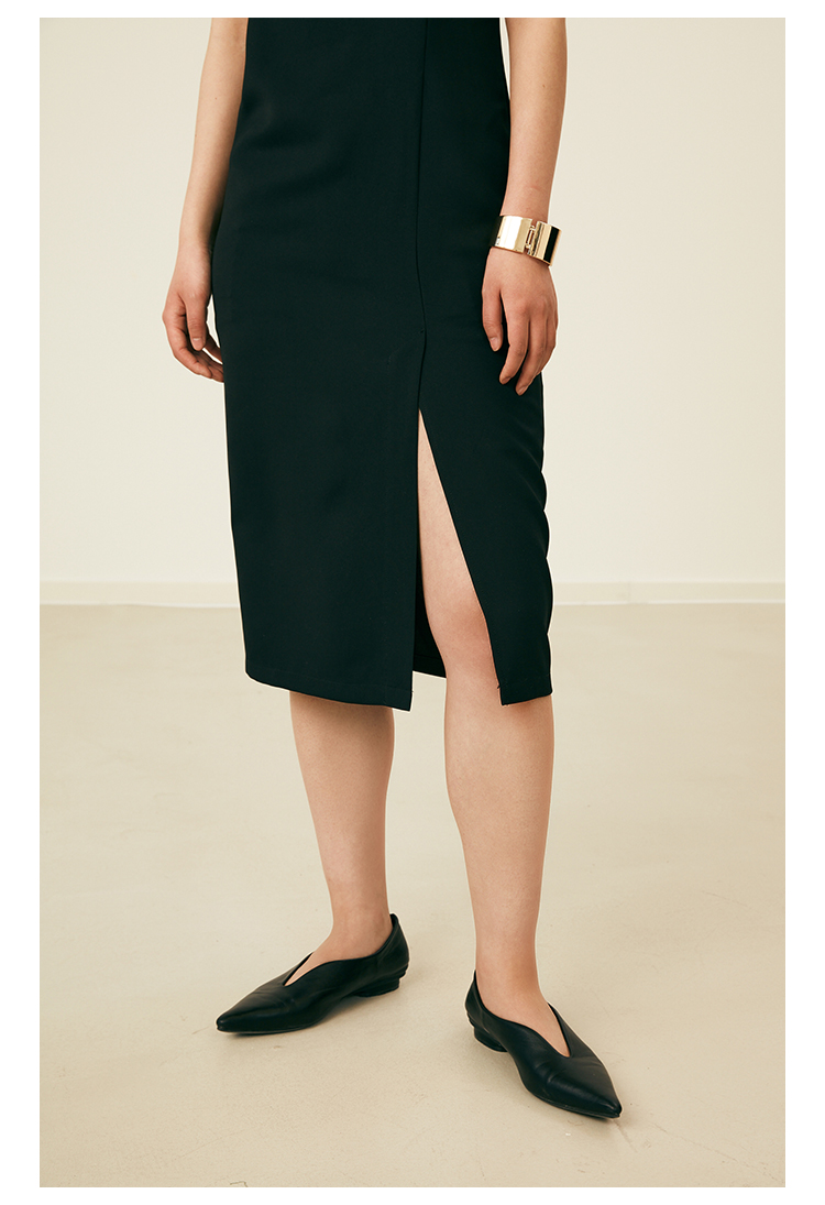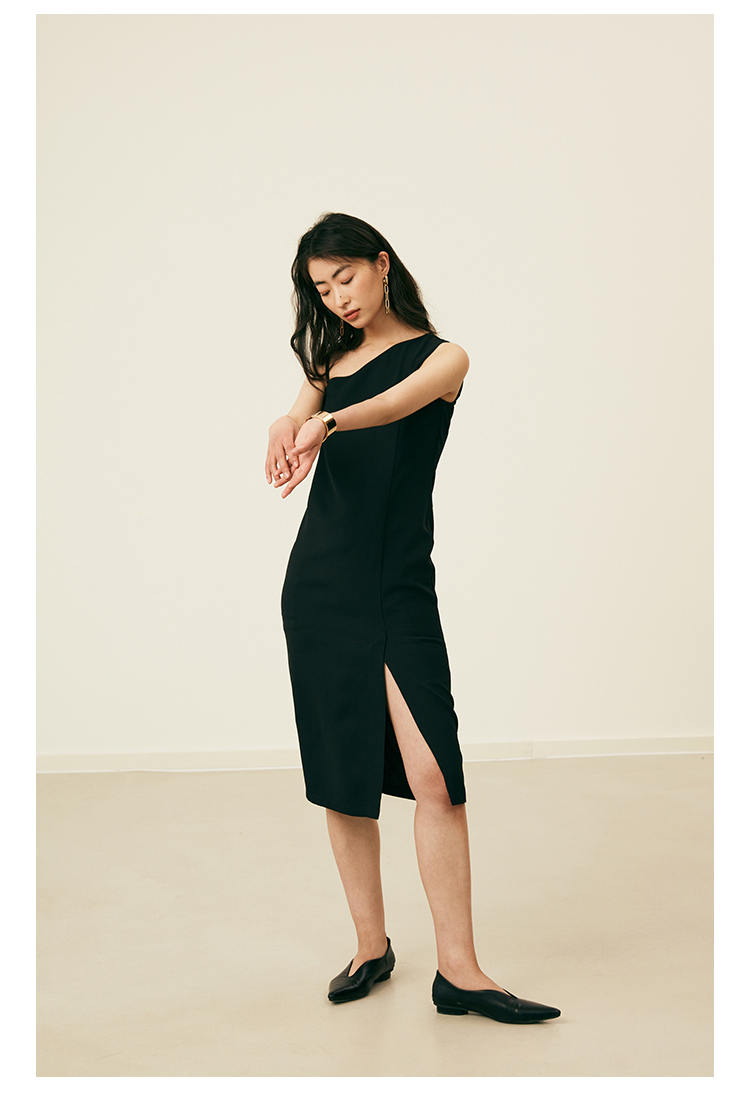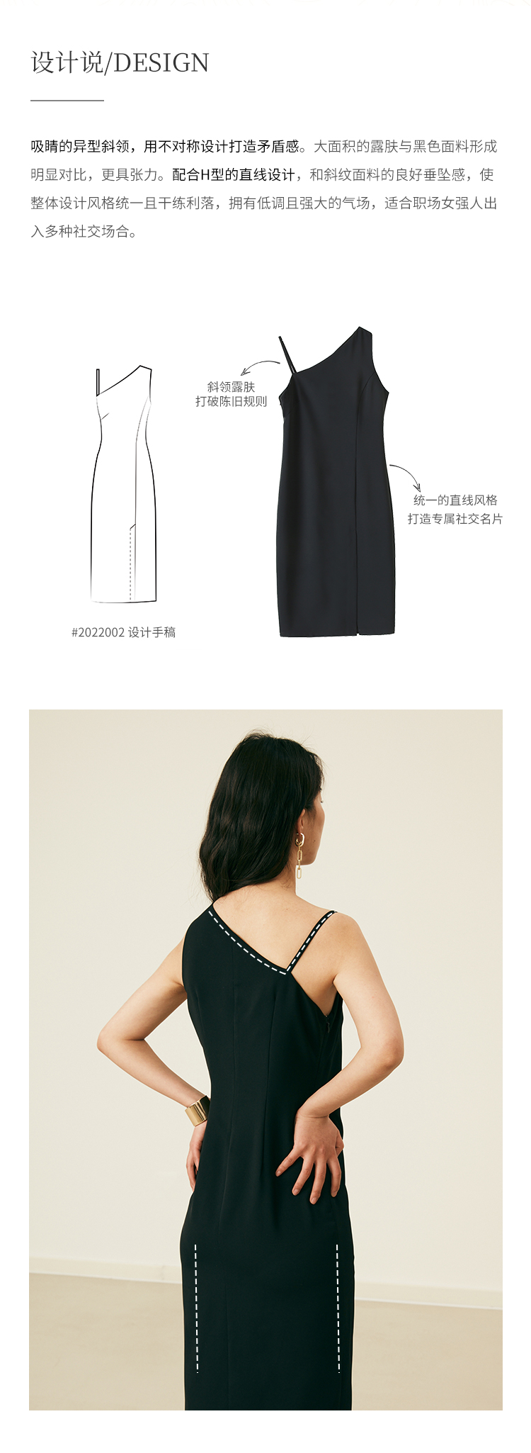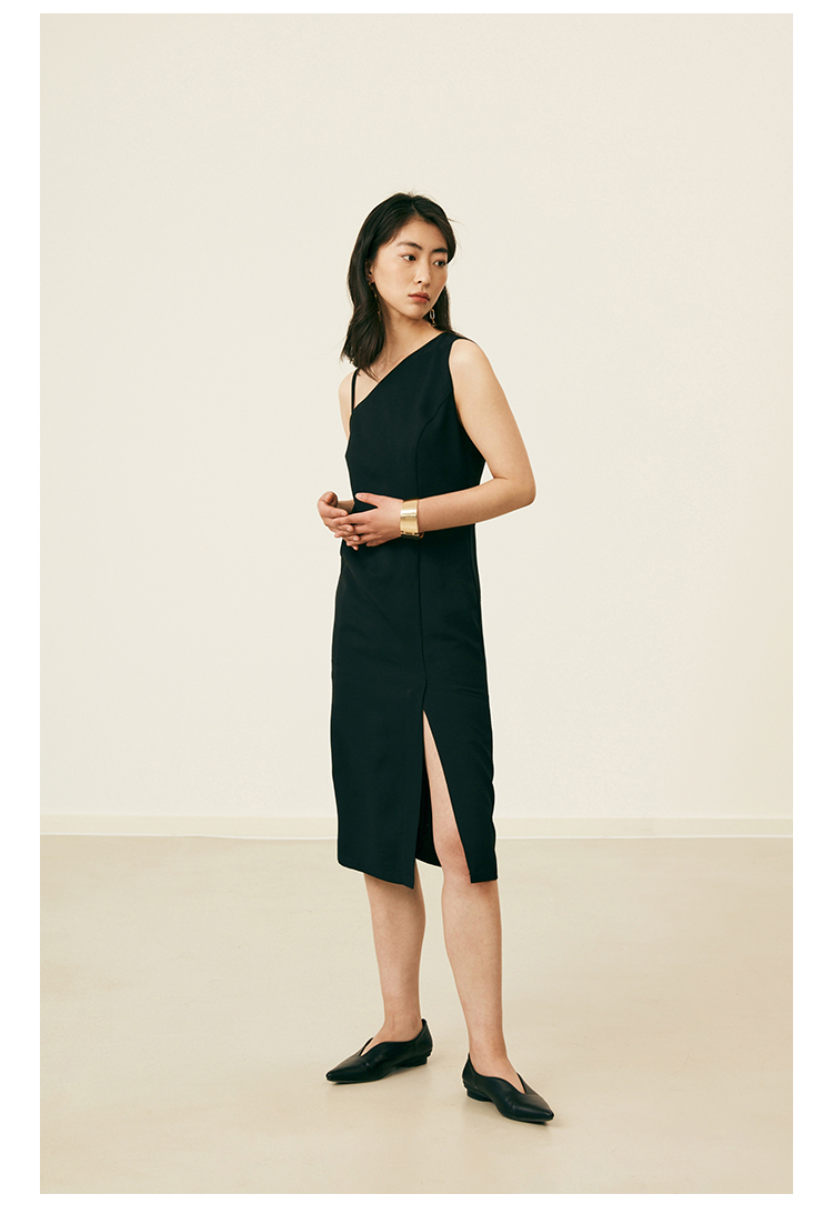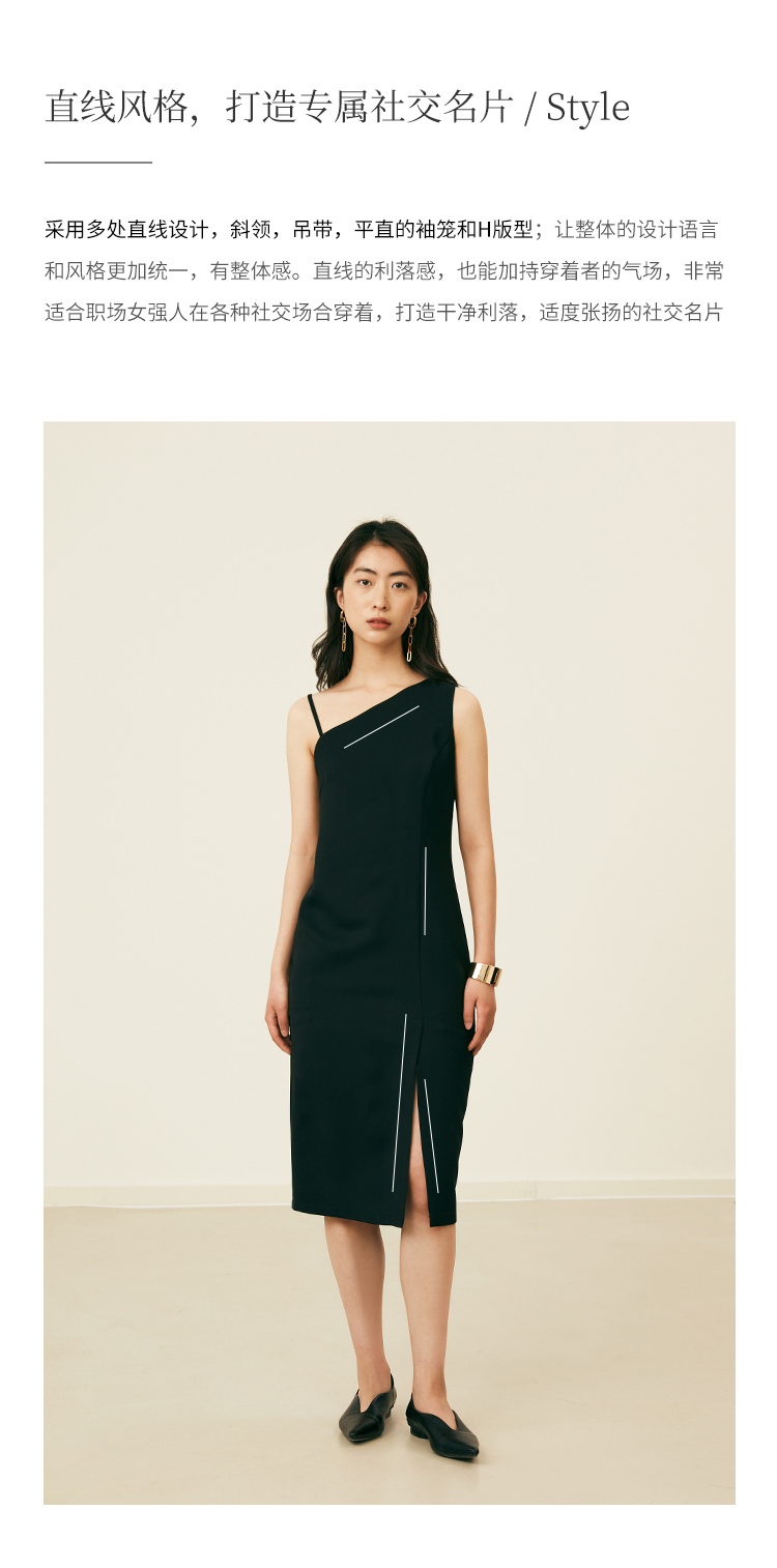 HeyDress黑色吊带连衣裙女夏季垂感斜领设计感小黑裙气质小众裙子