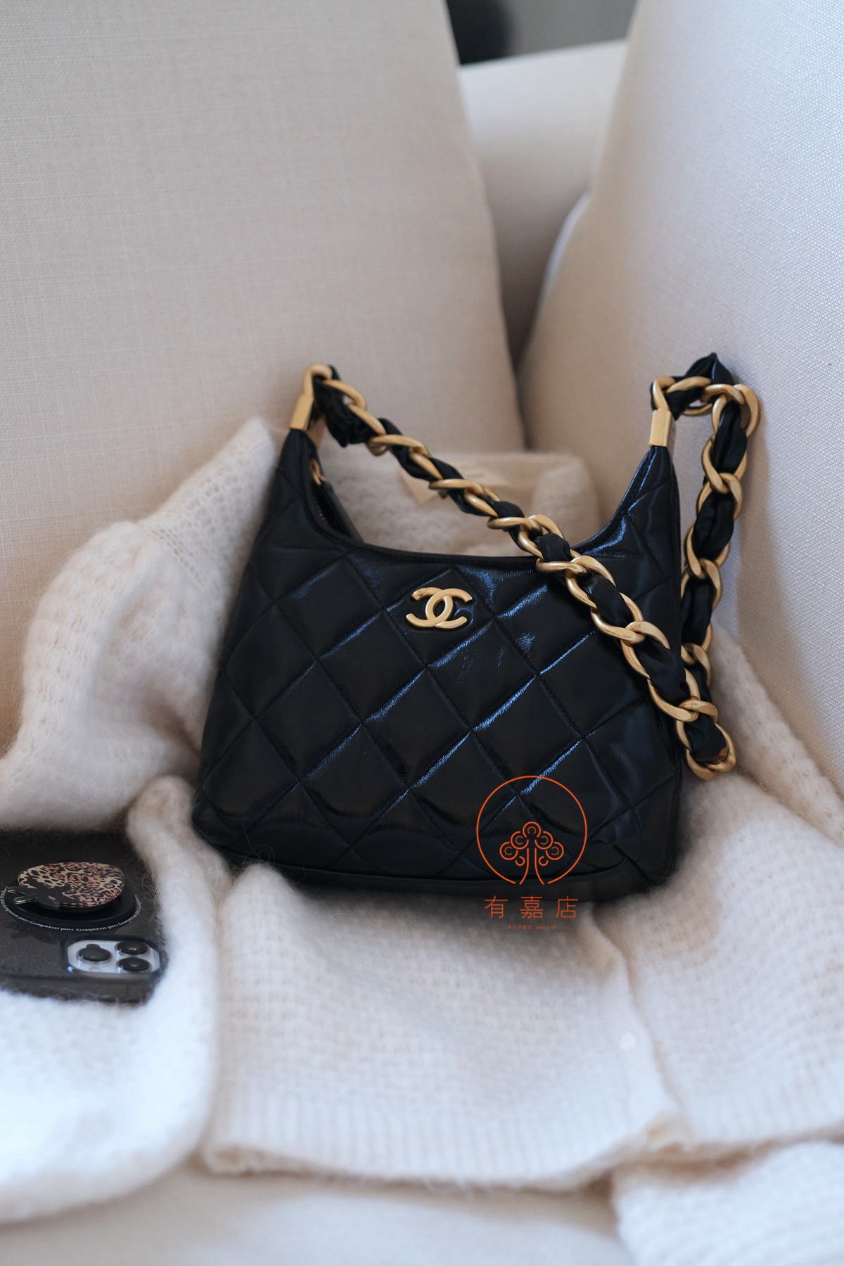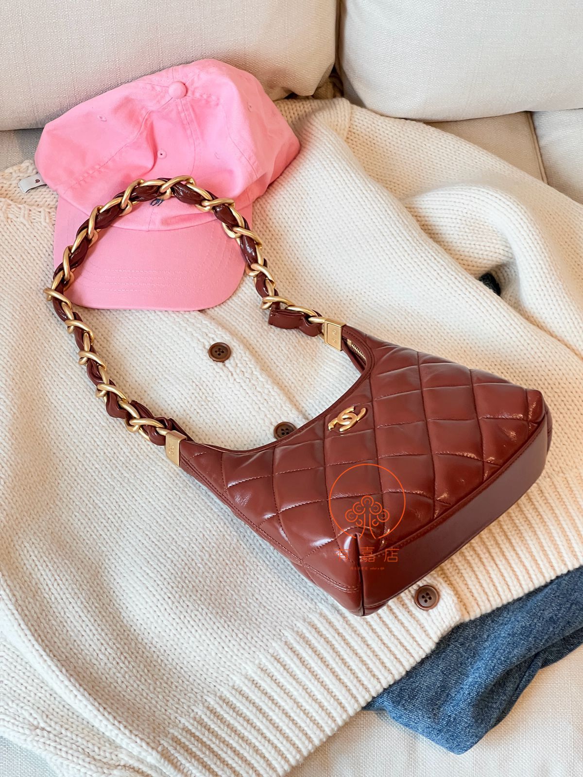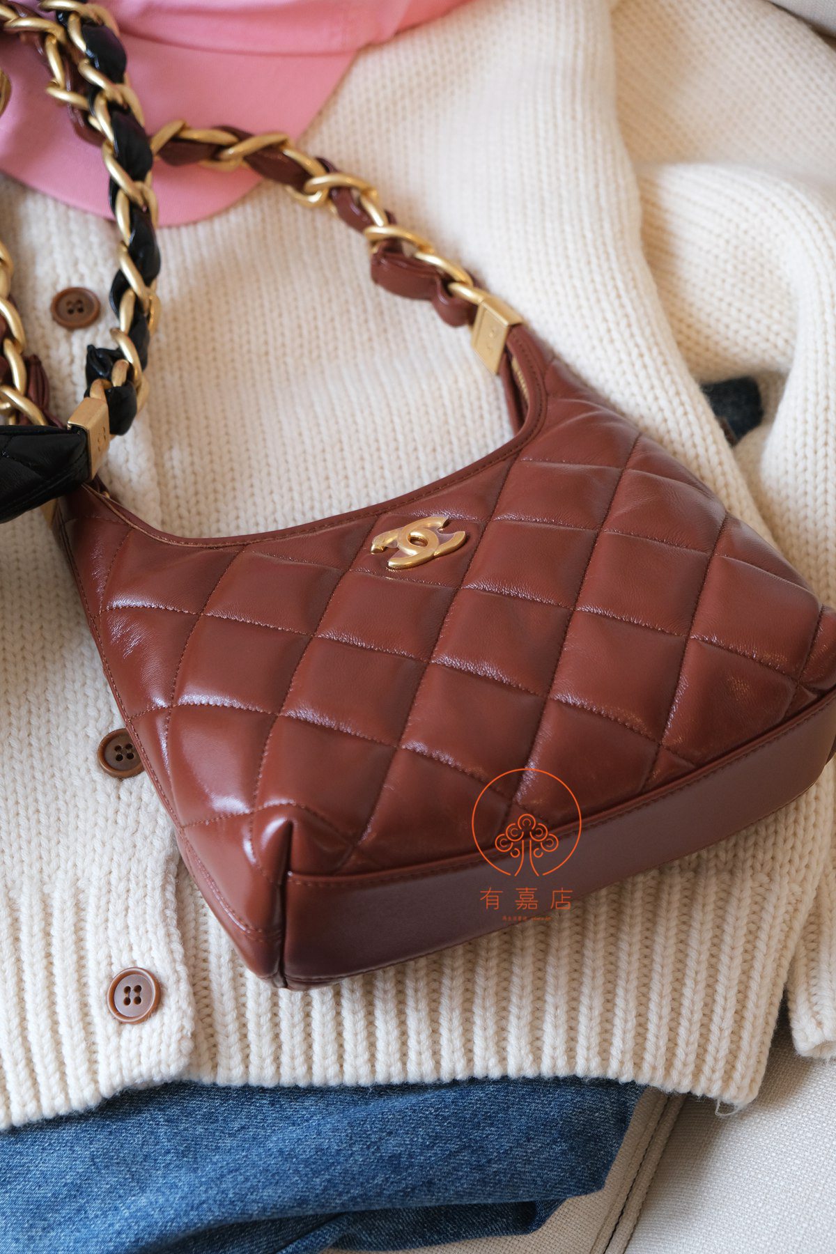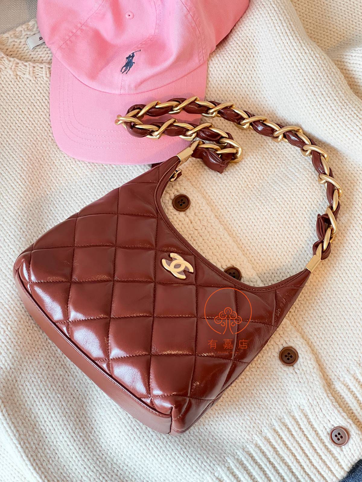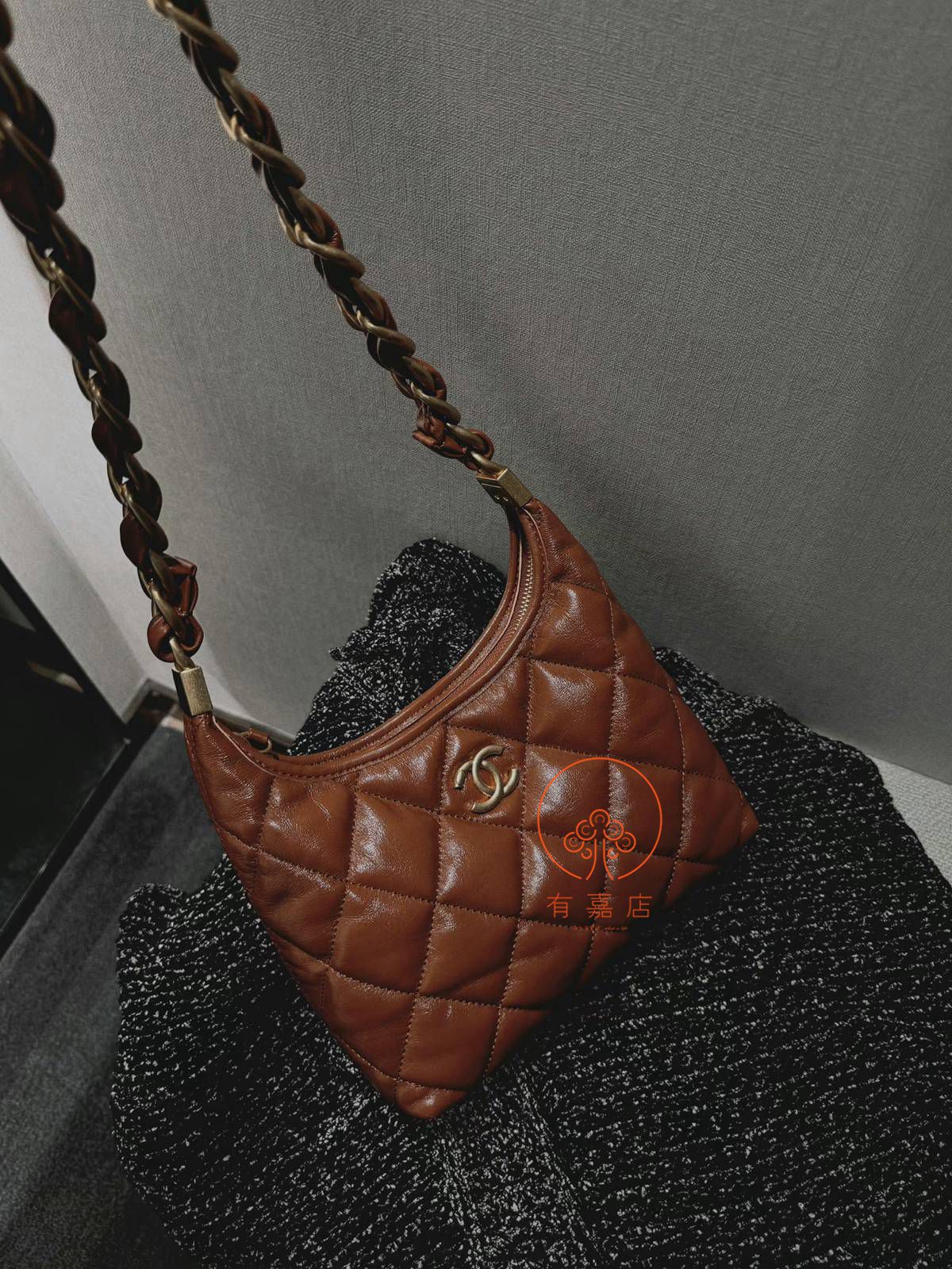 小香24A hobo扭花粗链条包。全原。大大方方背进专柜,随意360度细节对比即可。