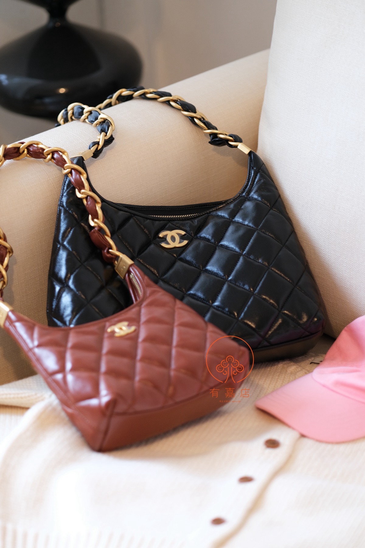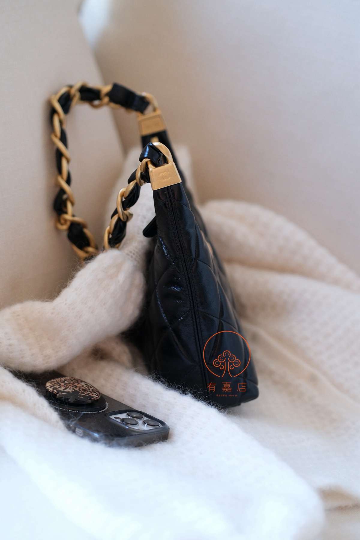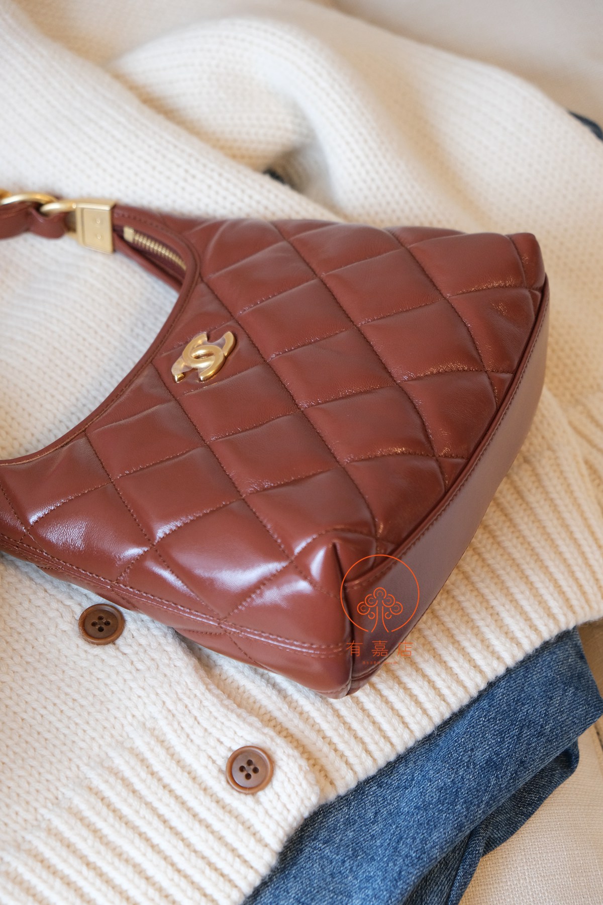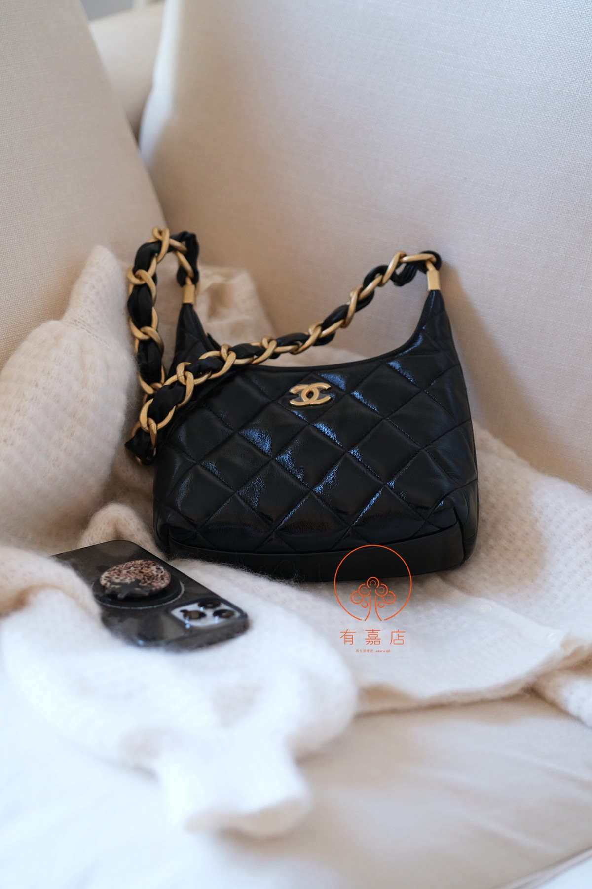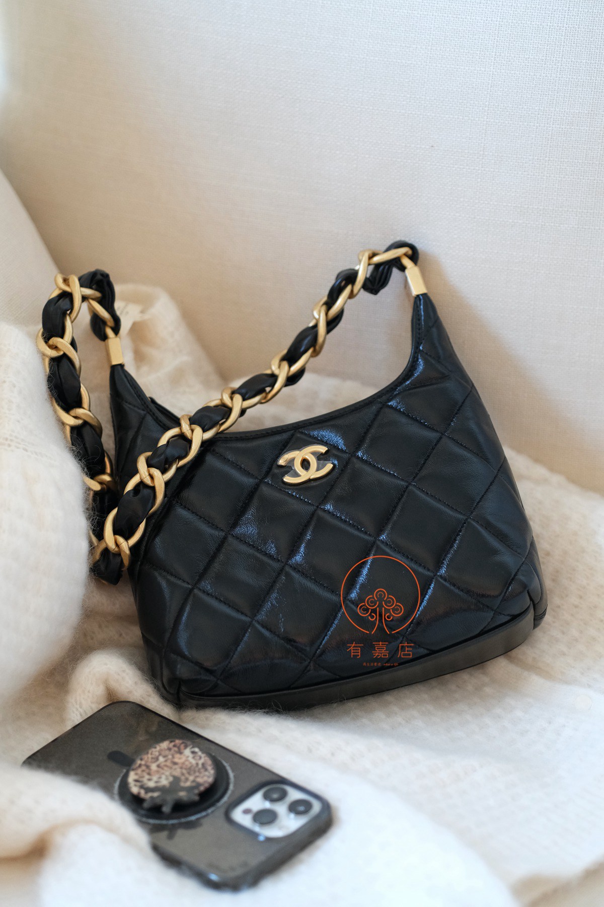 小香24A hobo扭花粗链条包。全原。大大方方背进专柜,随意360度细节对比即可。