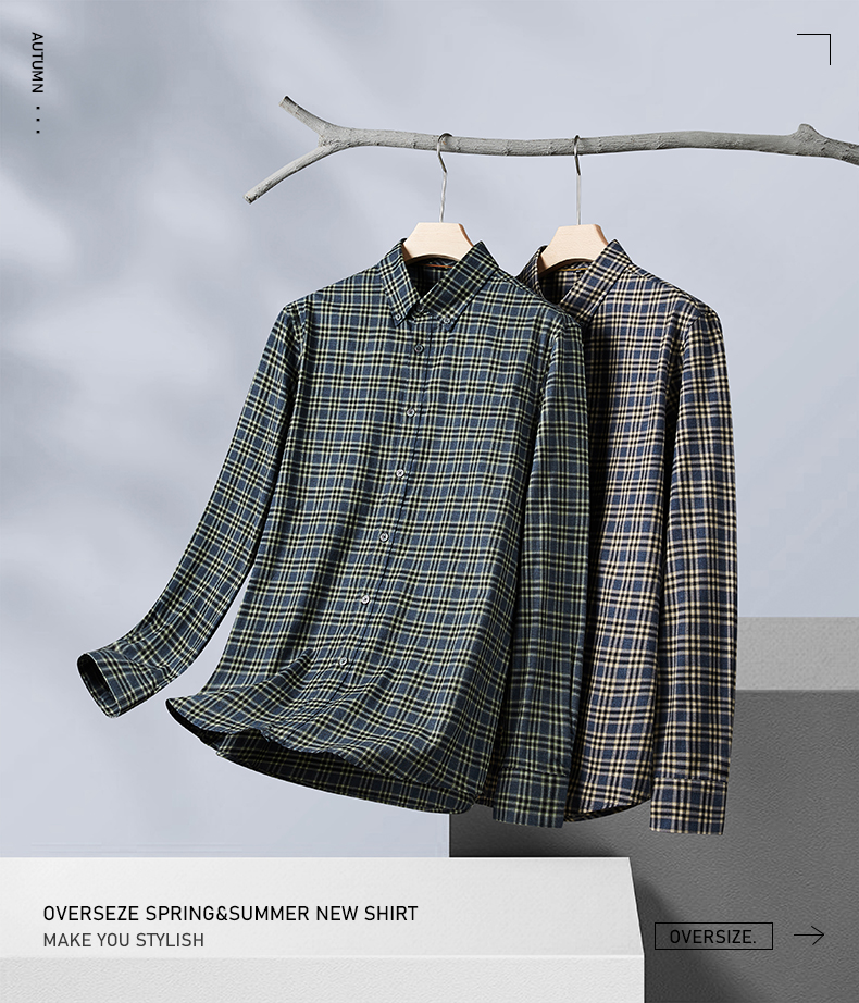 【100%棉】【新款DM】大依优型大码纯棉磨毛格子长袖衬衫男宽松加肥加大码男士休闲商务衬衣上衣胖子