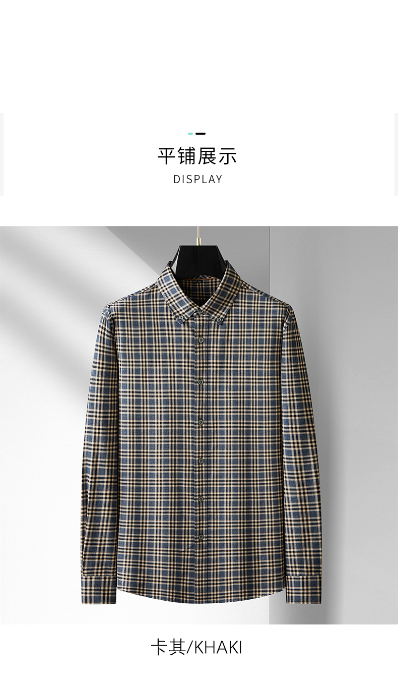 【100%棉】【新款DM】大依优型大码纯棉磨毛格子长袖衬衫男宽松加肥加大码男士休闲商务衬衣上衣胖子 商品图11
