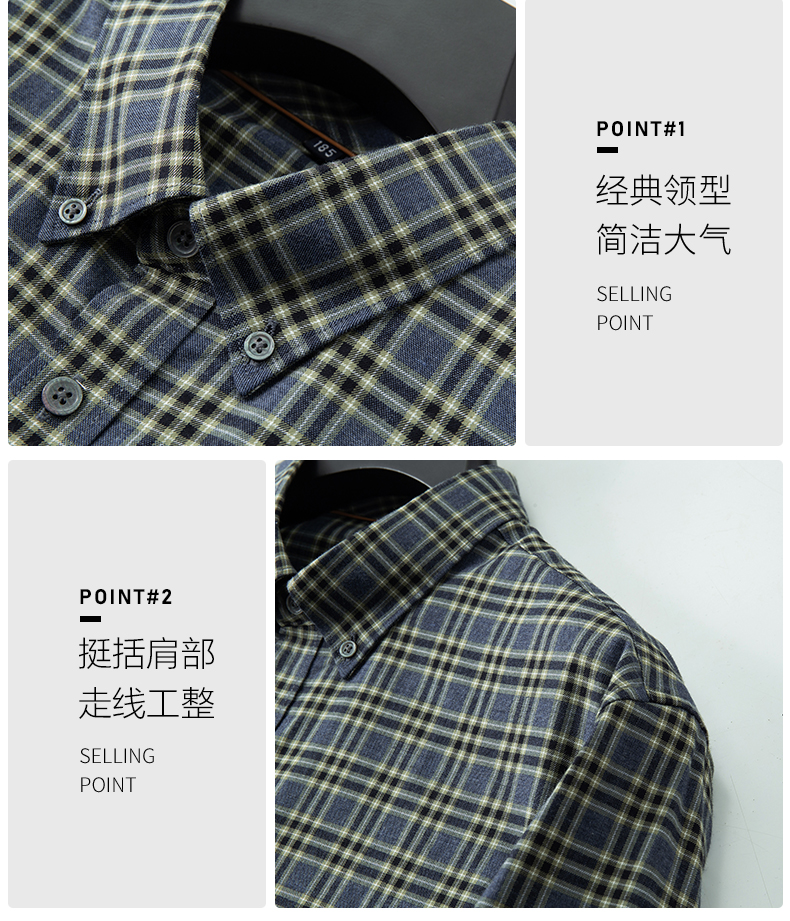【100%棉】【新款DM】大依优型大码纯棉磨毛格子长袖衬衫男宽松加肥加大码男士休闲商务衬衣上衣胖子 商品图10