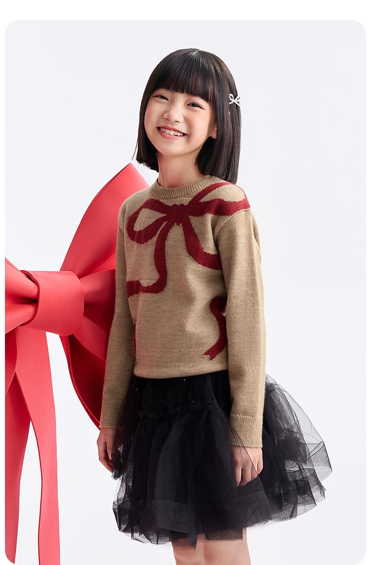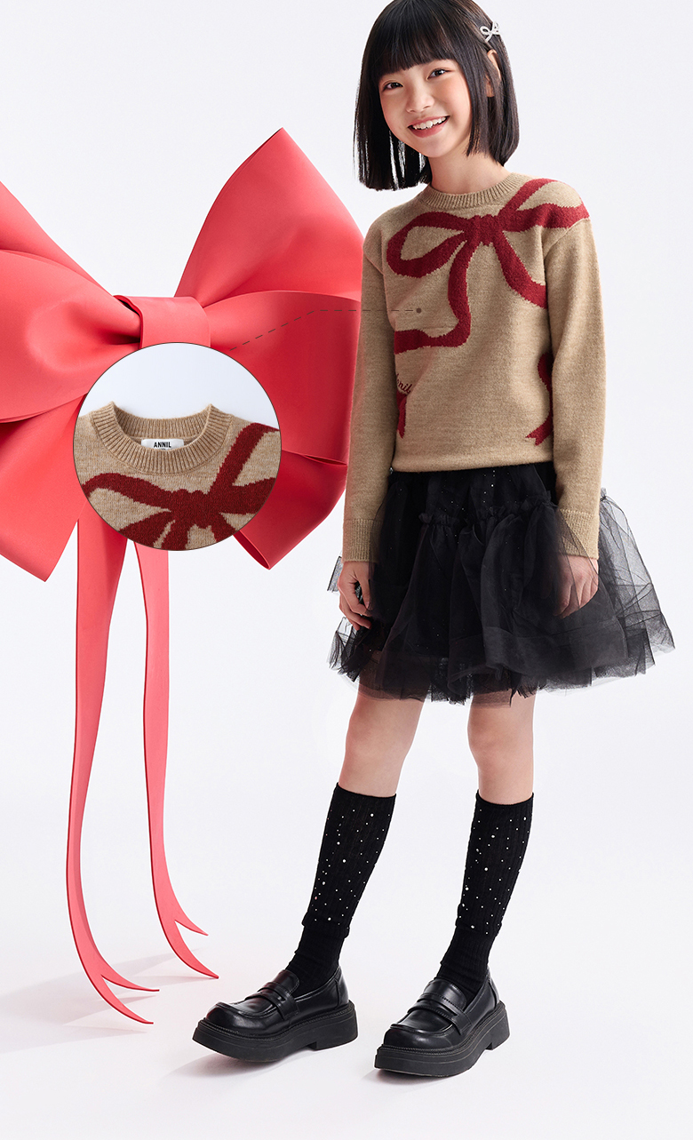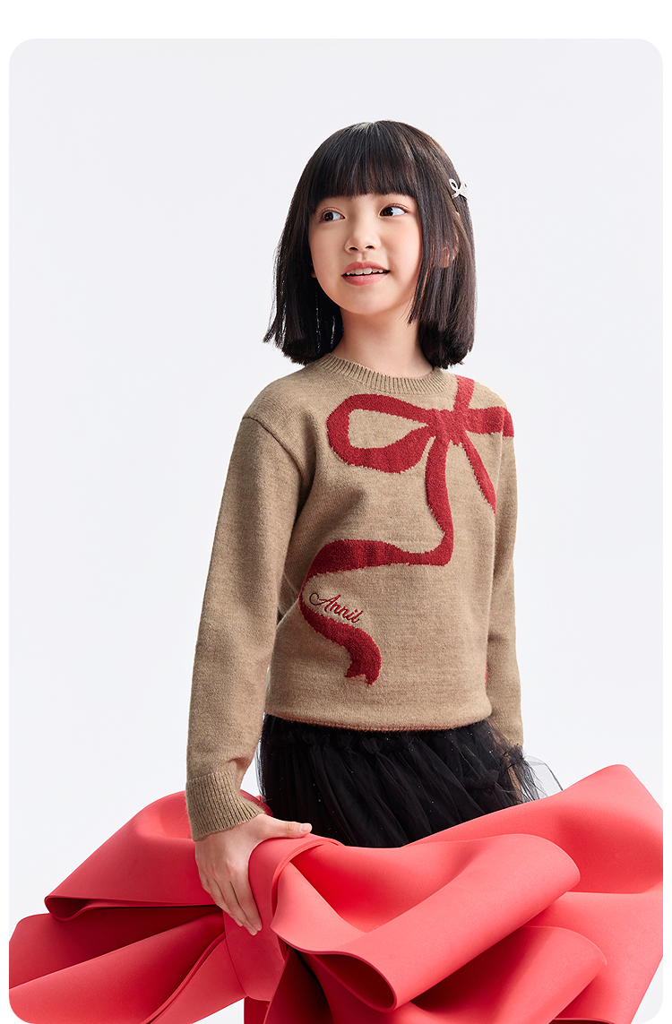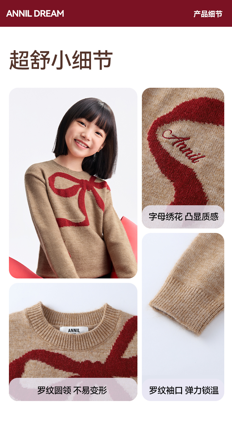 女童圆领长袖针织衫冬季新款安奈儿童装EG544634