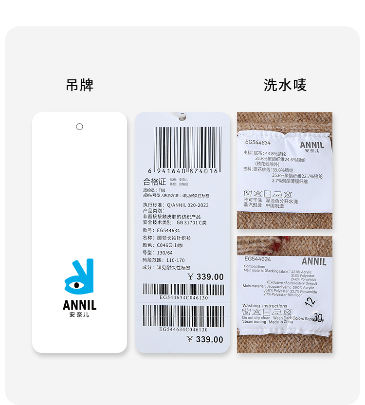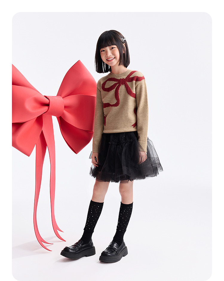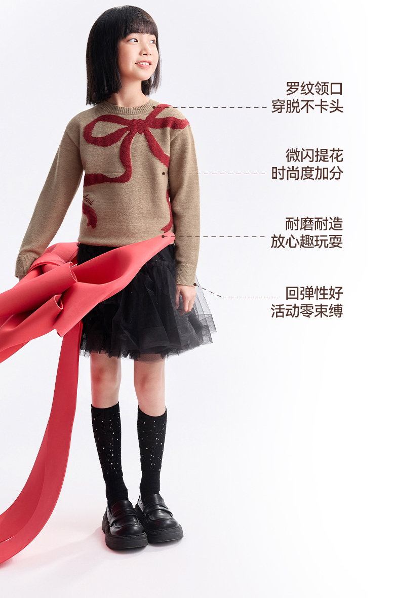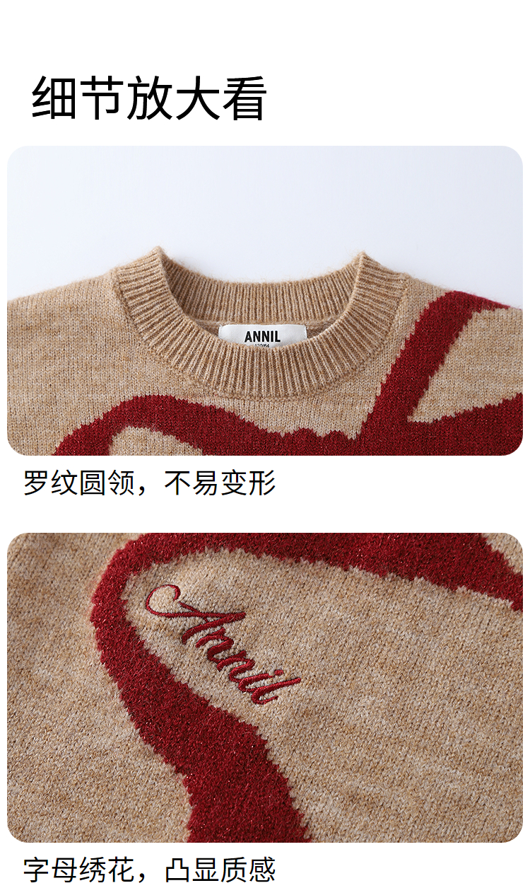 女童圆领长袖针织衫冬季新款安奈儿童装EG544634