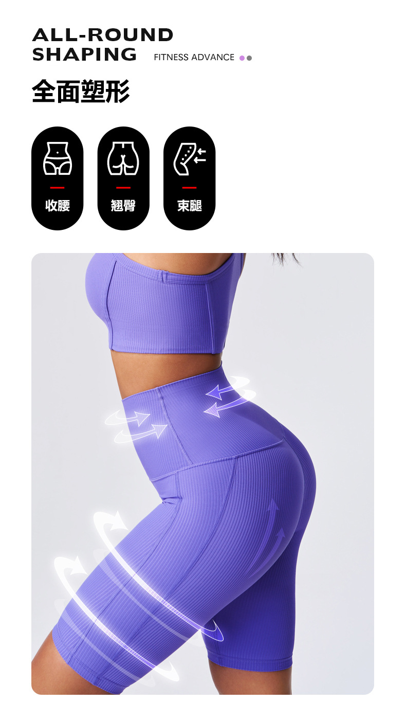 跃牌【轻匀系列】螺纹五分裤女夏无T紧身瑜伽服高腰提臀健身裤70055