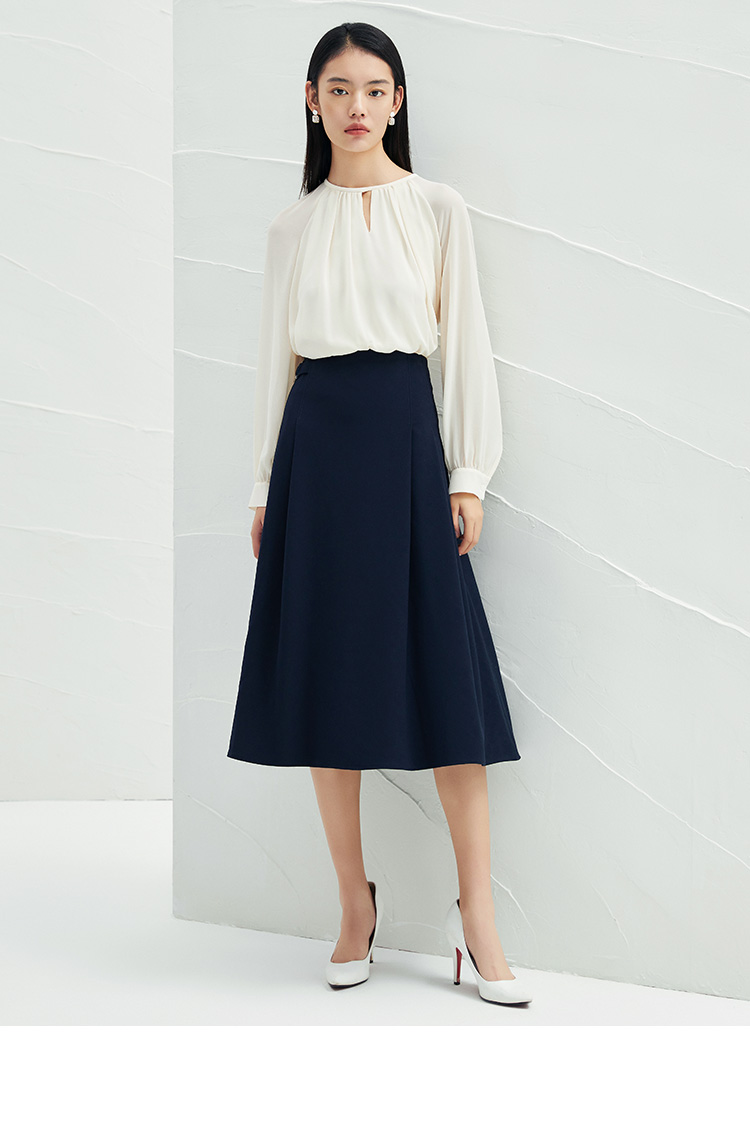 EITIE爱特爱春季新款时尚百搭通勤显瘦垂感伞裙A字半身裙女裙A2206905