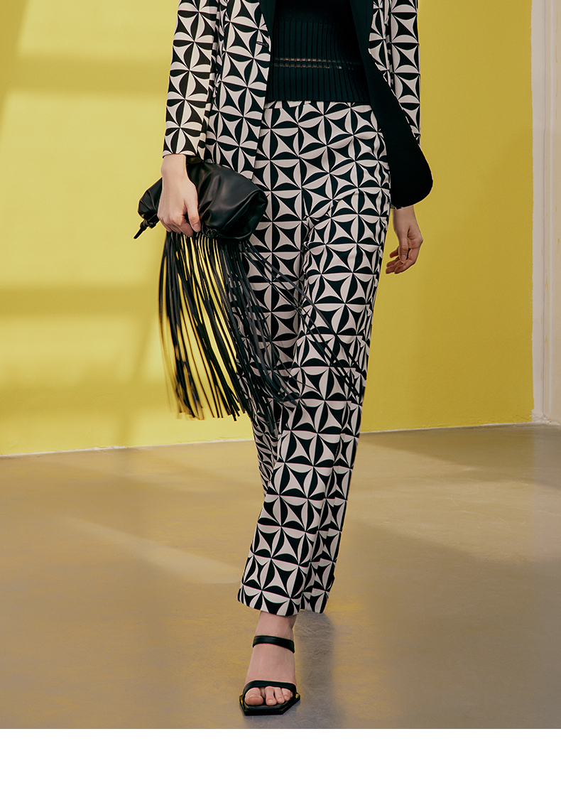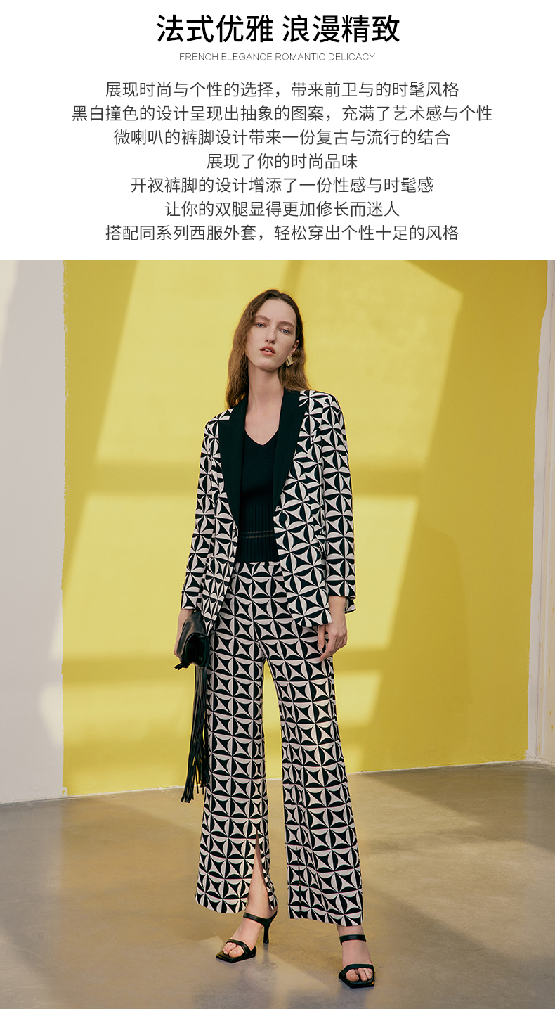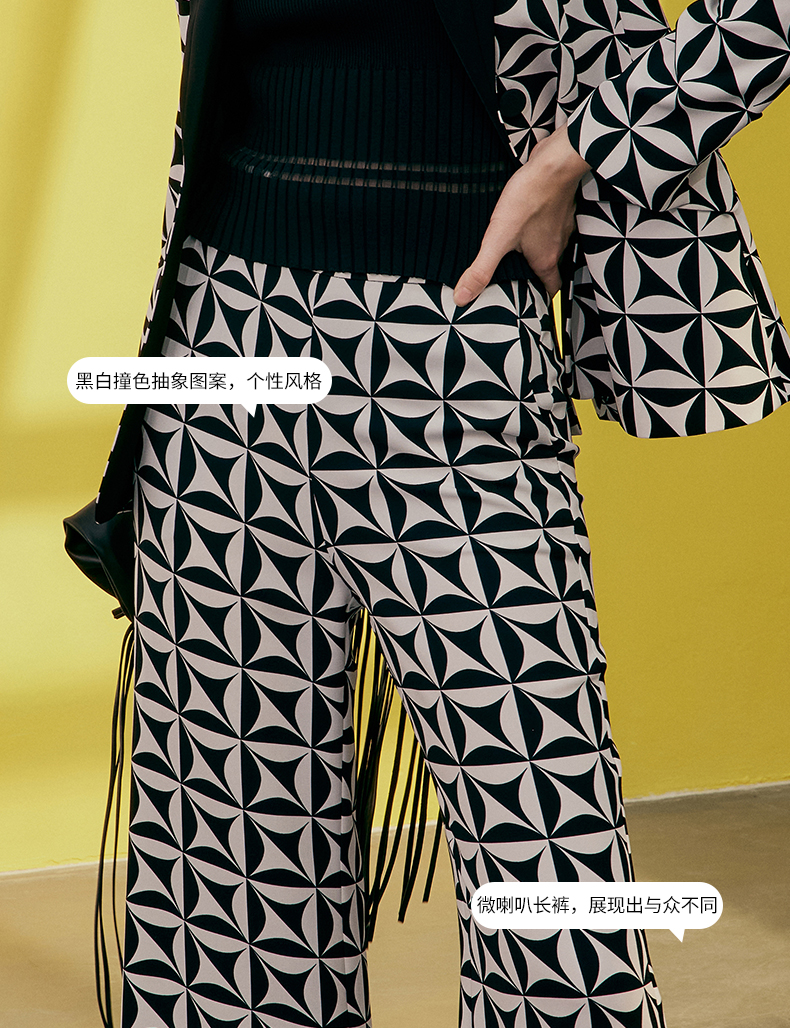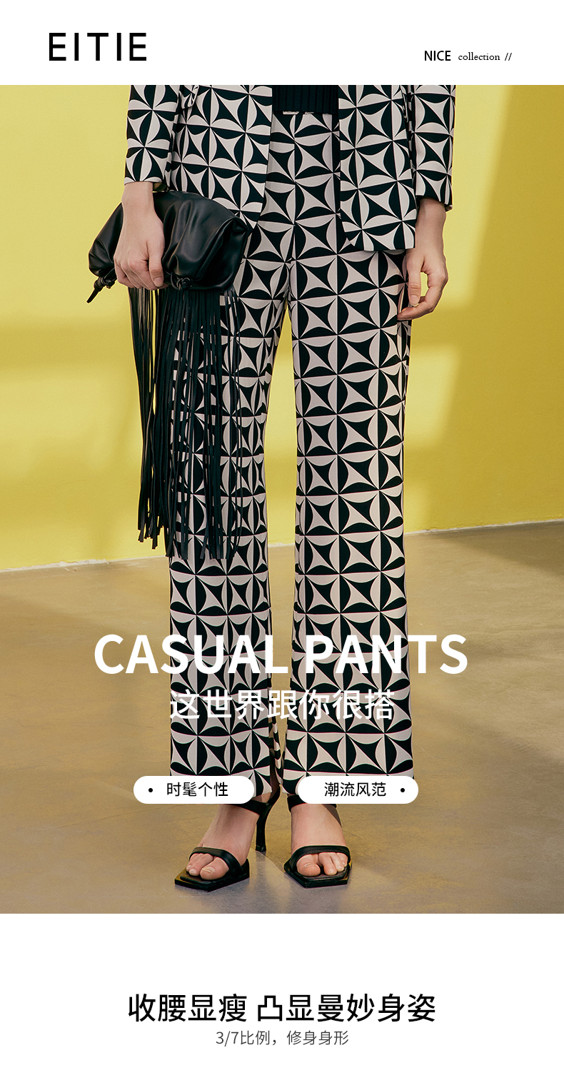 EITIE爱特爱春季新款撞色几何图形印花裤子7305004