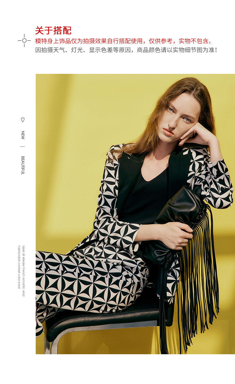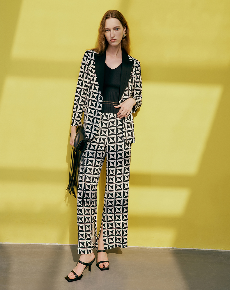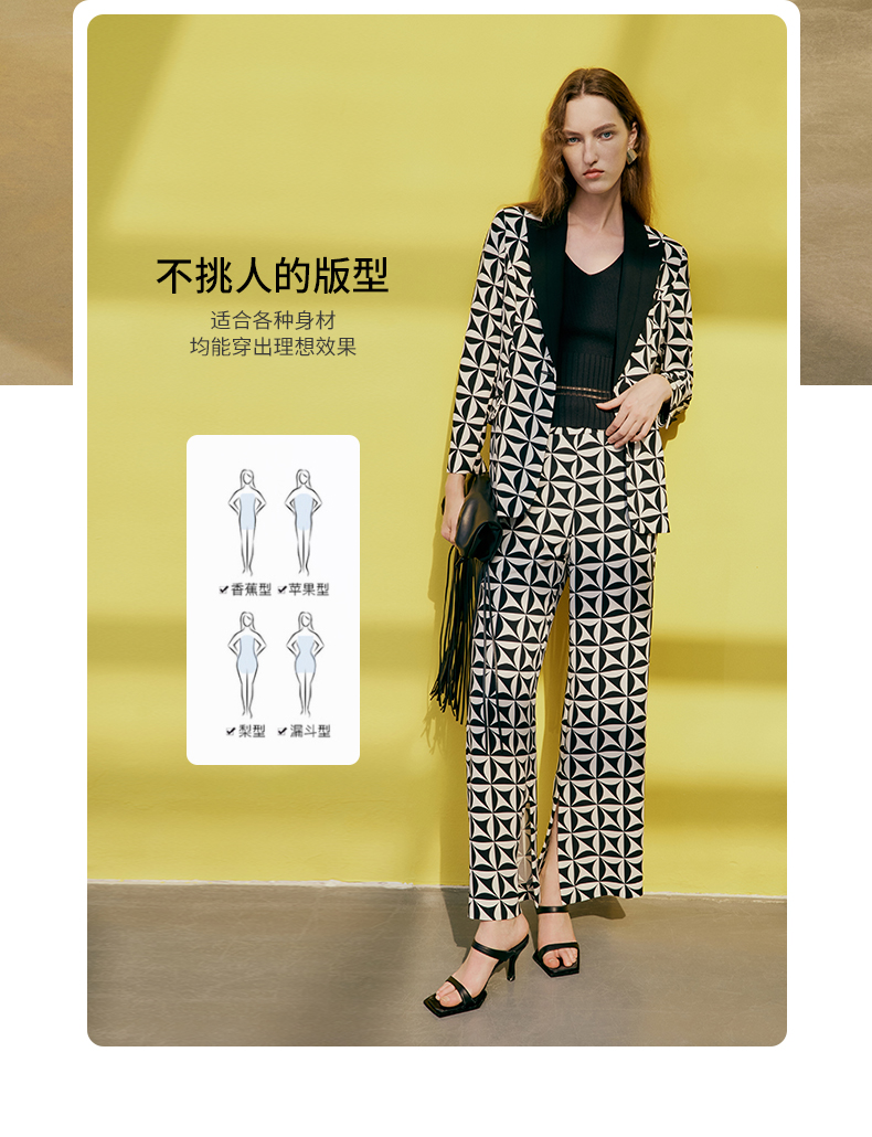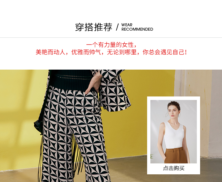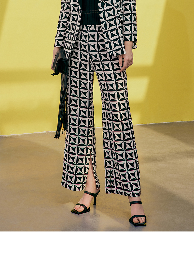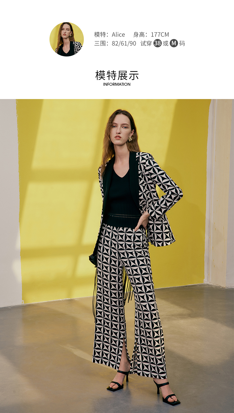 EITIE爱特爱春季新款撞色几何图形印花裤子7305004